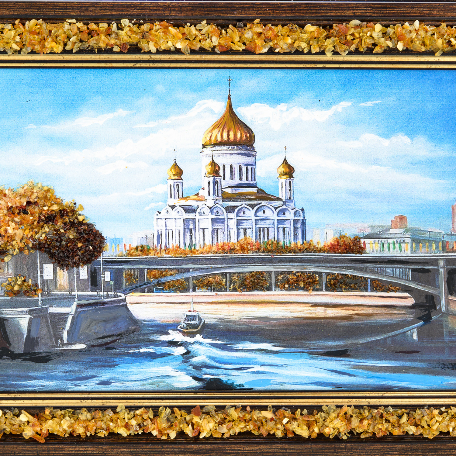 Картина янтарная "Храм Христа Спасителя" 24х15 см