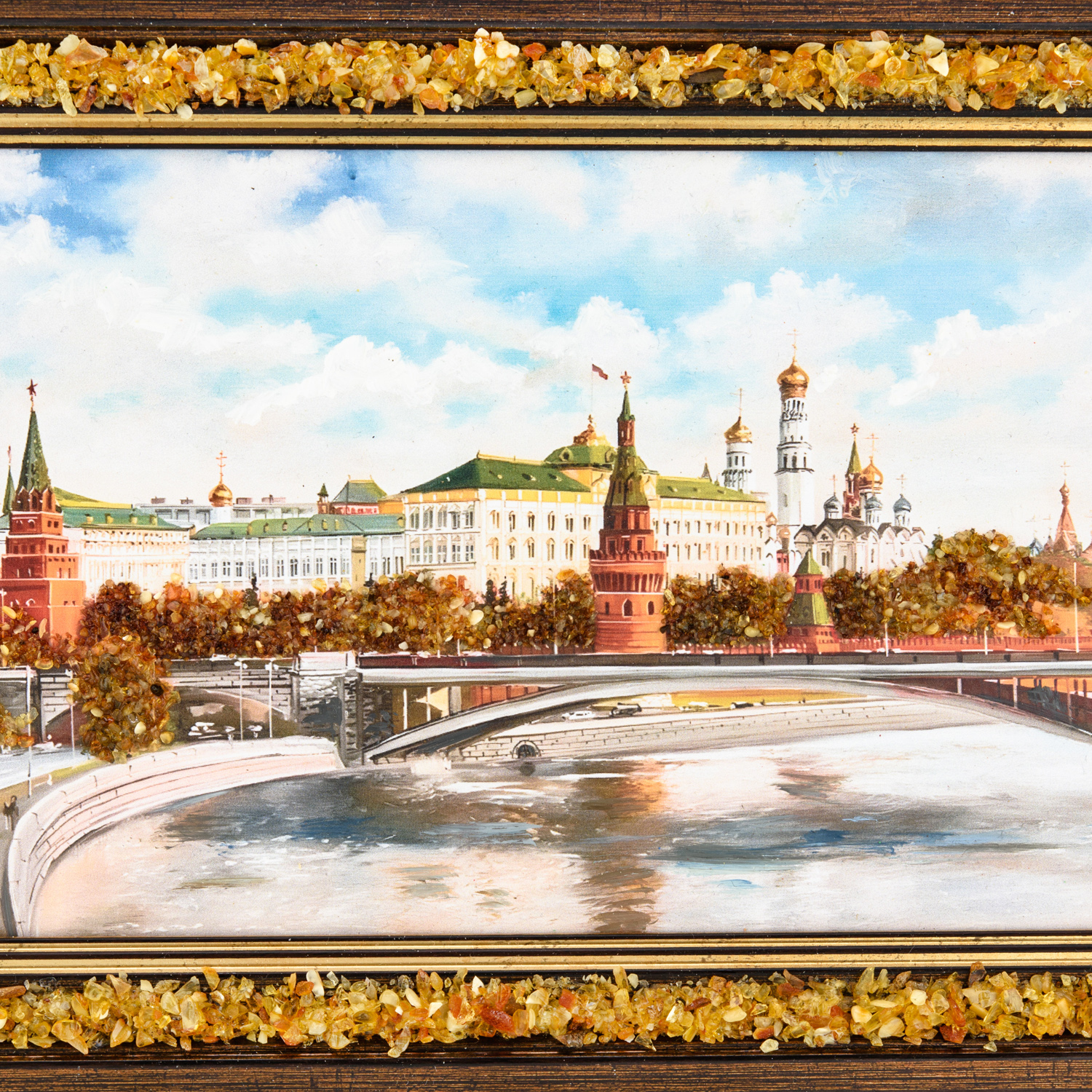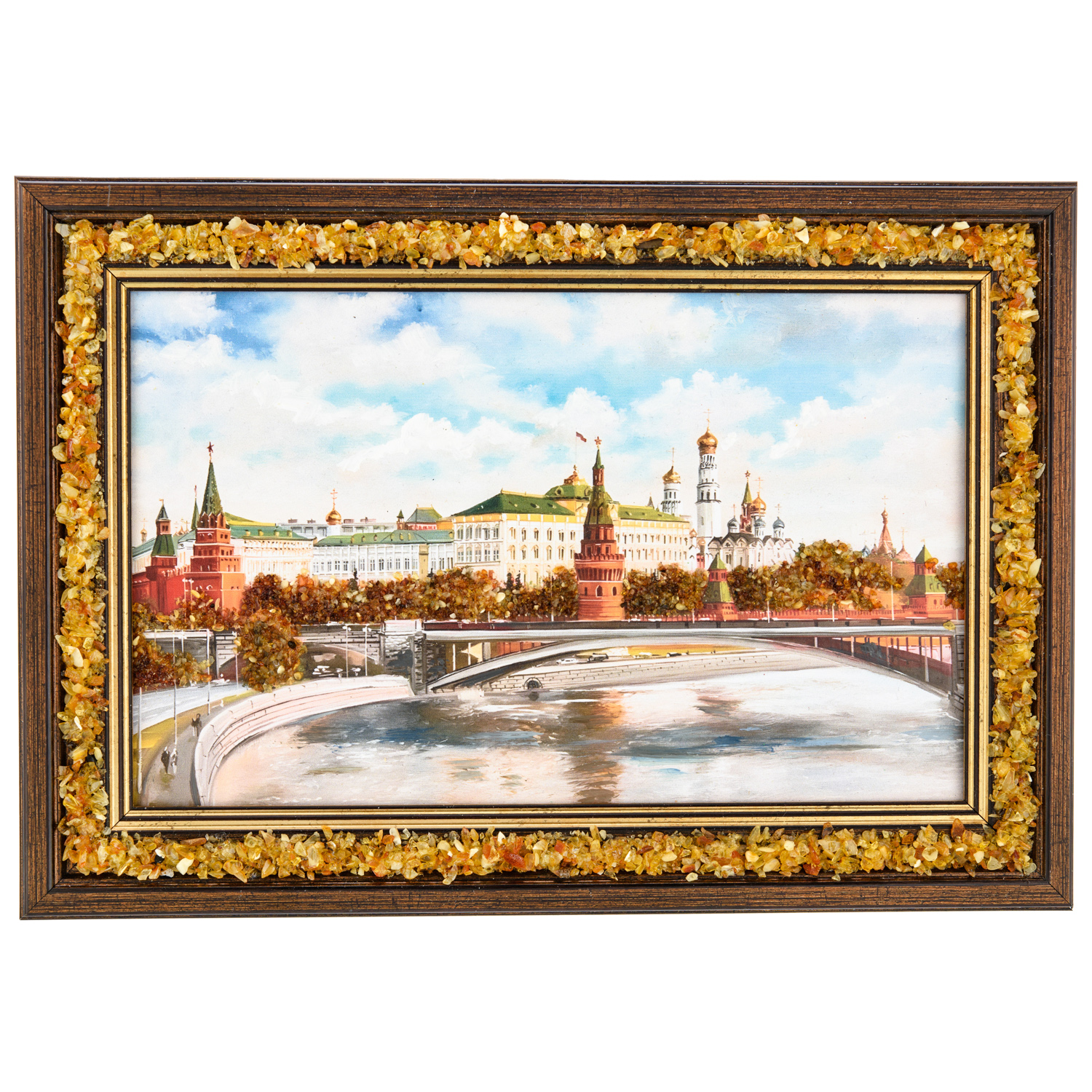 Русские подарки и сувениры → Интерьерные изделия → Картины → Картина янтарная "Кремлевский мост" 24х15 см