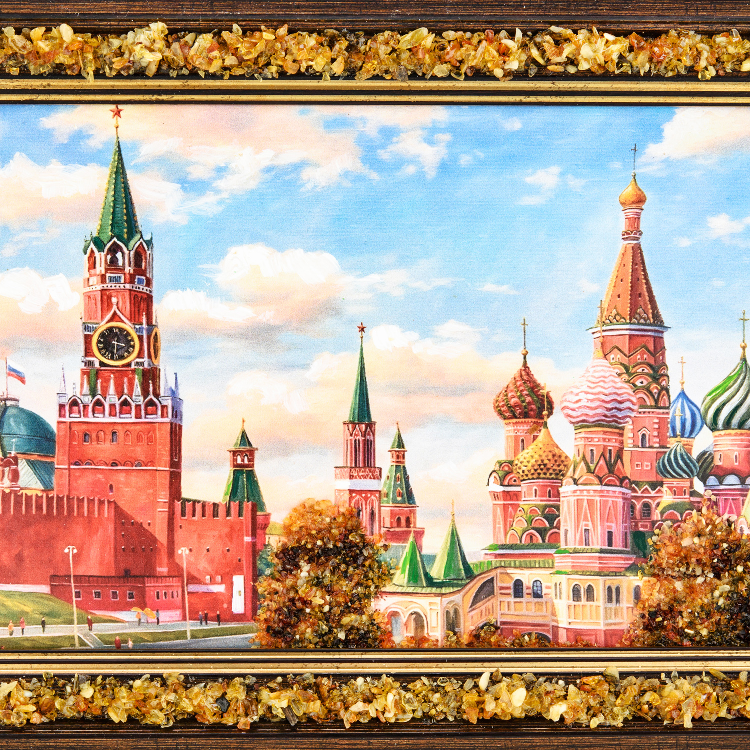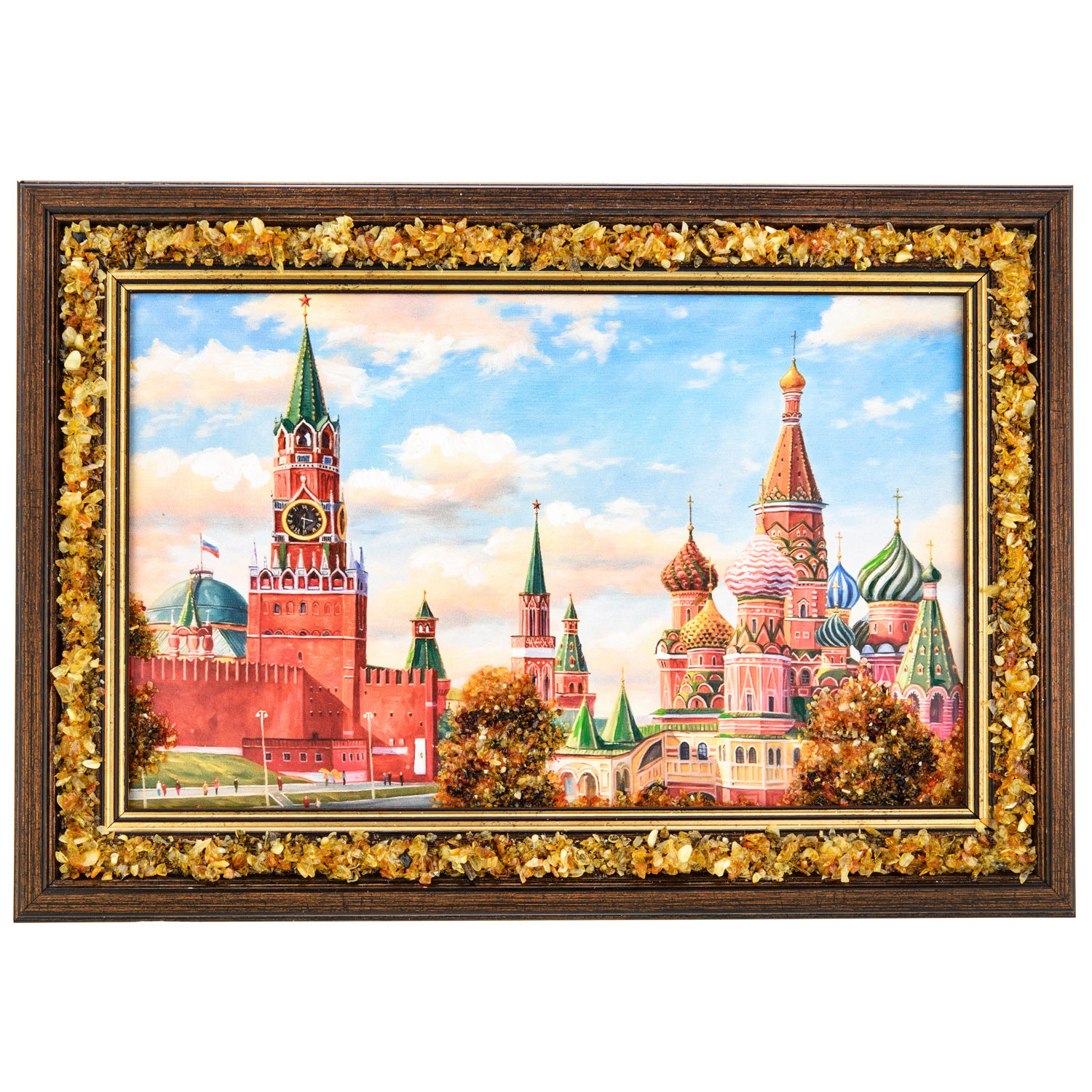 Картина янтарная "Храм Василия Блаженного" 24х15 см