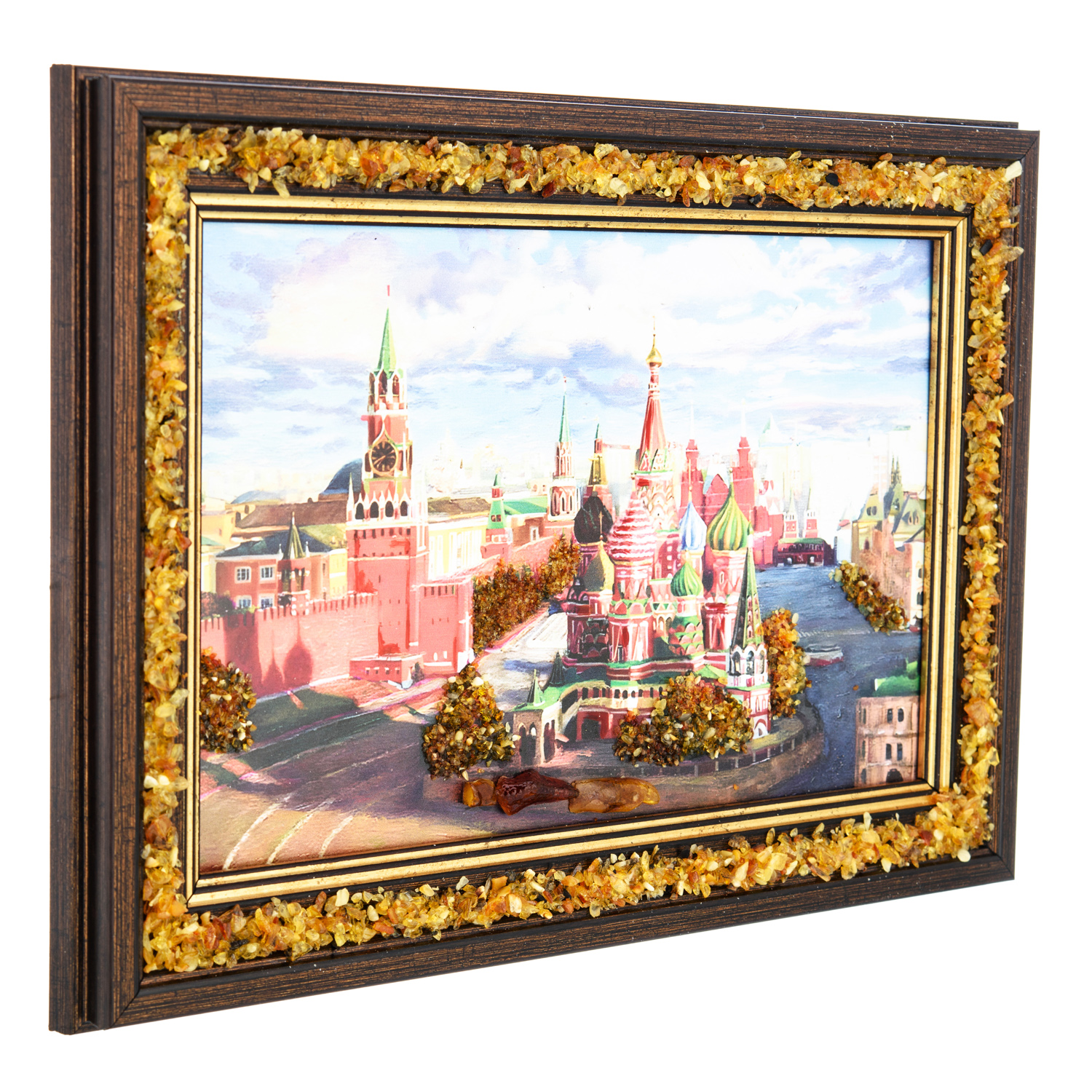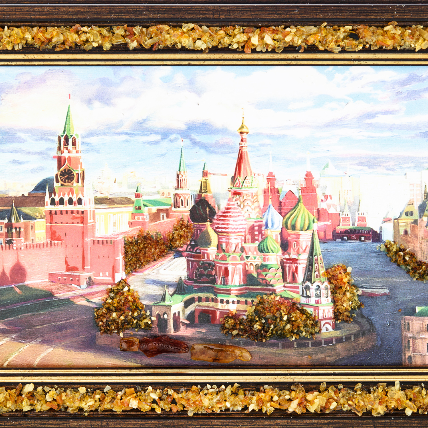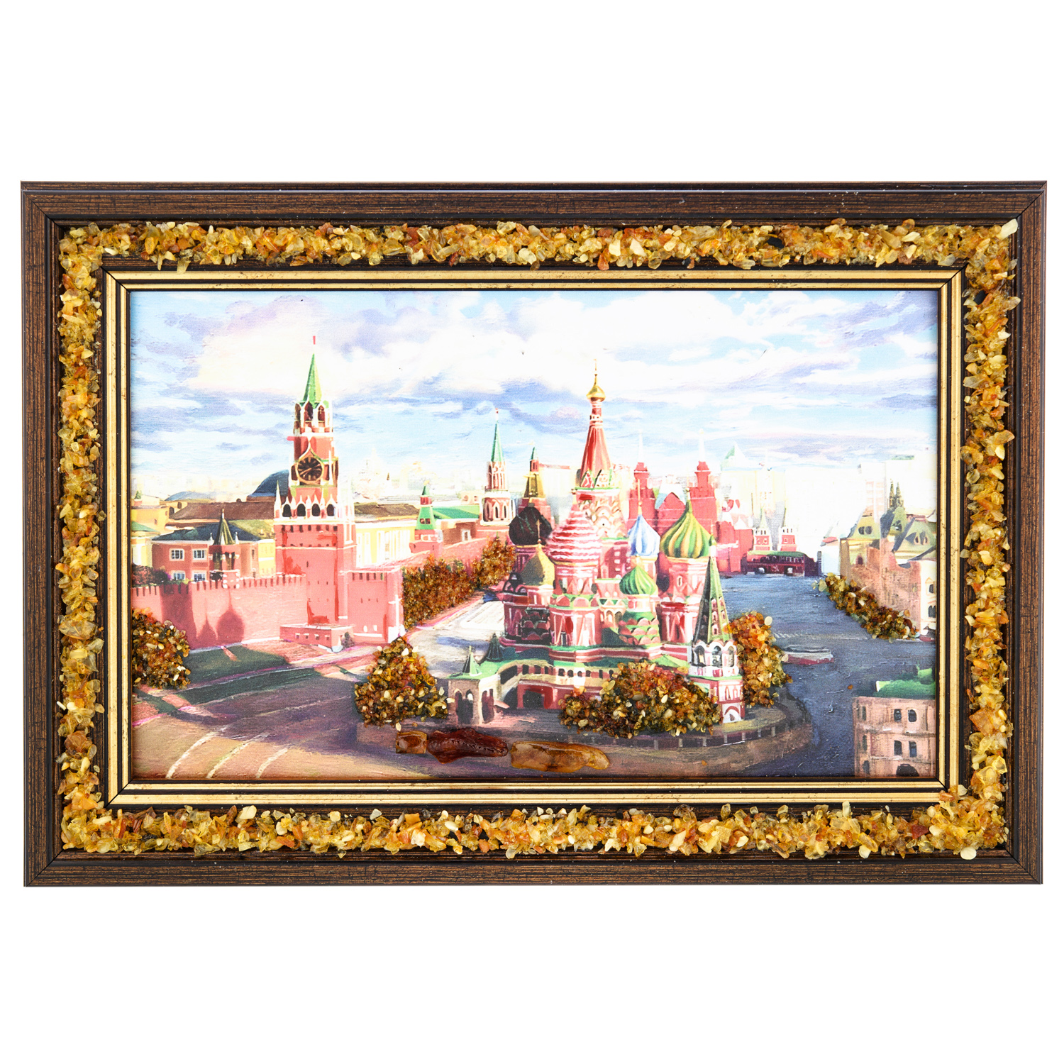 Картина янтарная "Храм Василия Блаженного" 24х15 см