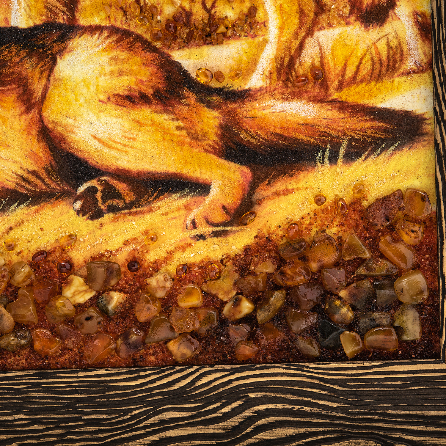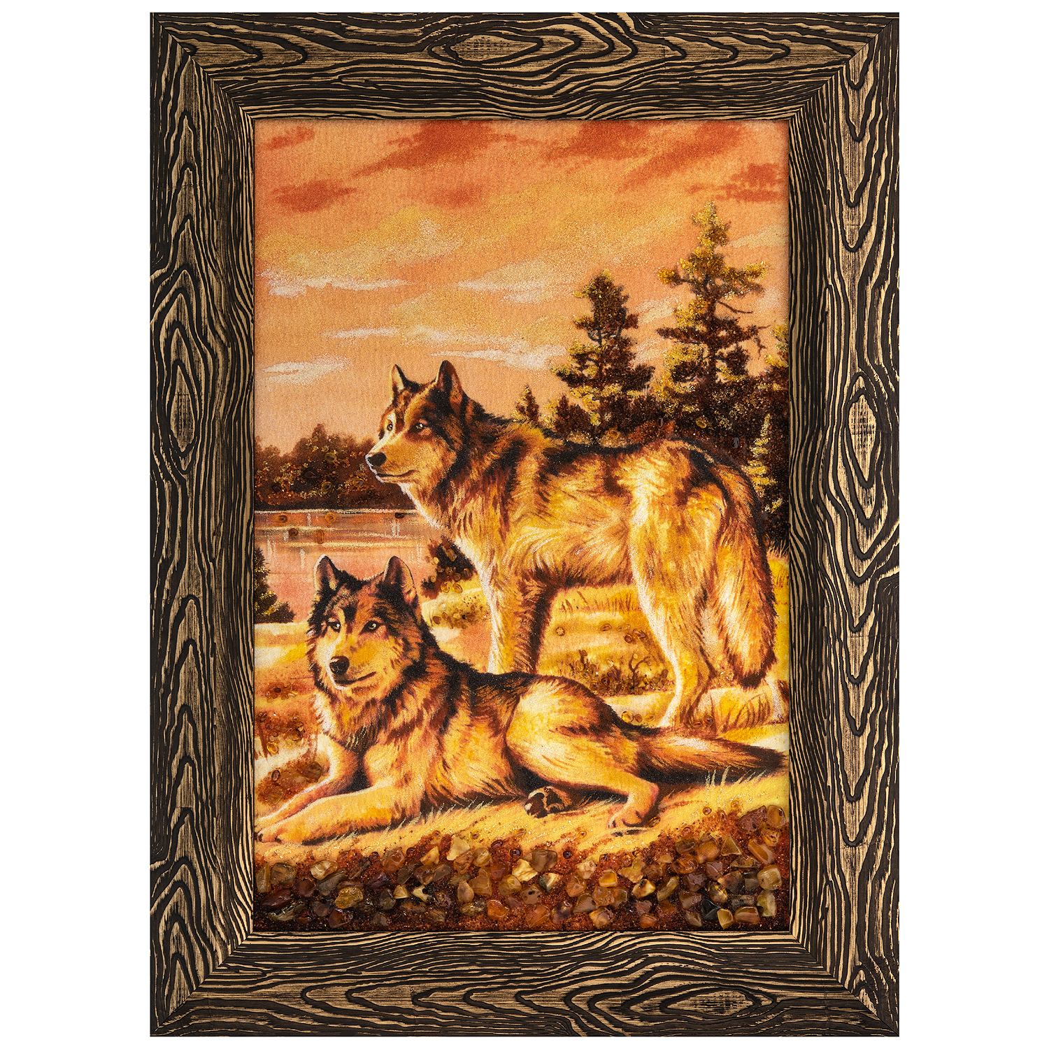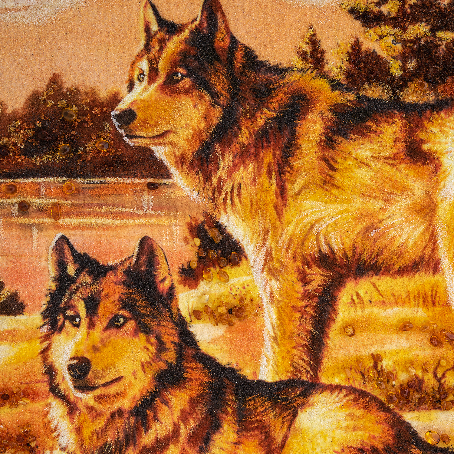 Русские подарки и сувениры → Интерьерные изделия → Картины → Картина янтарная "Волки у берега" 60x40 см