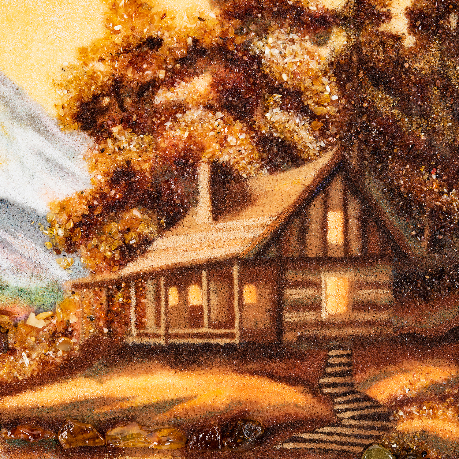 Русские подарки и сувениры → Интерьерные изделия → Картины → Картина янтарная "Домик у озера" 30х40 см