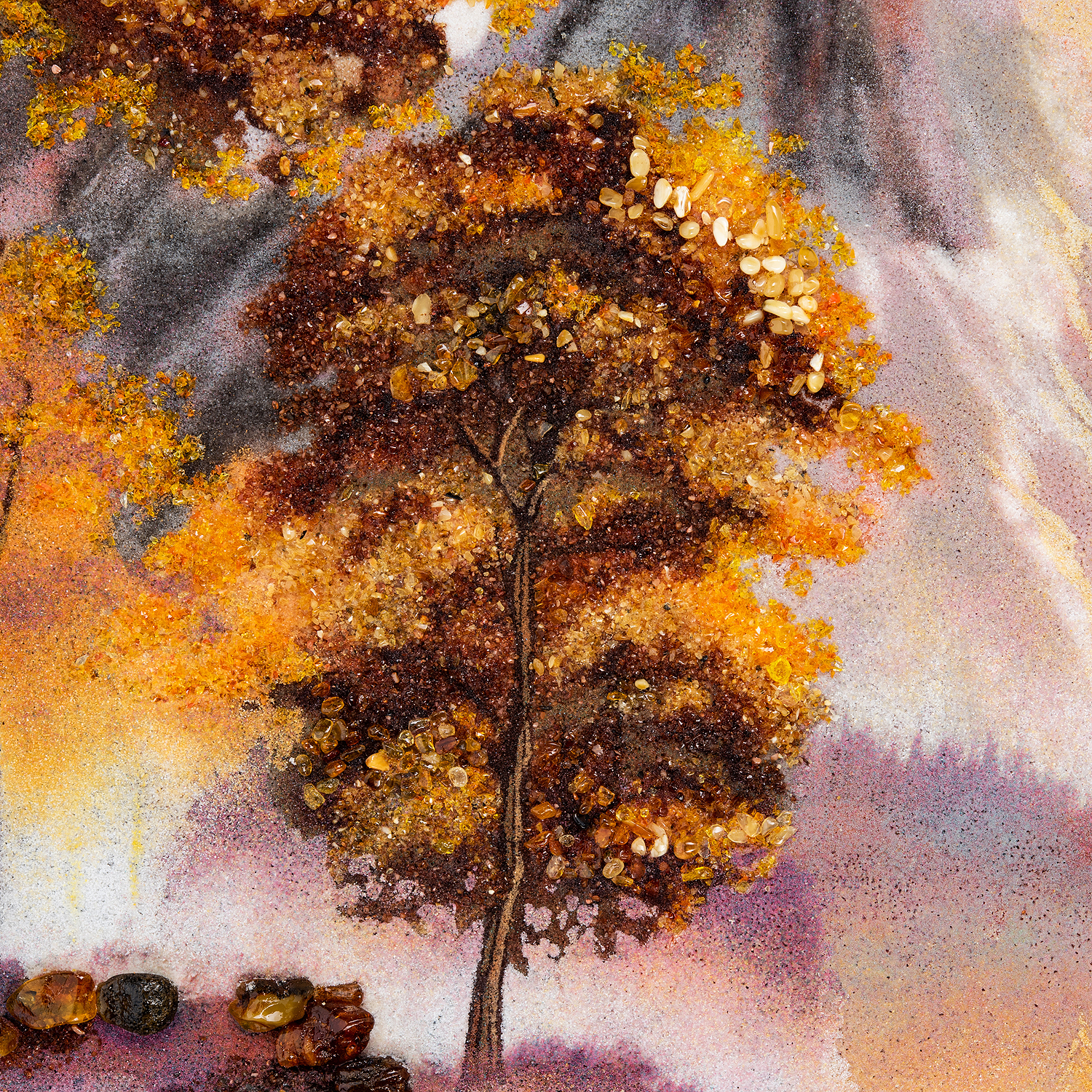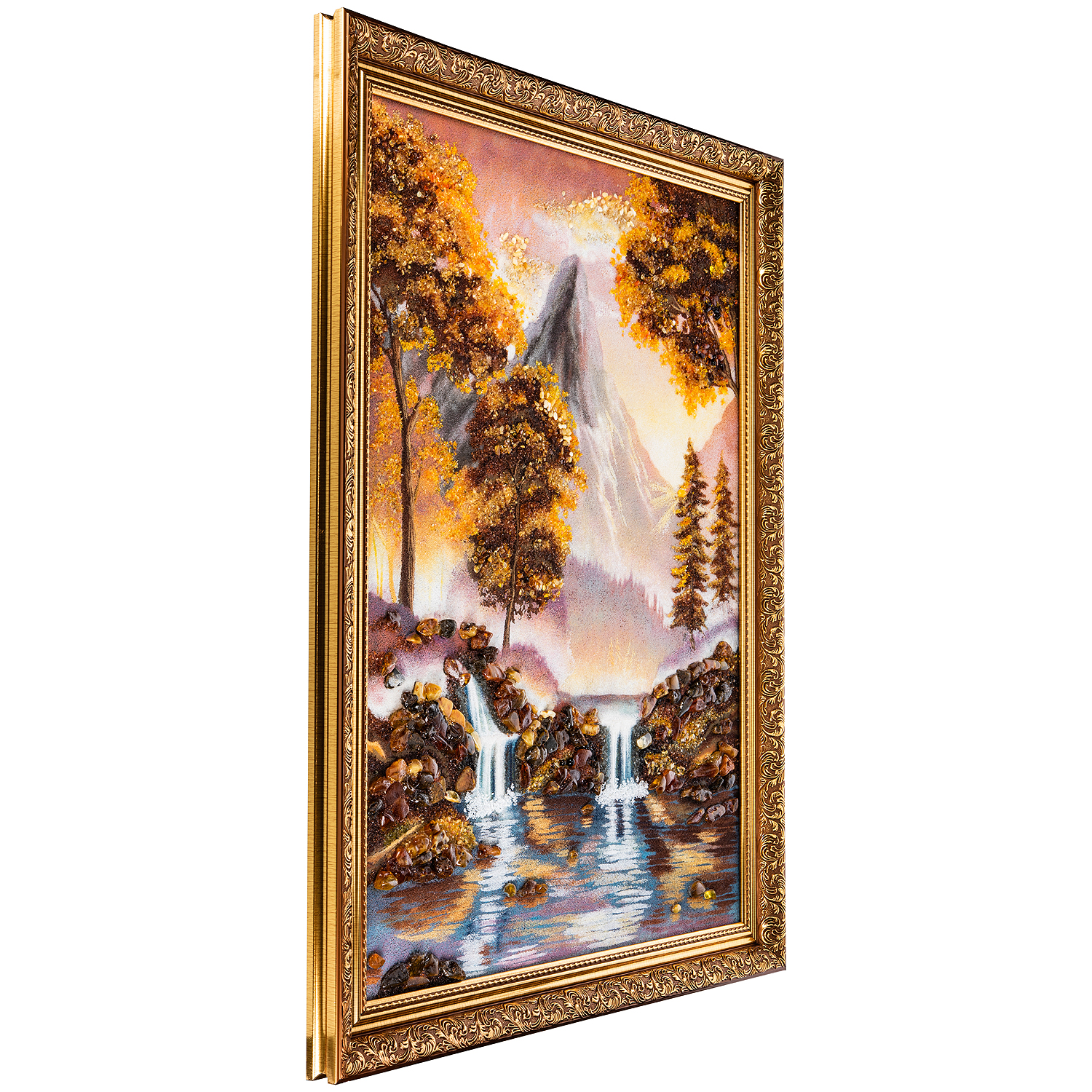 Русские подарки и сувениры → Интерьерные изделия → Картины → Картина янтарная "Рассвет в горах" 60х80 см