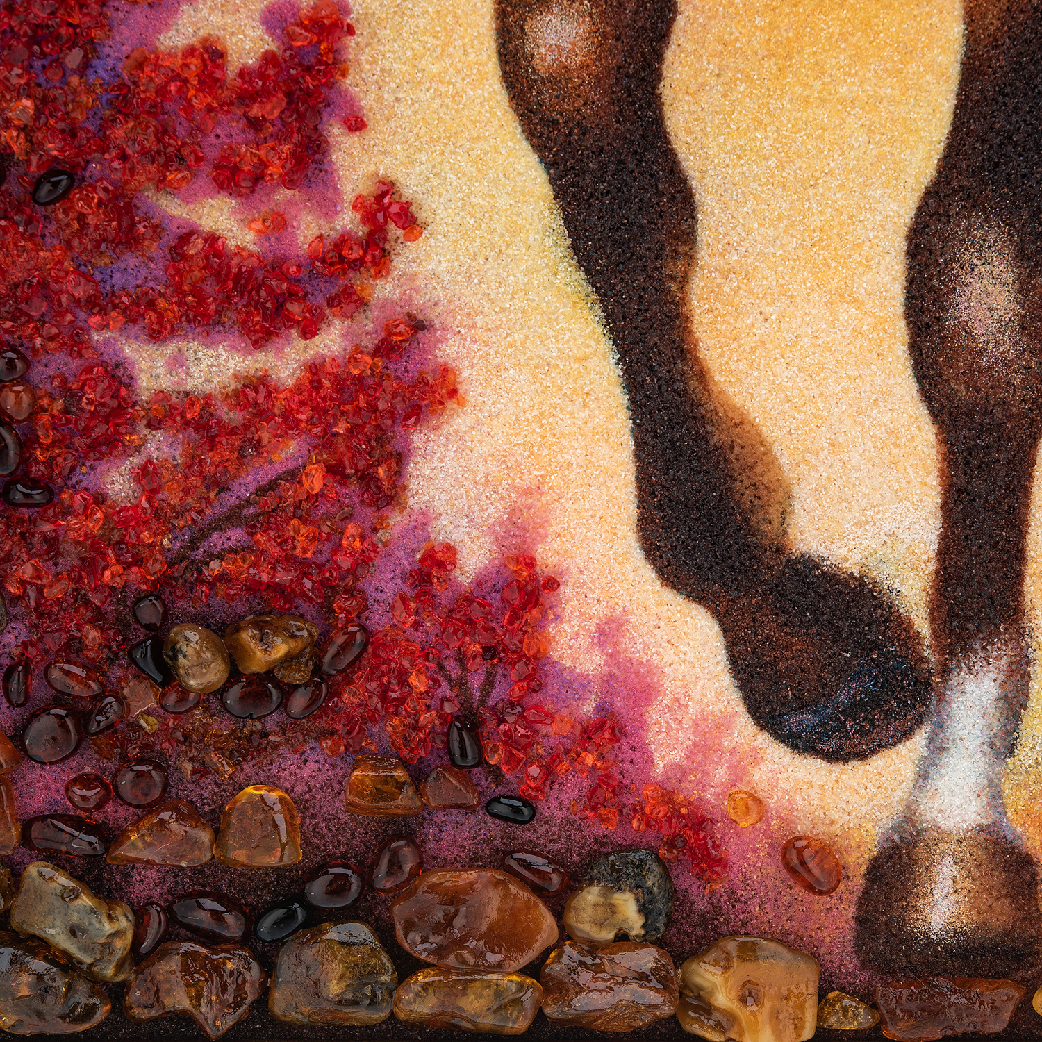 Картина янтарная "Конь в рассветном лесу" 60x40 см