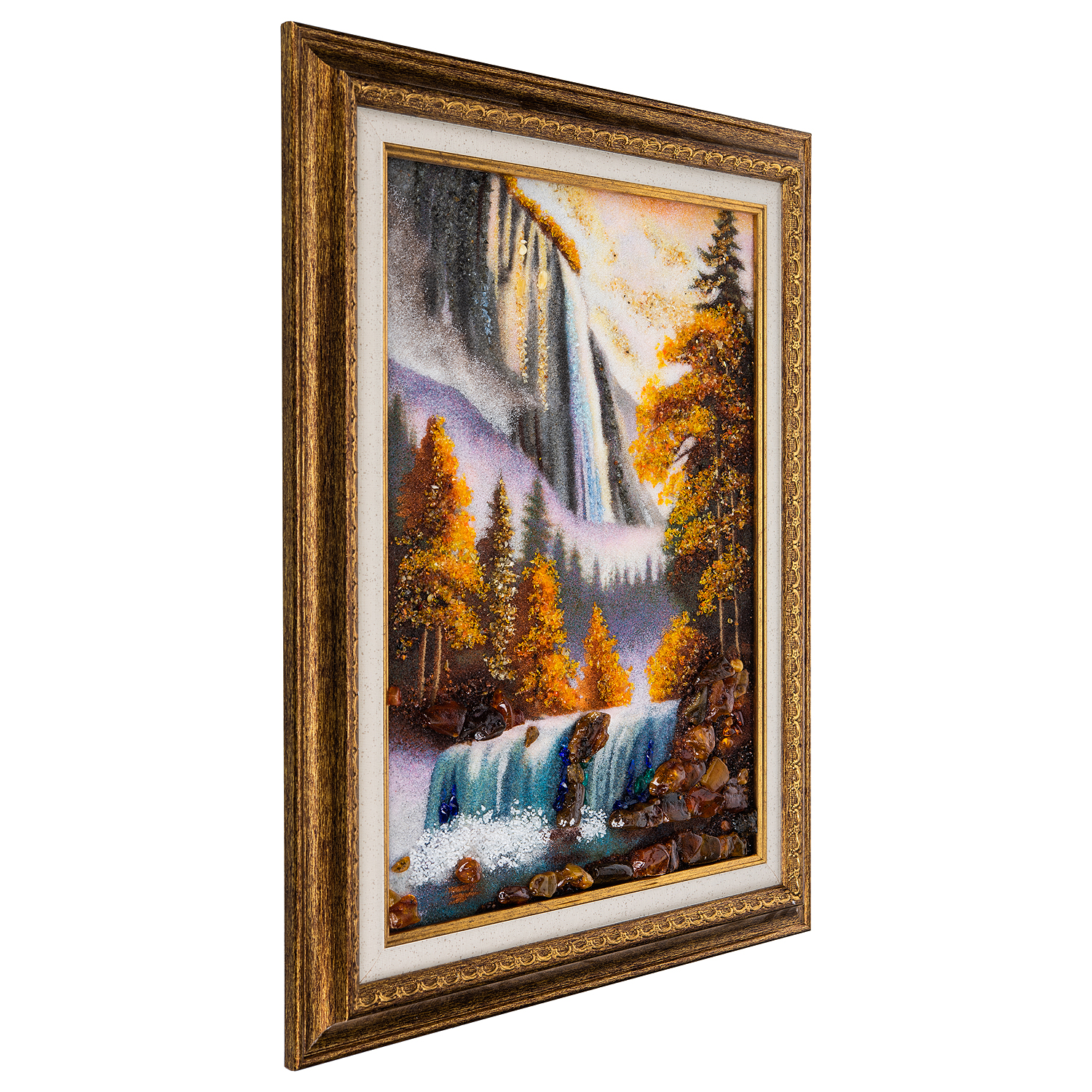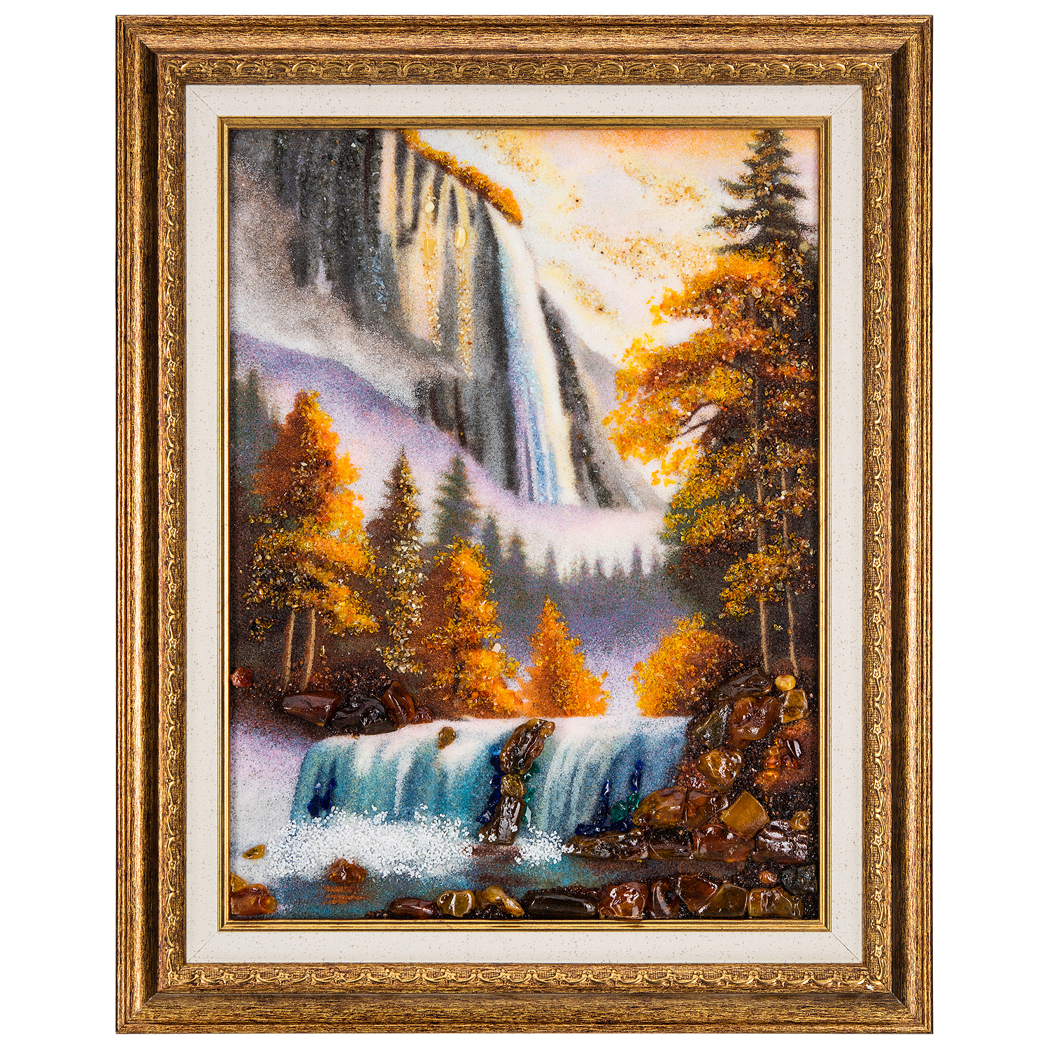 Русские подарки и сувениры → Интерьерные изделия → Картины → Картина янтарная "Горная река" 30х40 см