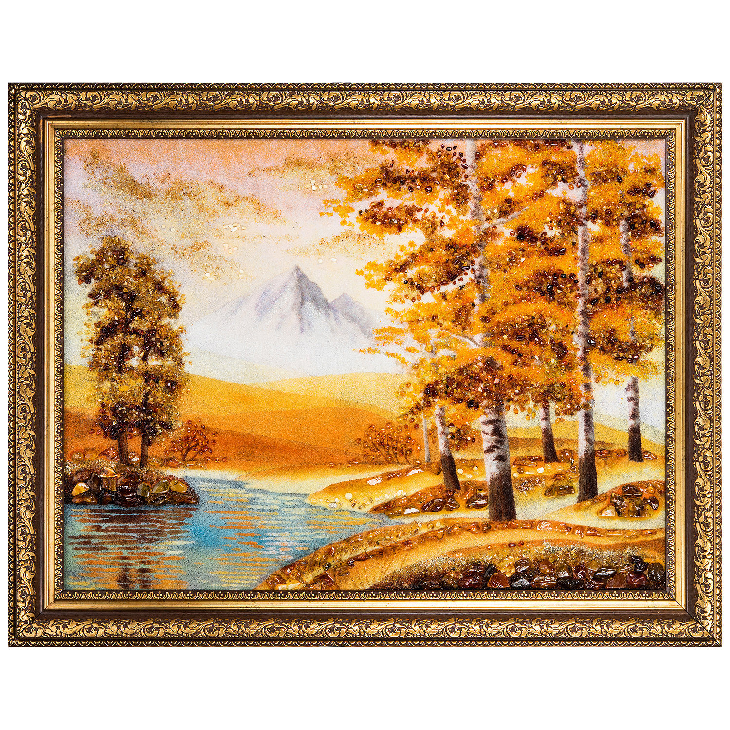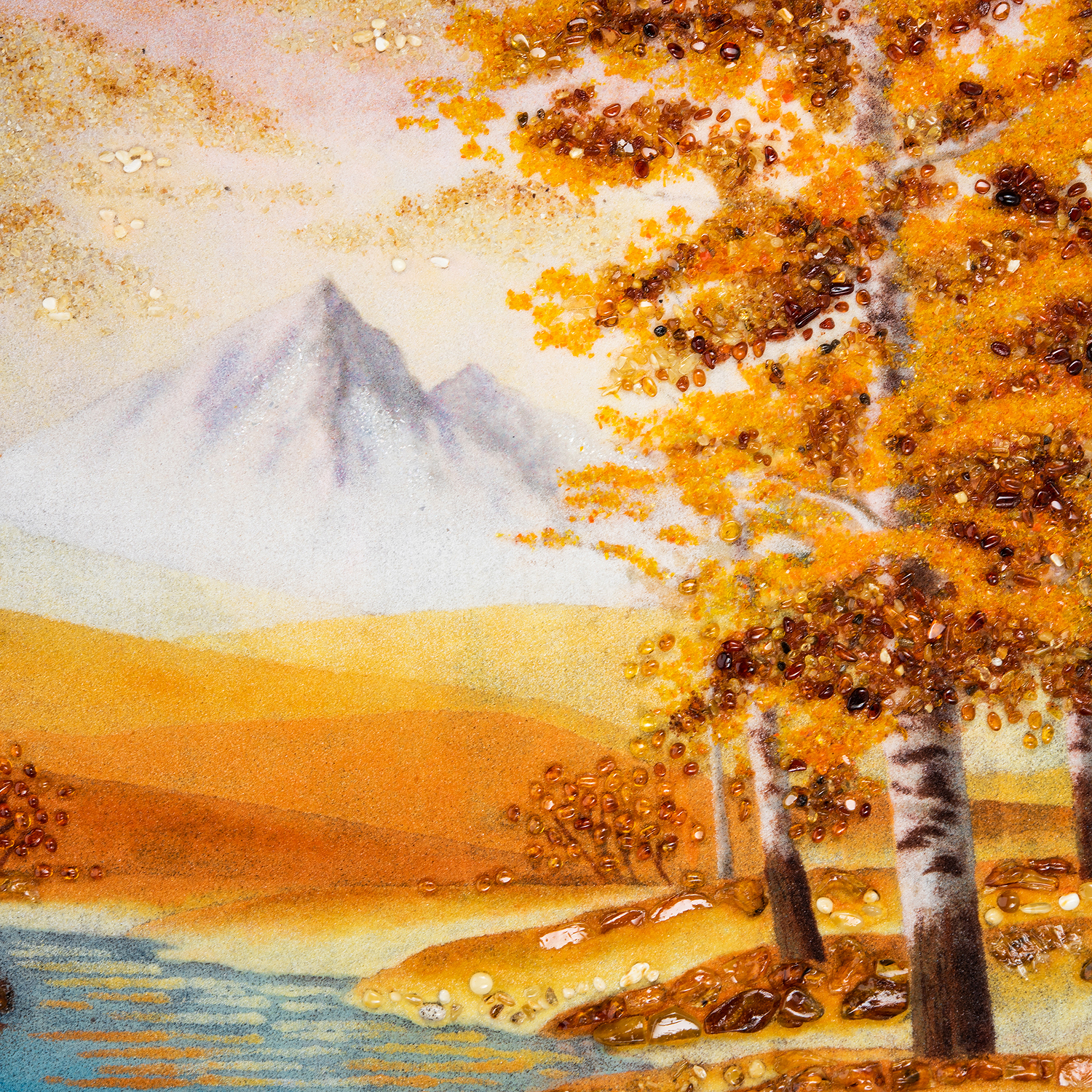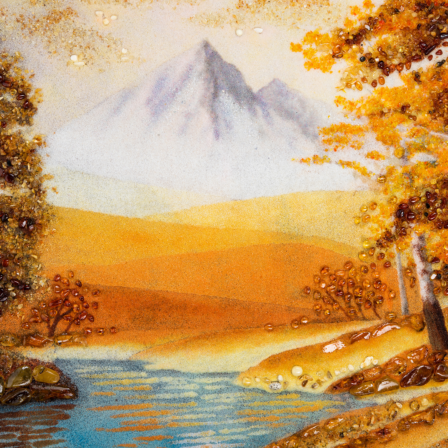 Русские подарки и сувениры → Интерьерные изделия → Картины → Картина янтарная "Осень в горах" 60х80 см