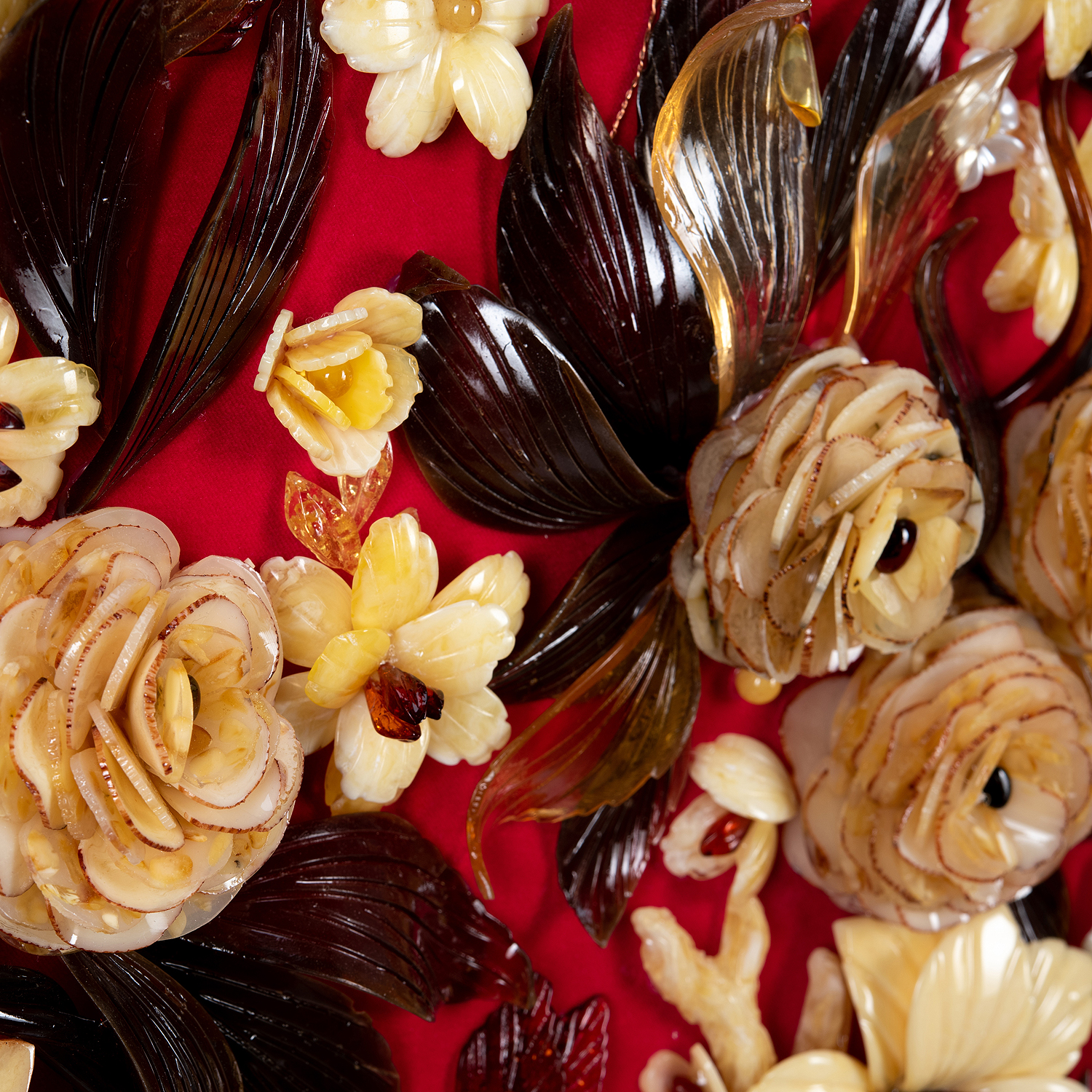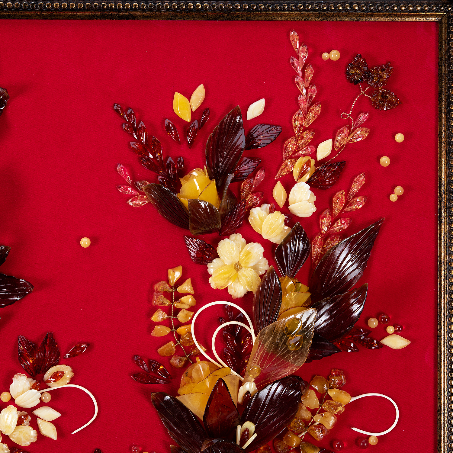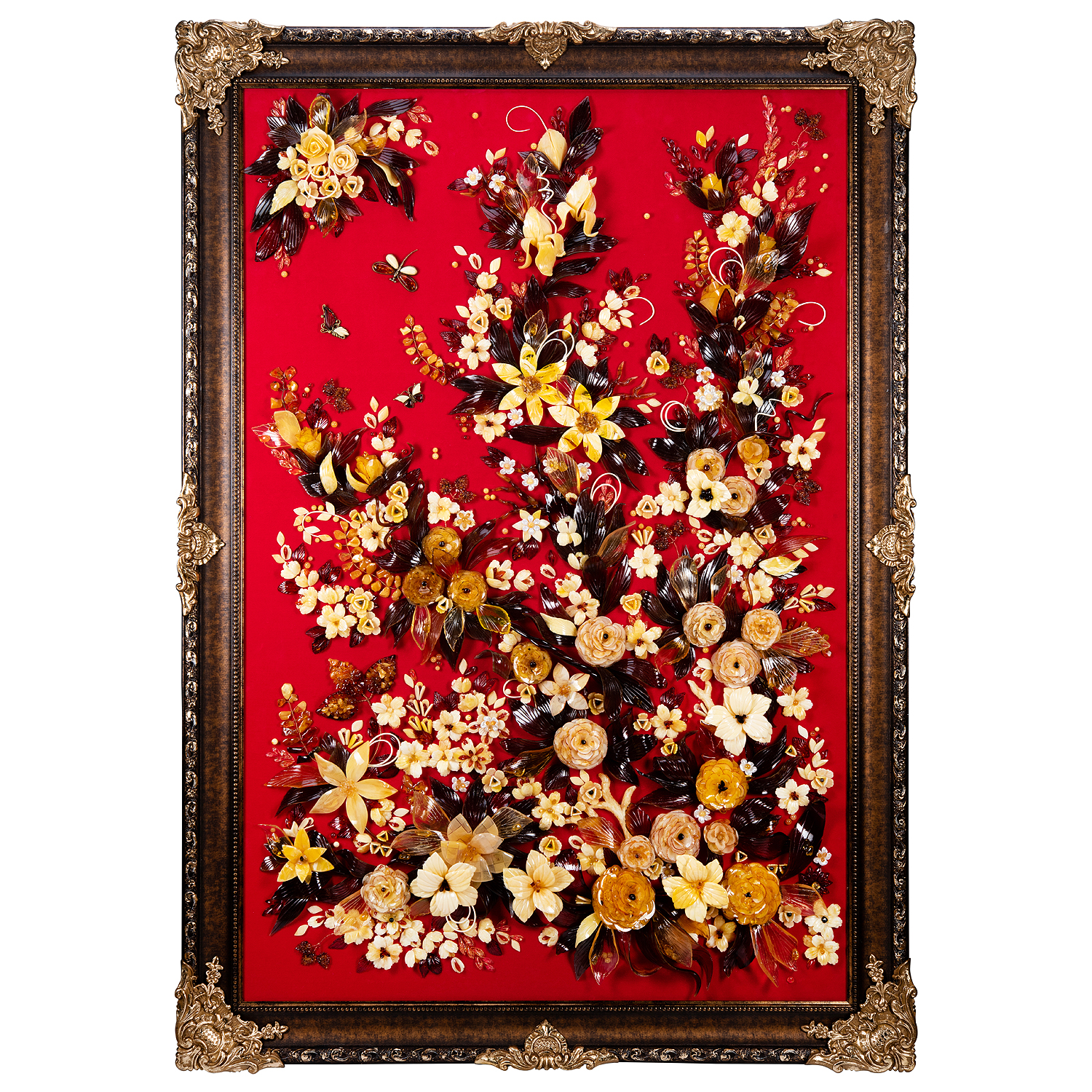 Картина янтарная "Роскошь цветения".Материалы: янтарь, бархат, багетная рама.