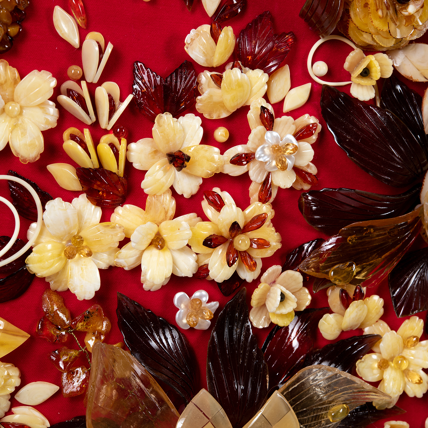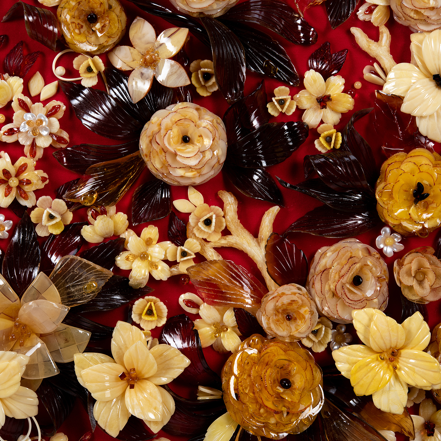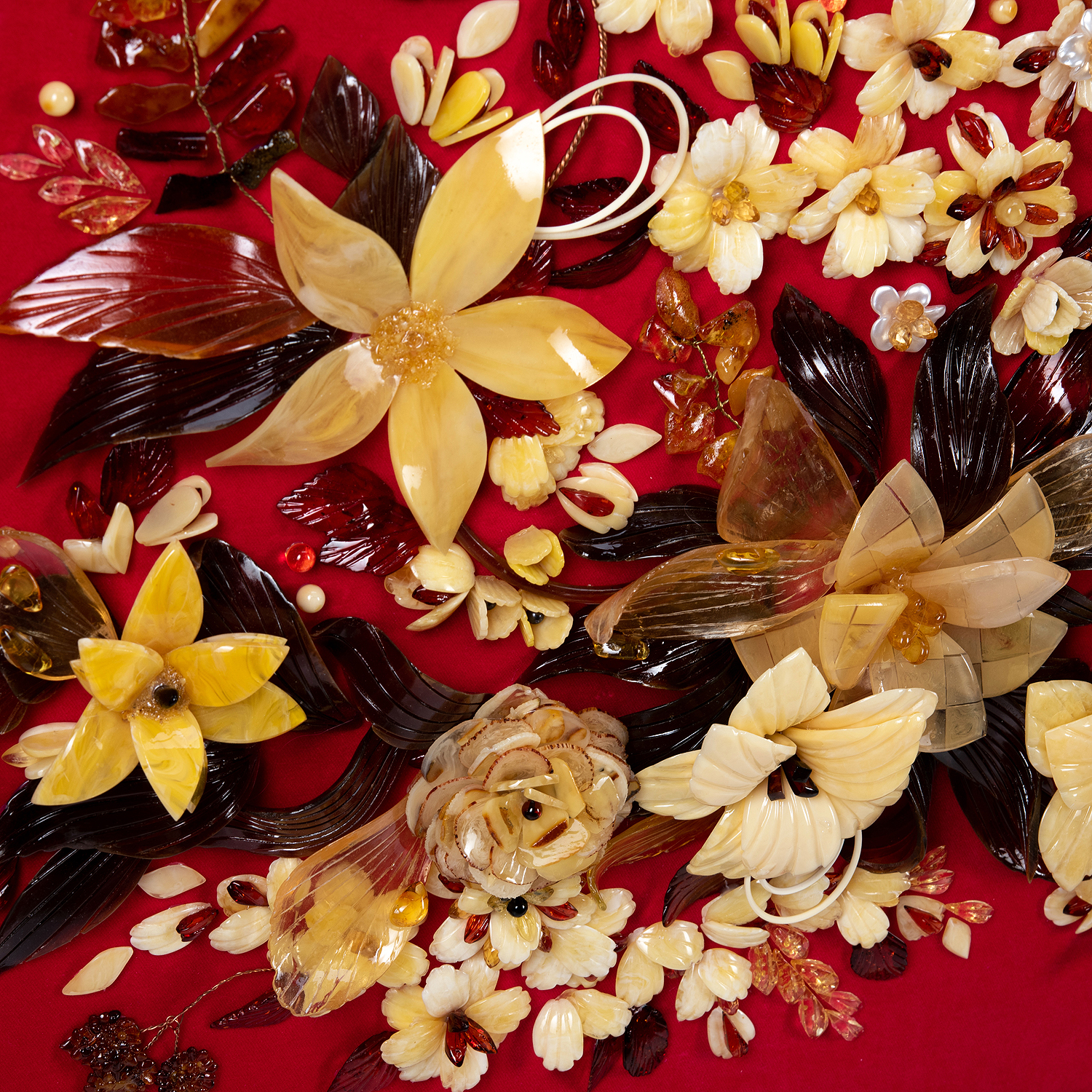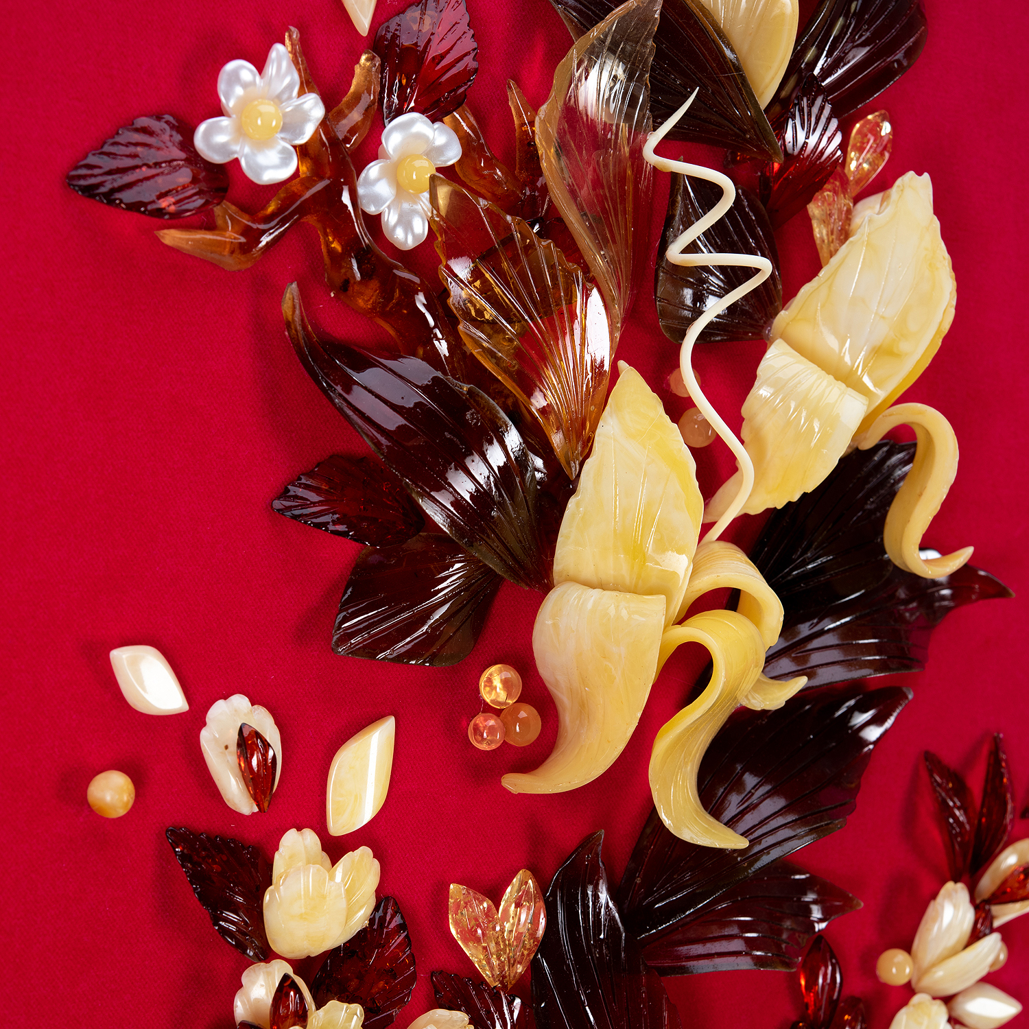 Картина янтарная "Роскошь цветения".Материалы: янтарь, бархат, багетная рама.