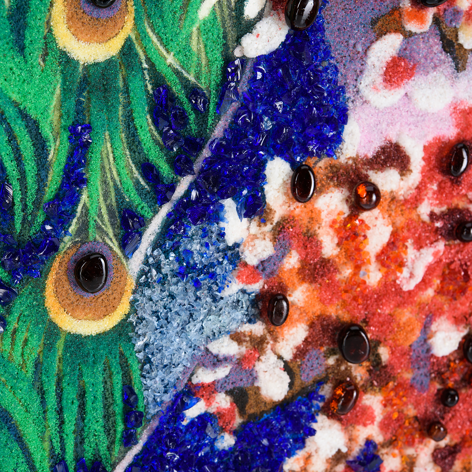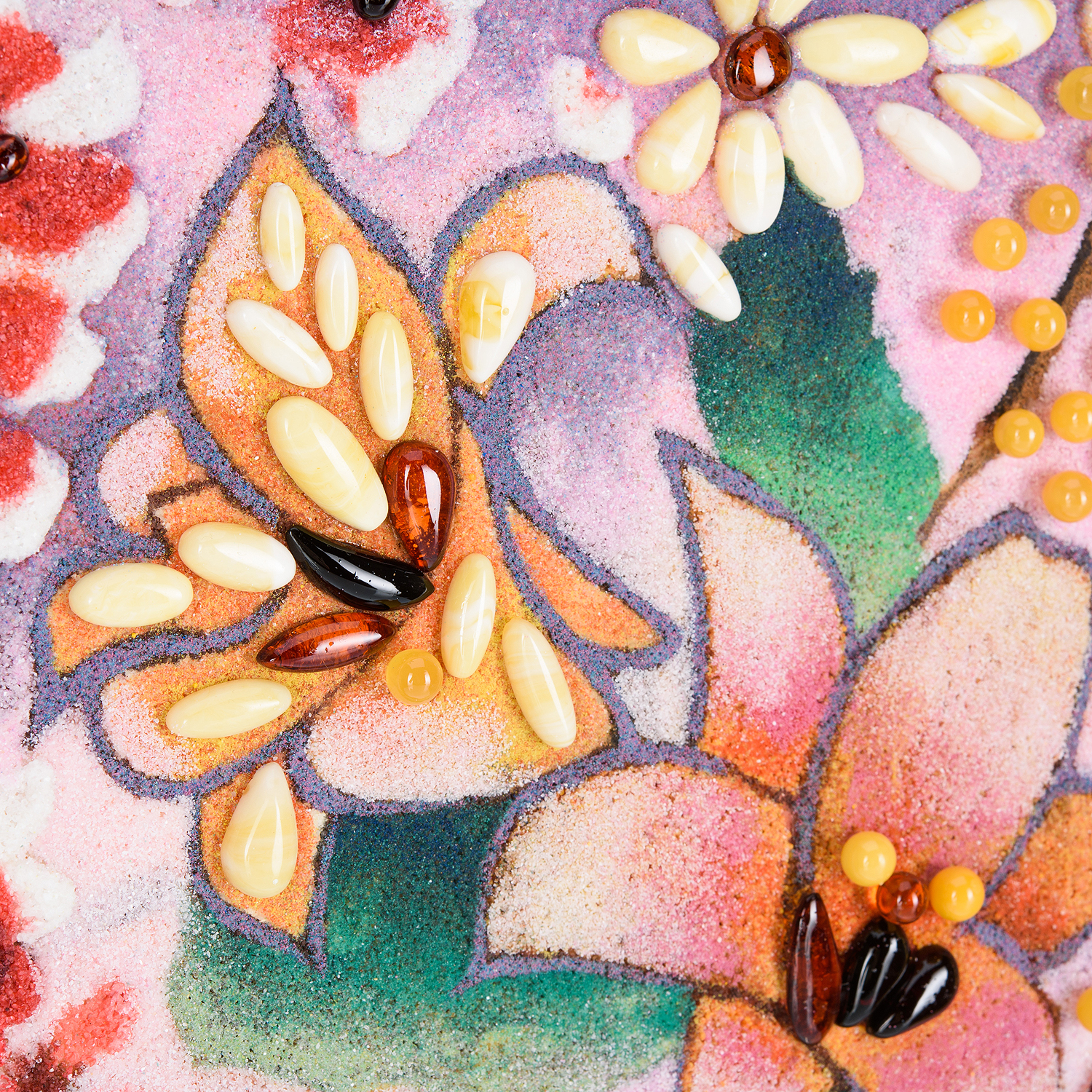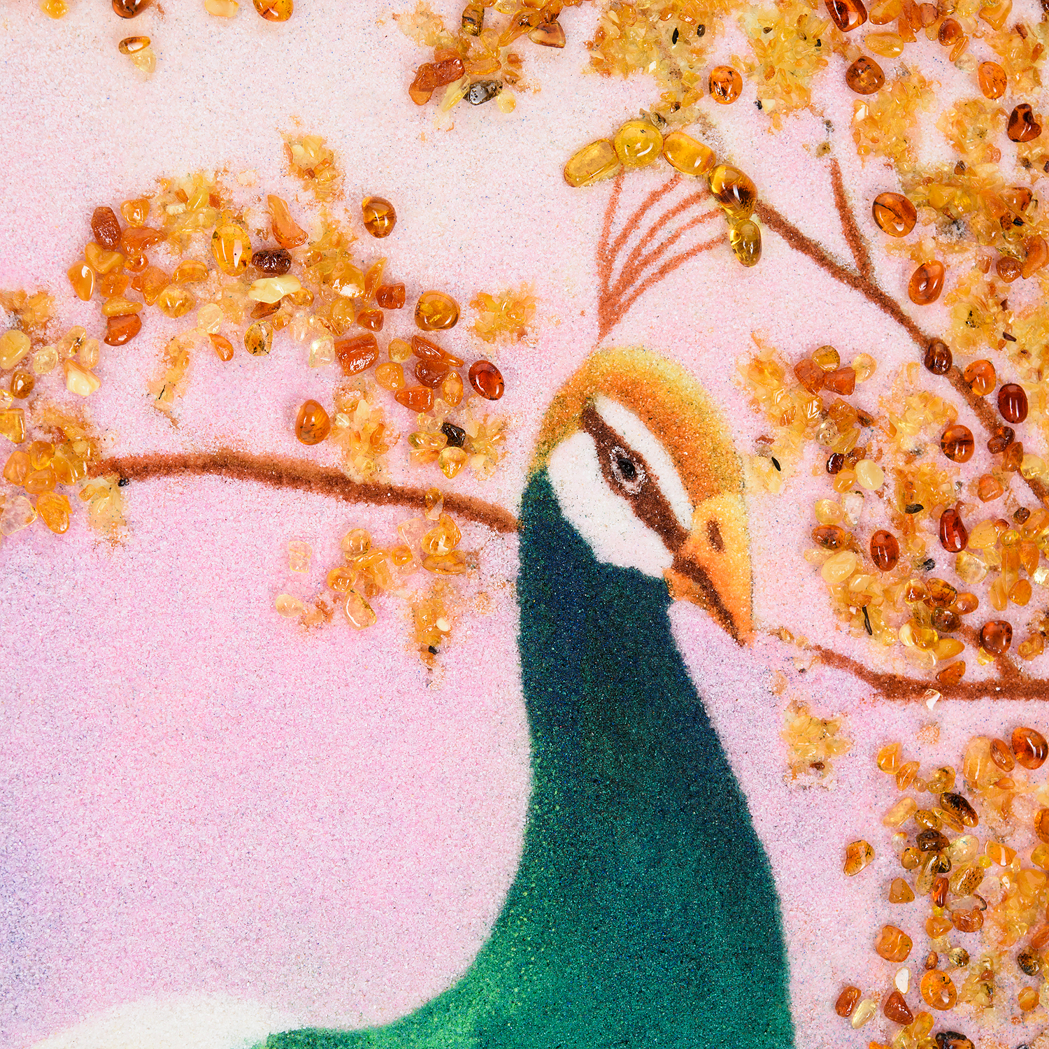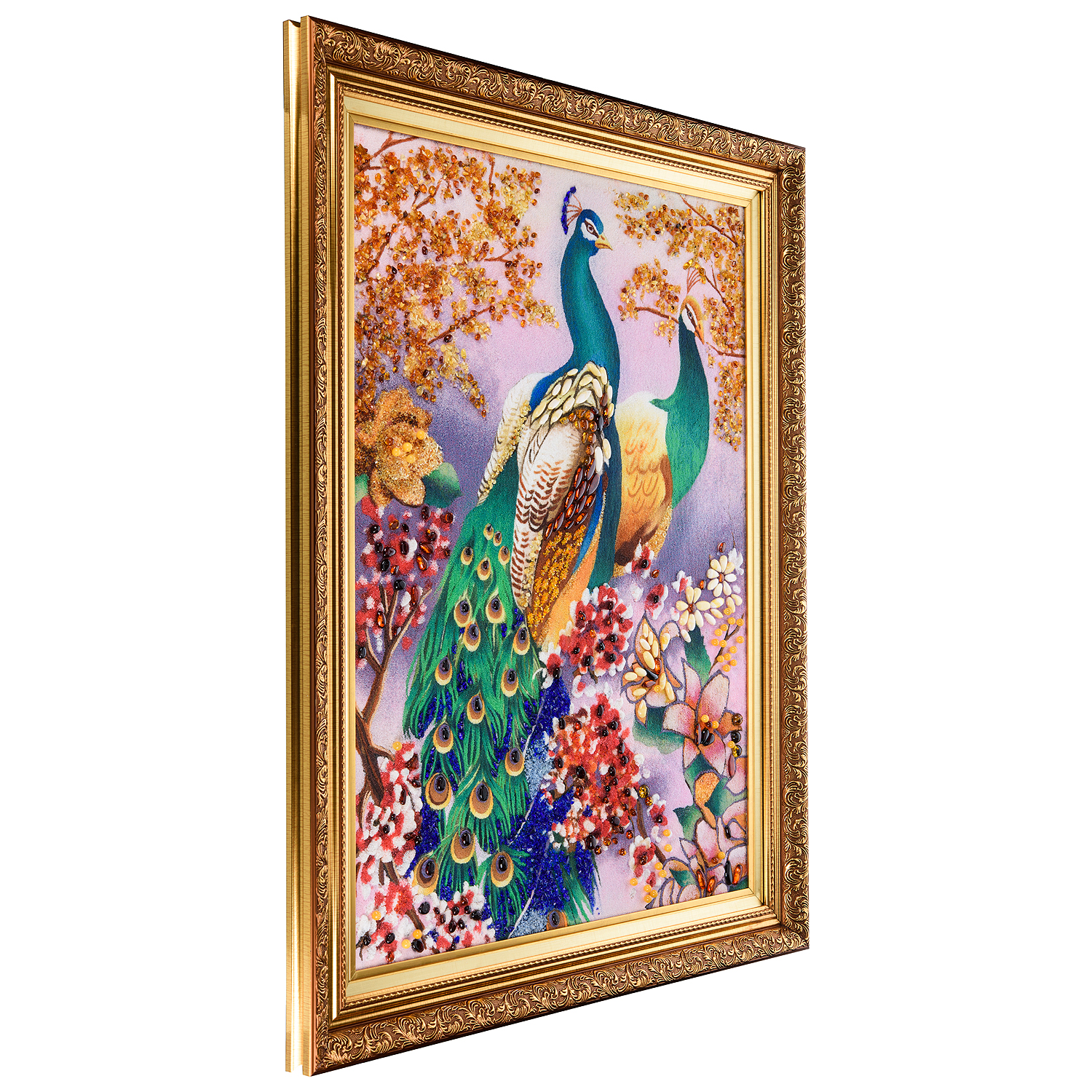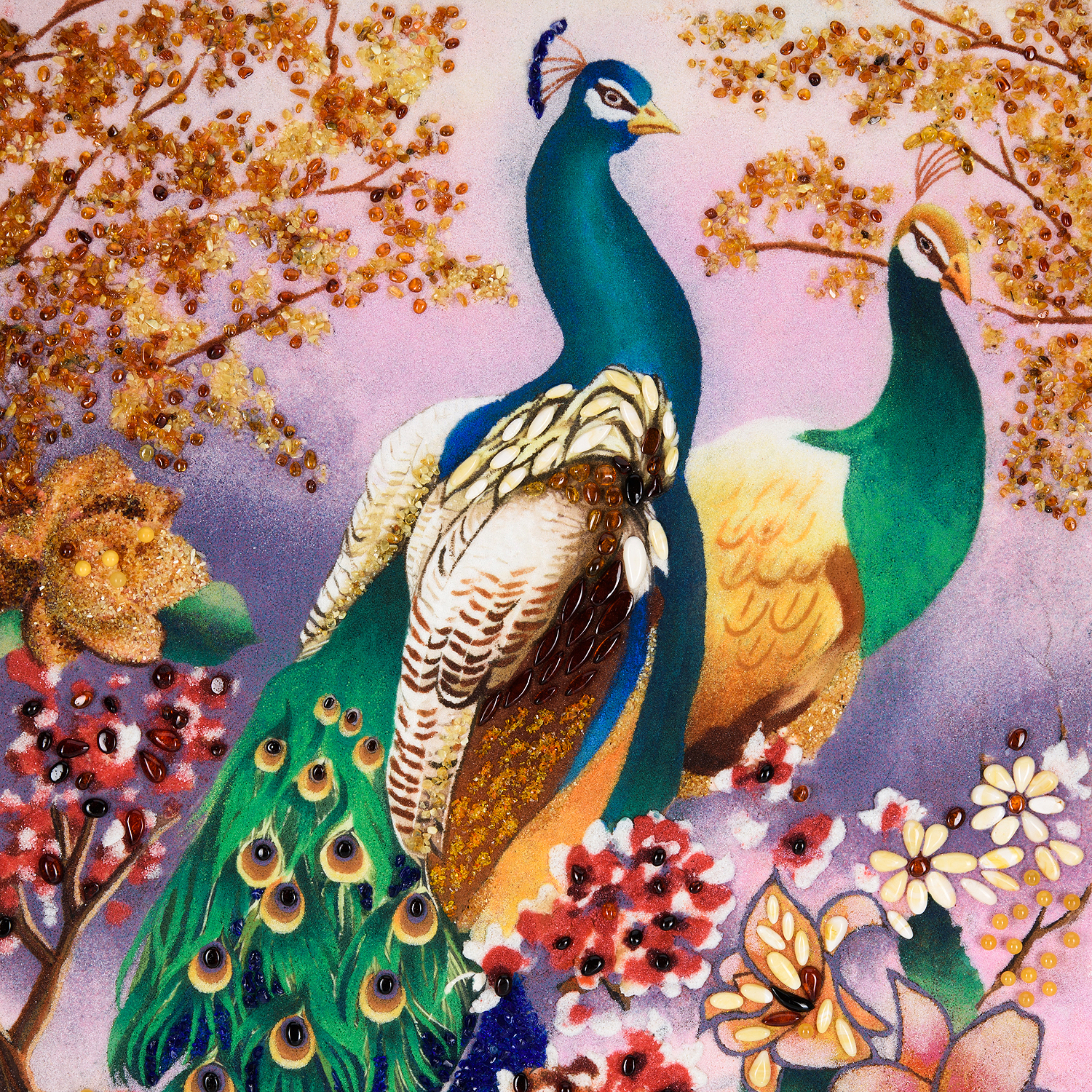 Русские подарки и сувениры → Интерьерные изделия → Картины → Янтарная картина "Павлины в саду" 60х80 см