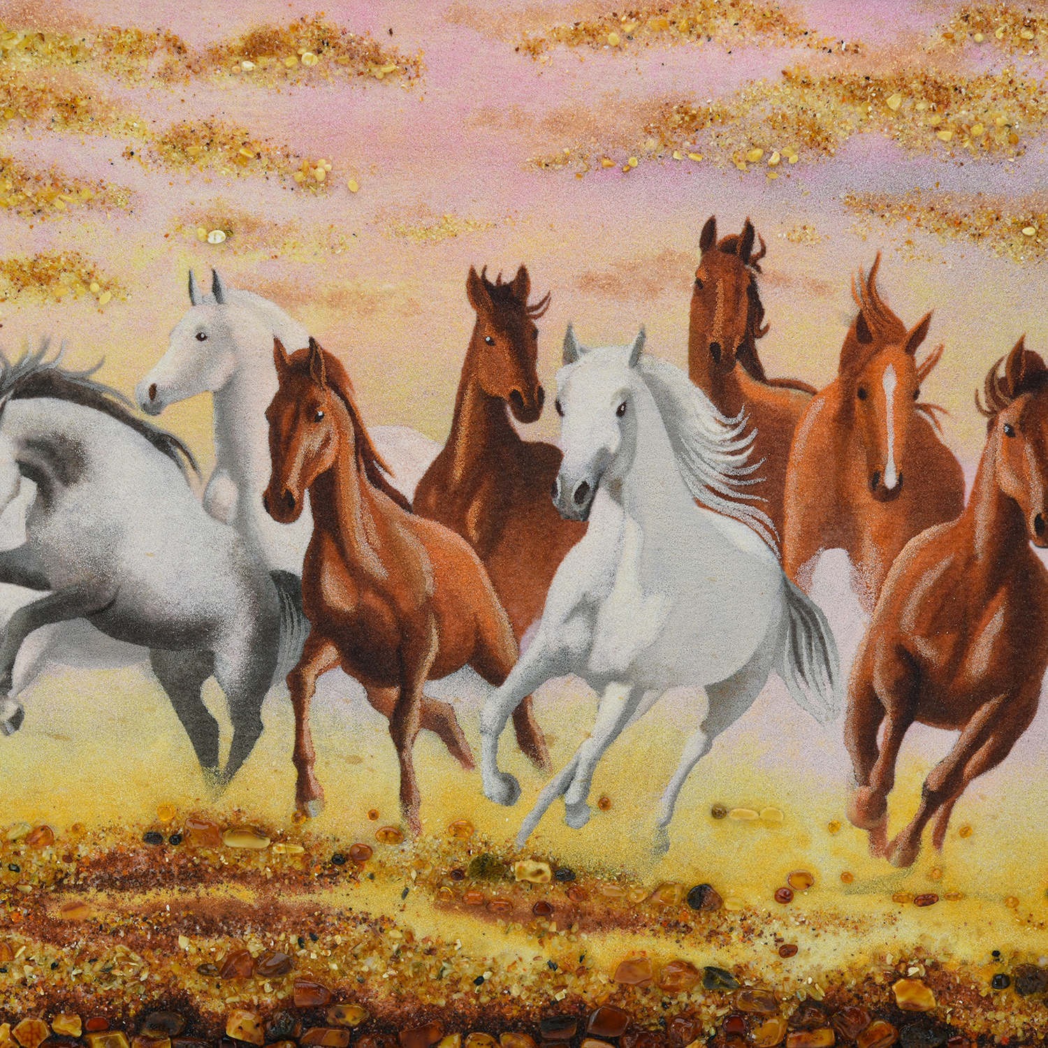 Картина янтарная "Табун лошадей в степи" 60x80 см