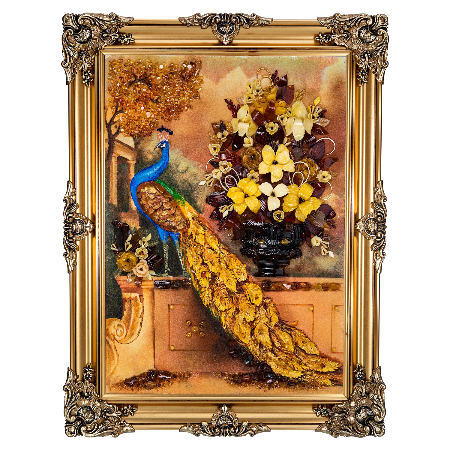 Картина янтарная "Павлин" 79х57 см