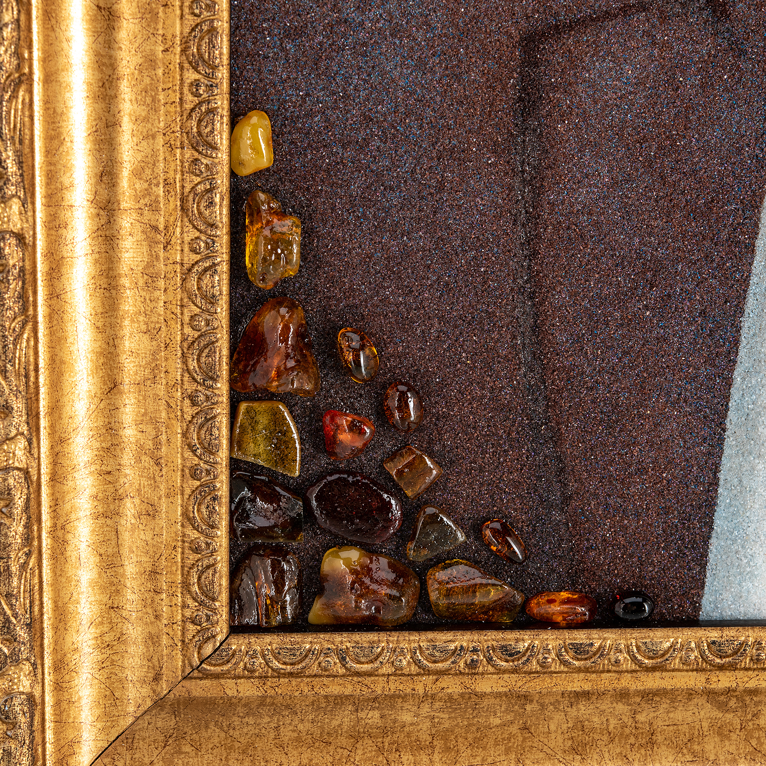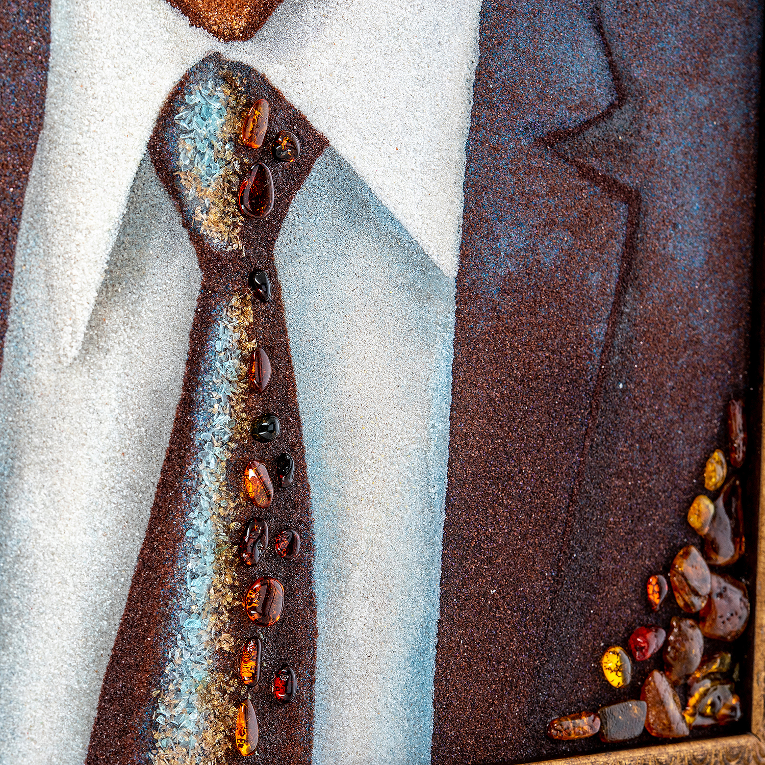 Картина янтарная "В.В.Путин".Материалы: фанера, краски, янтарь, багетная рама.