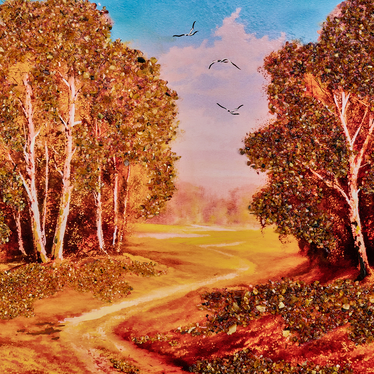 Картина янтарная "Пейзаж".Размер холста: 400х700 мм