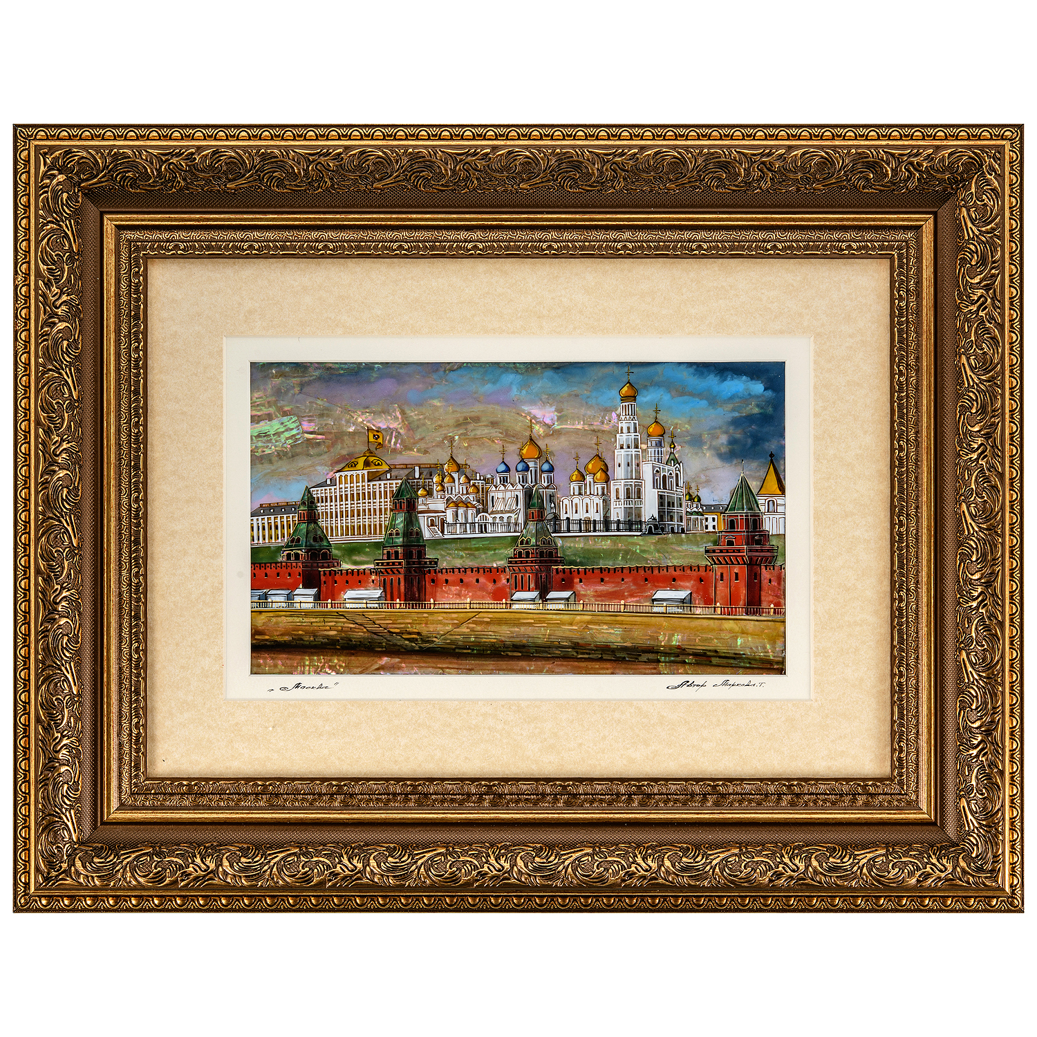 Русские подарки и сувениры → Интерьерные изделия → Картины → Картина на перламутре "Москва. Кремлевская набережная" 45х35 см