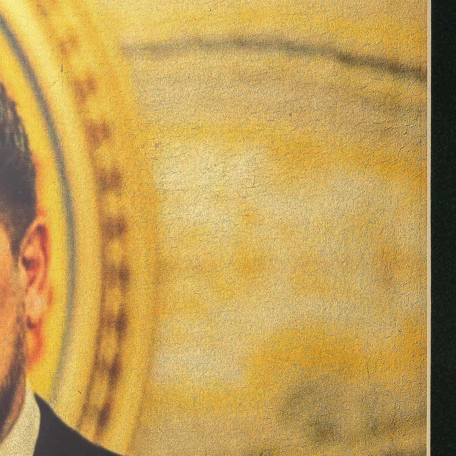 Картина на сусальном золоте "Рамзан Ахматович Кадыров".Материалы: сусальное золото, паспарту, стекло, деревянный багет.