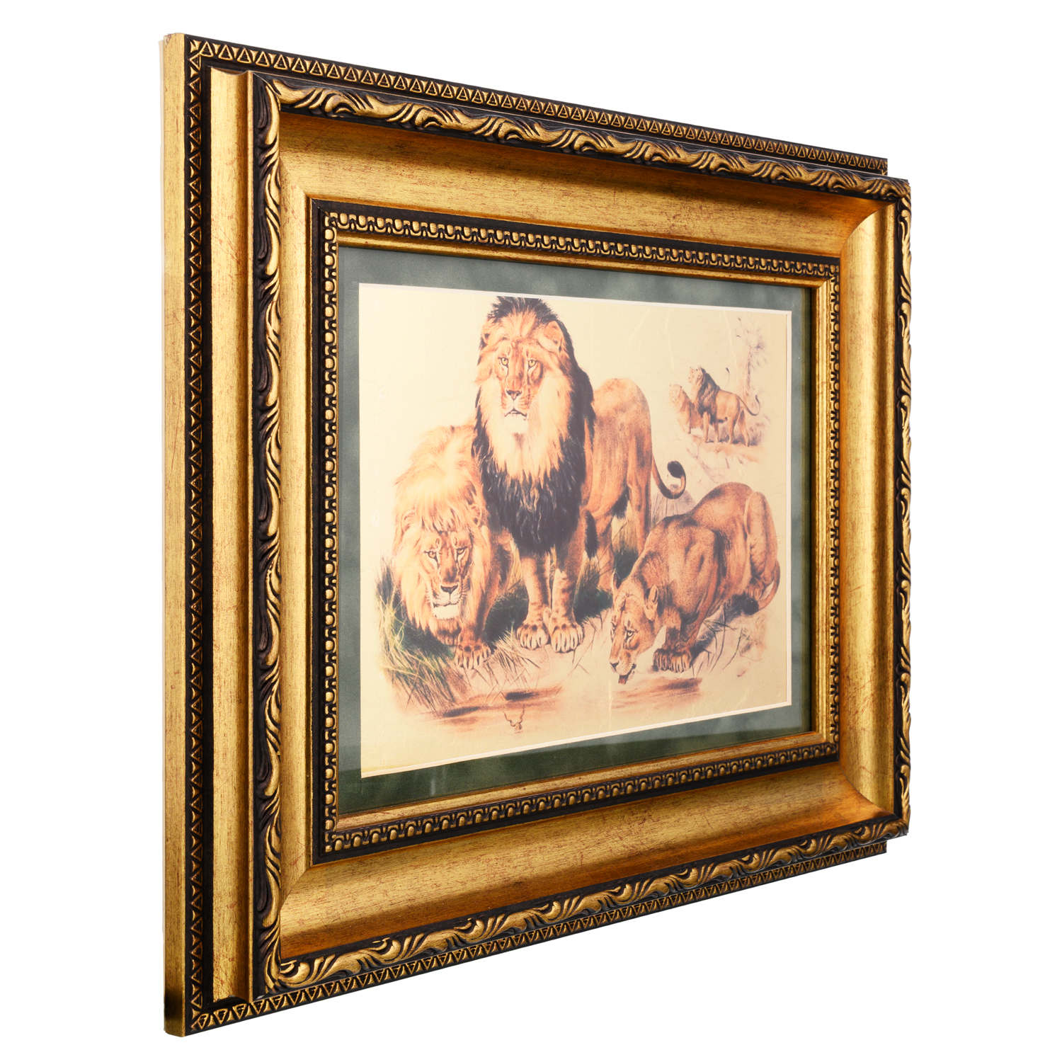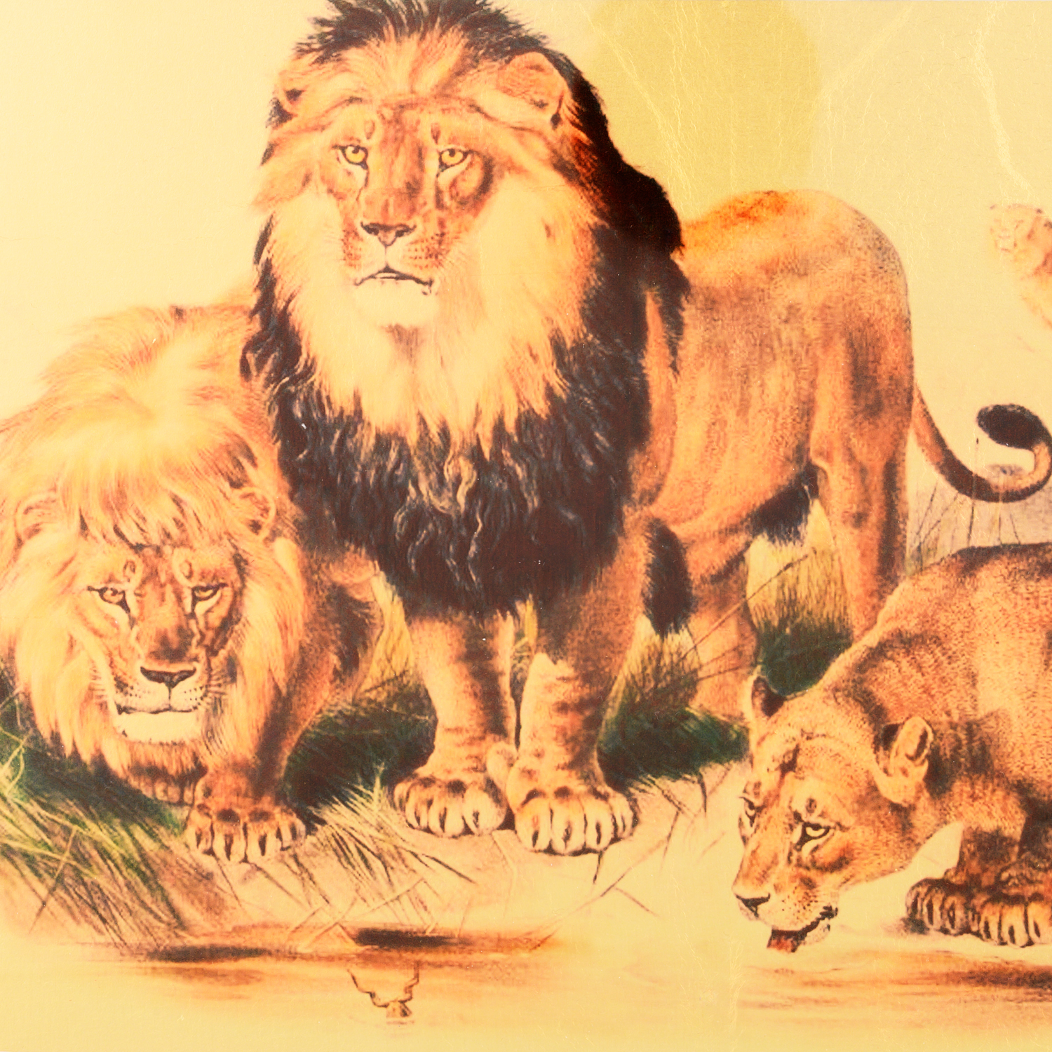 Картина на сусальном золоте "Прайд львов".Материал: холст, паспарту, сусальное золото.
