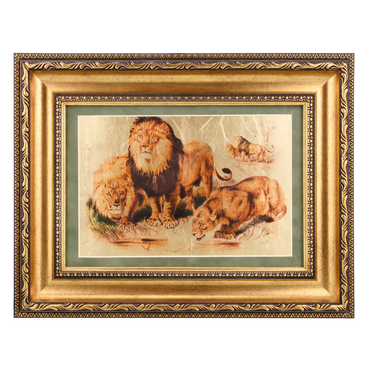 Картина на сусальном золоте "Прайд львов" 35х45 см