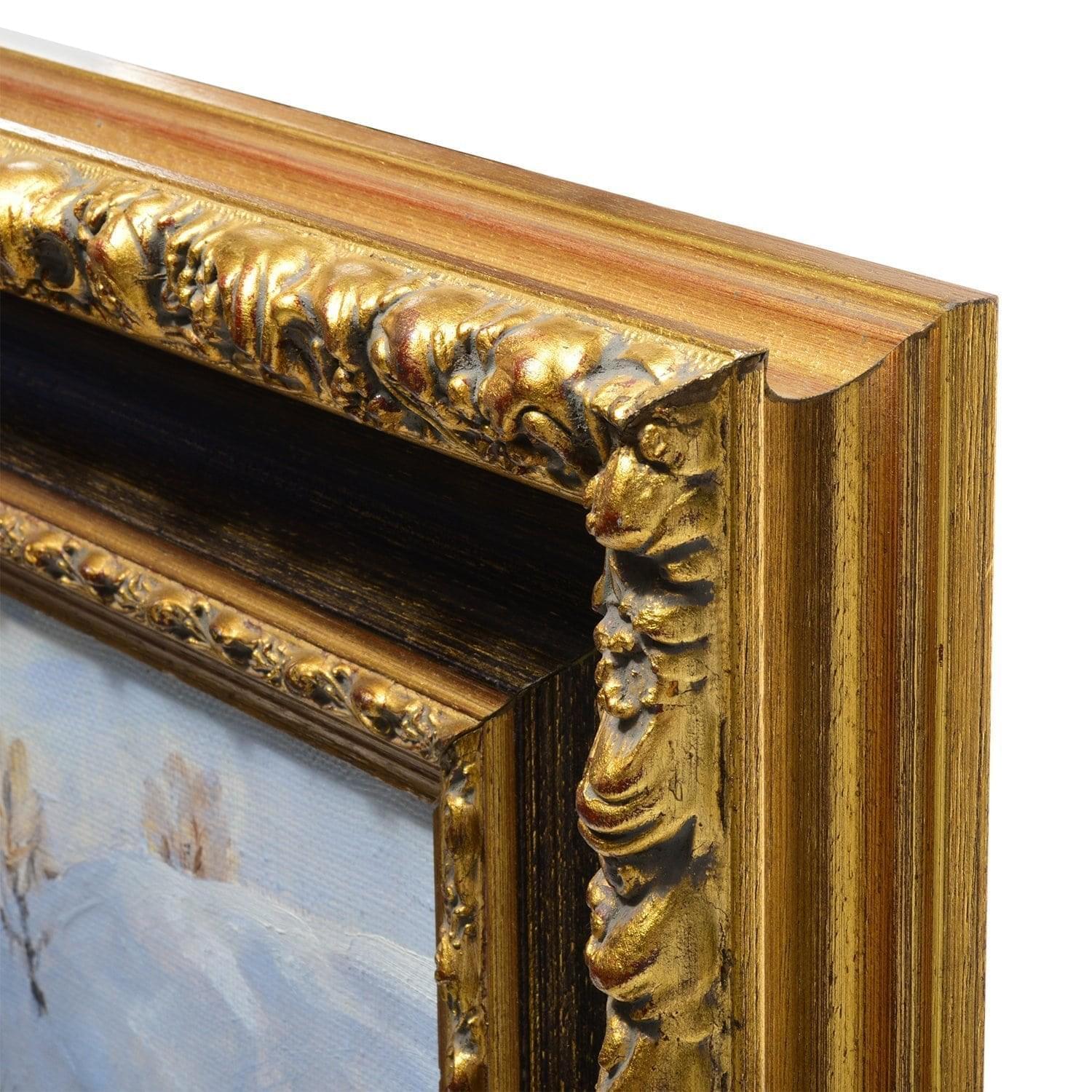 Пейзаж написан масляными красками на холсте. Картина  обрамлена в классическую широкую раму из багета, золотистый оттенок которой с лёгким винтажным эффектом подчеркивает цветовую палитру изображения. Эксклюзивная авторская работа,  картина российского художника Геннадия Шуршина, написанная в 1999 году, под названием  "Обилие снега" - это универсальный подарок  для собирателя образцов современного искусства, подарок родственнику, бизнес-партнеру, руководителю, коллеге  на Свадьбу, День рождения, Юбилей, Новый год, личный или общий  праздник.