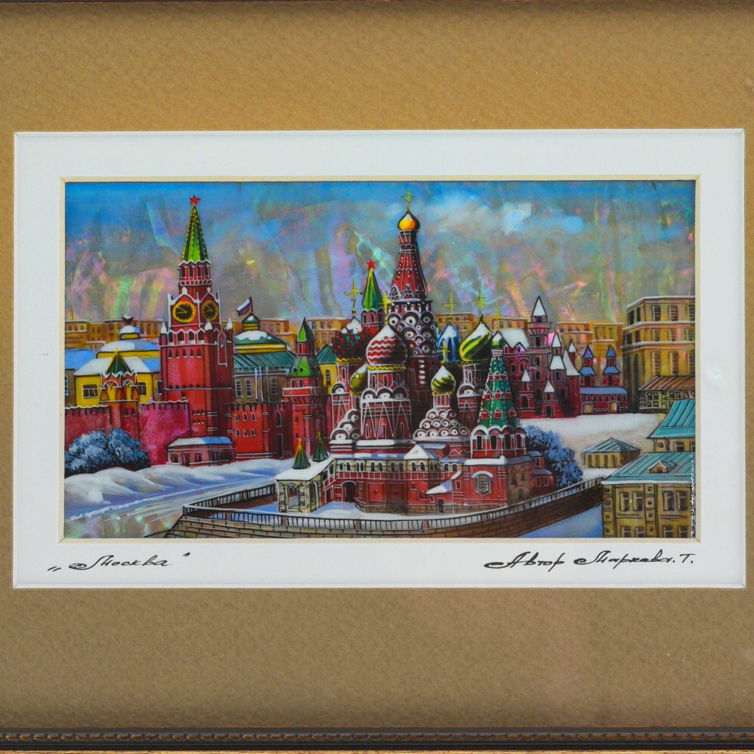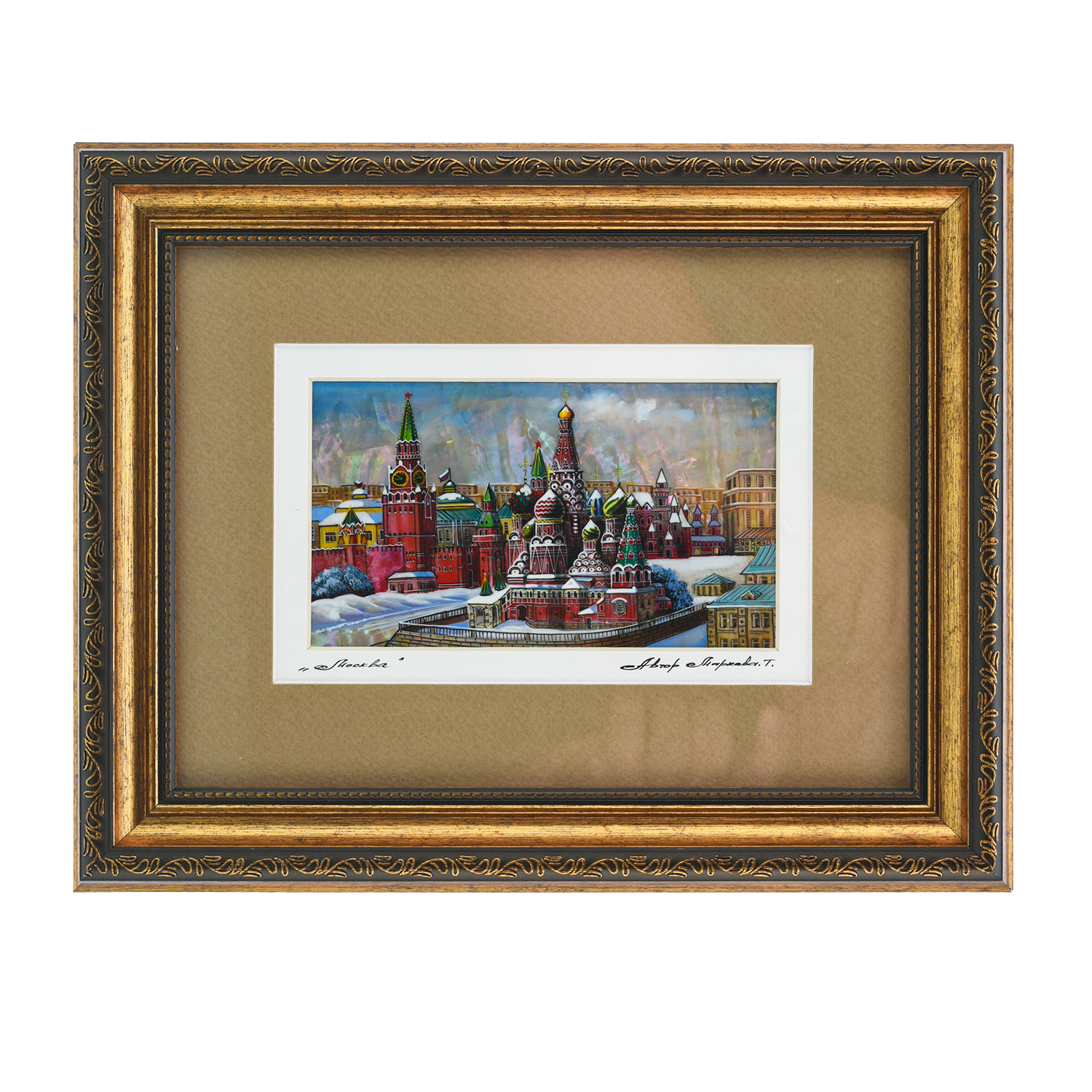 Русские подарки и сувениры → Интерьерные изделия → Картины → Картина на перламутре "Храм Василия Блаженного" 28х22 см