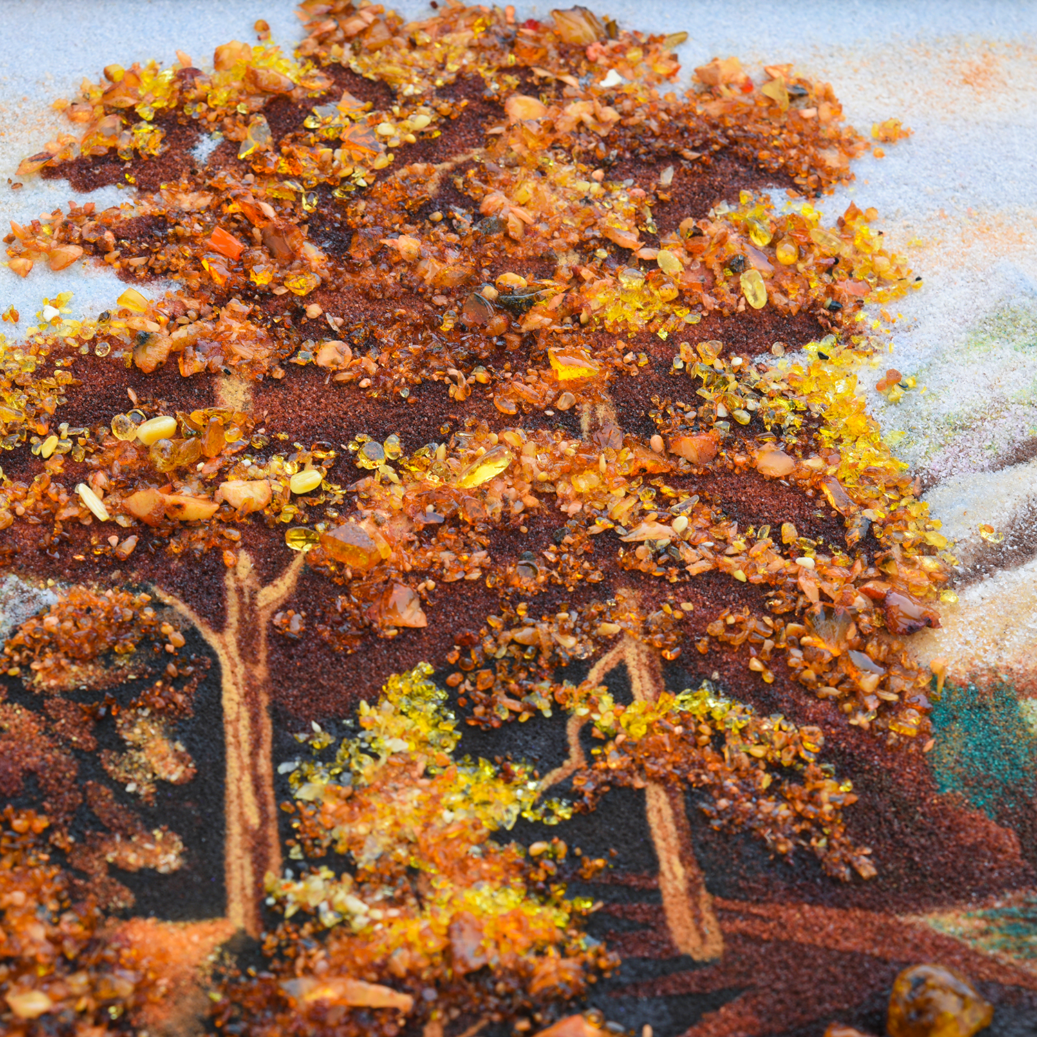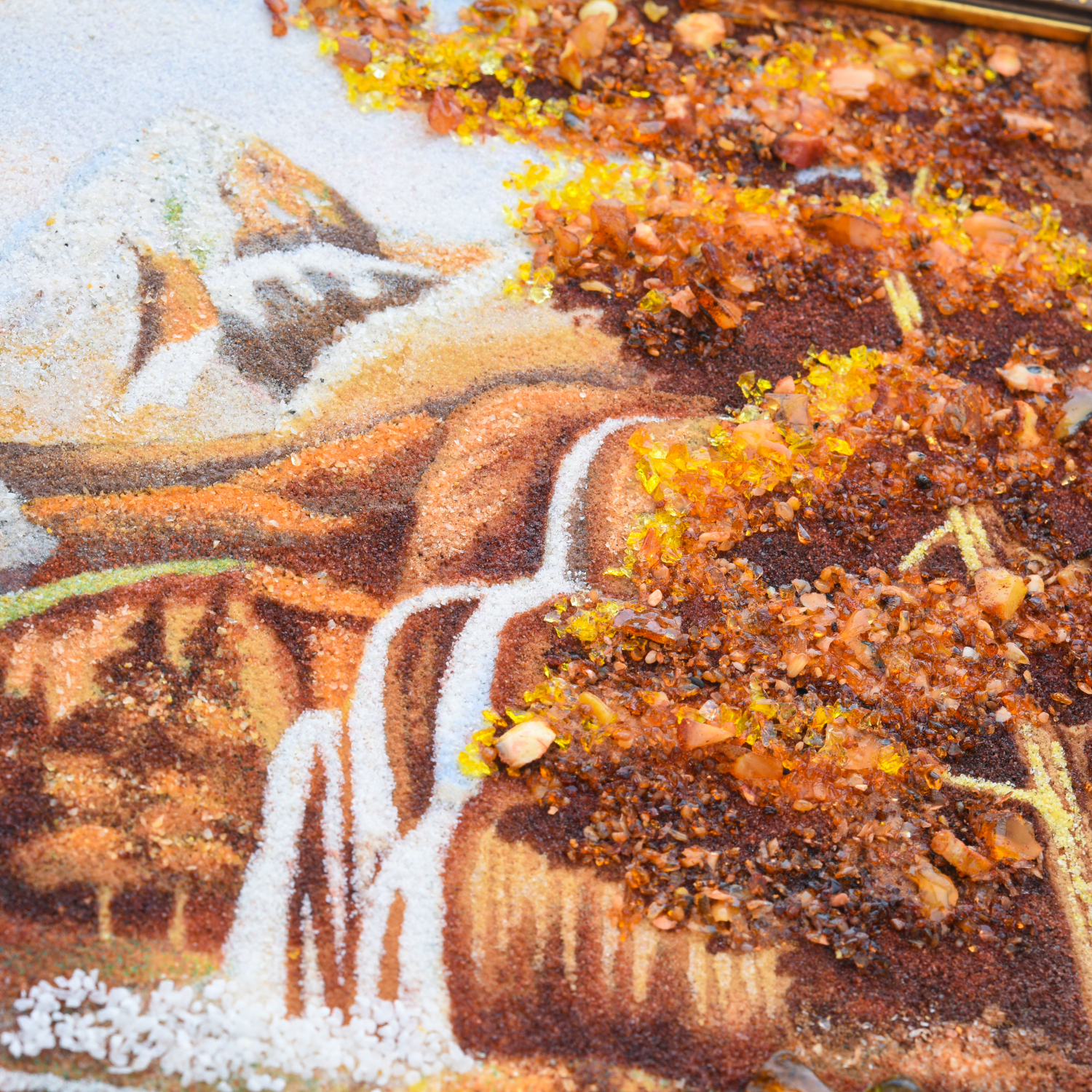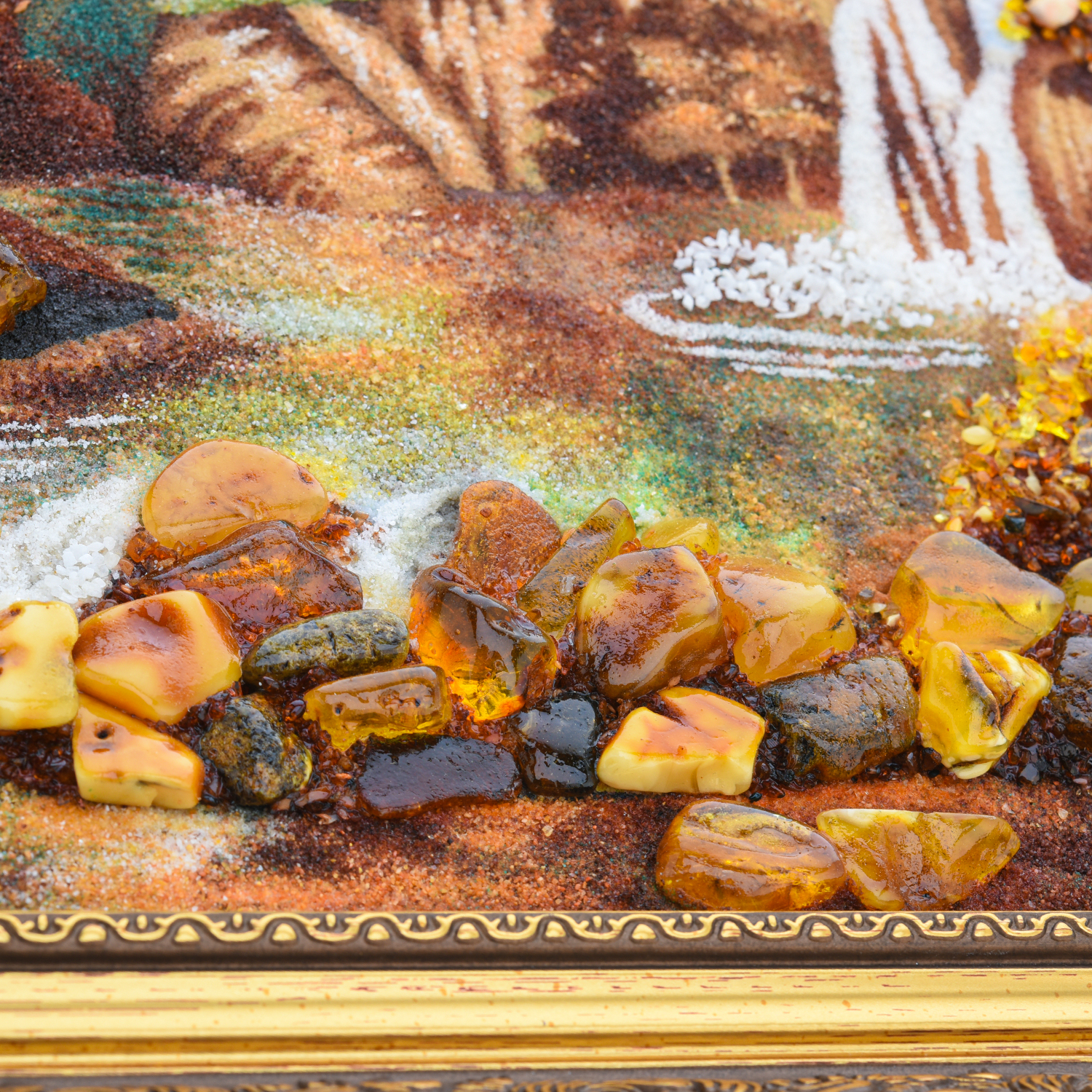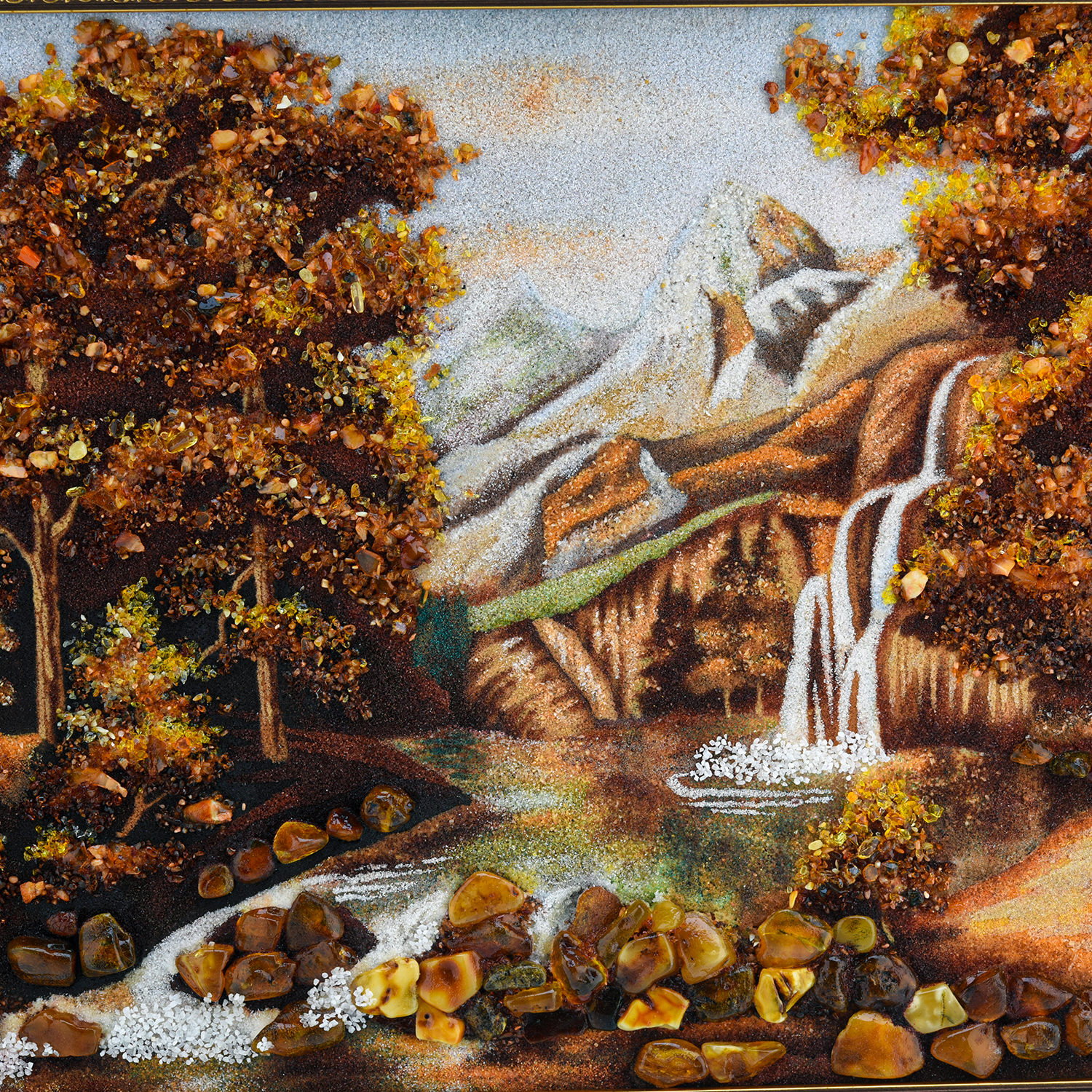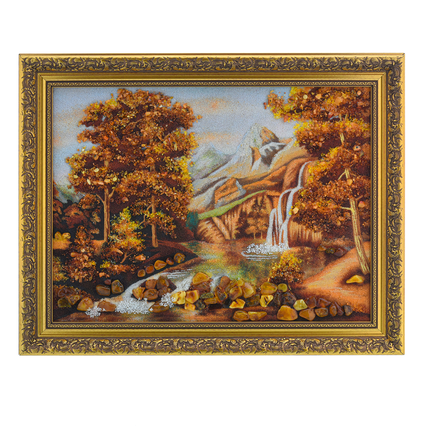 Русские подарки и сувениры → Интерьерные изделия → Картины → Картина янтарная "Водопад в горах" 30х40 см