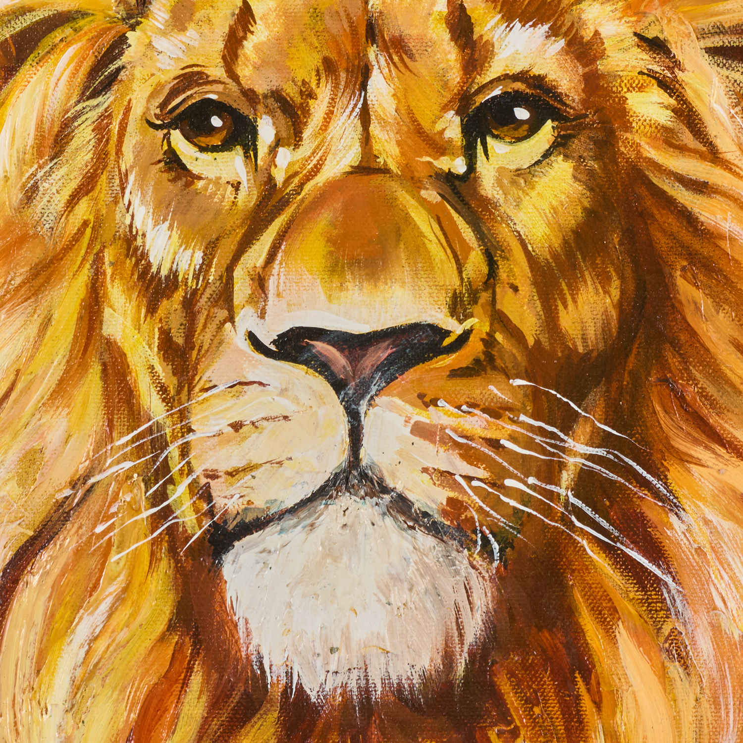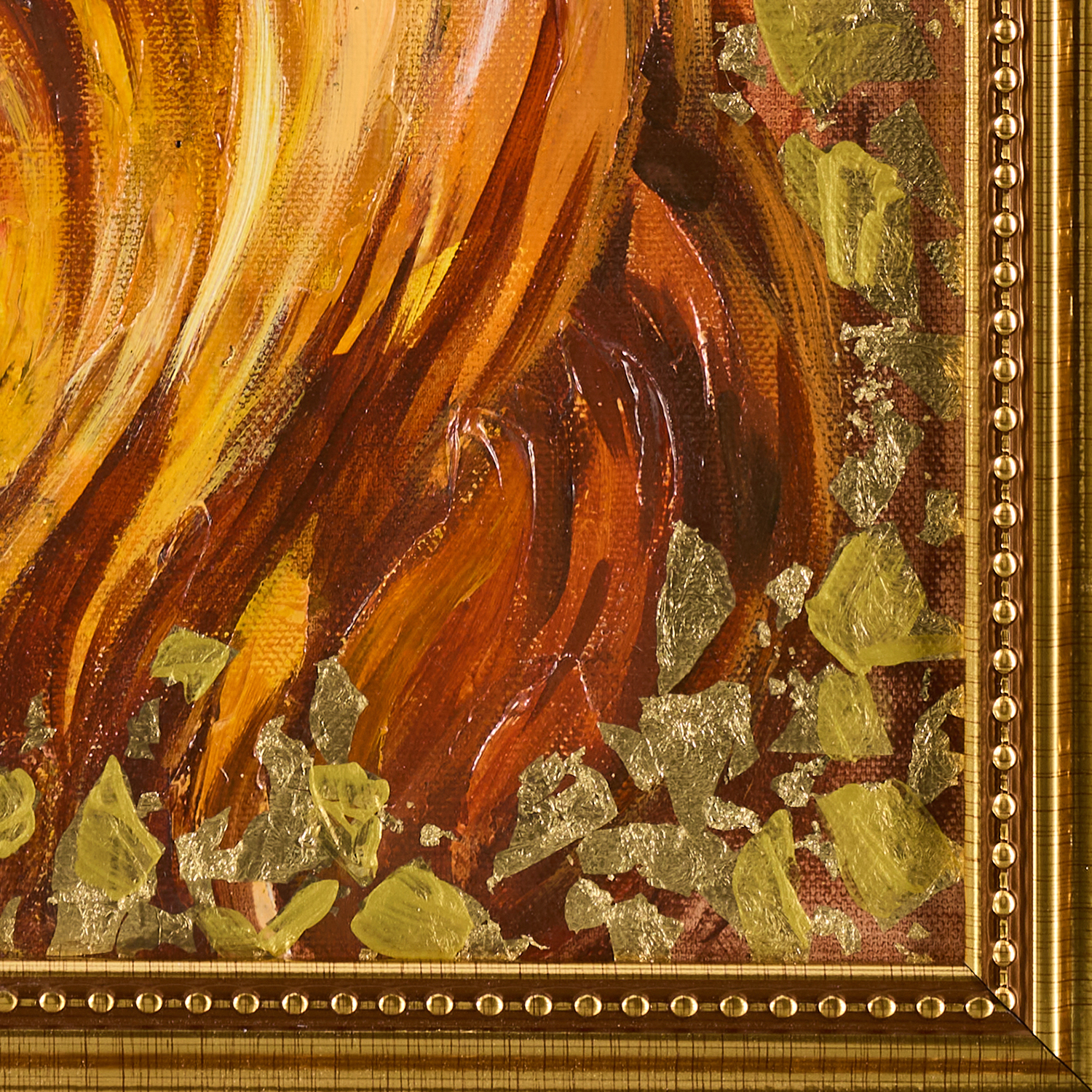 Картина с поталью и янтарем "Лев".Материалы: холст, краски, поталь, янтарь, багетная рама.
