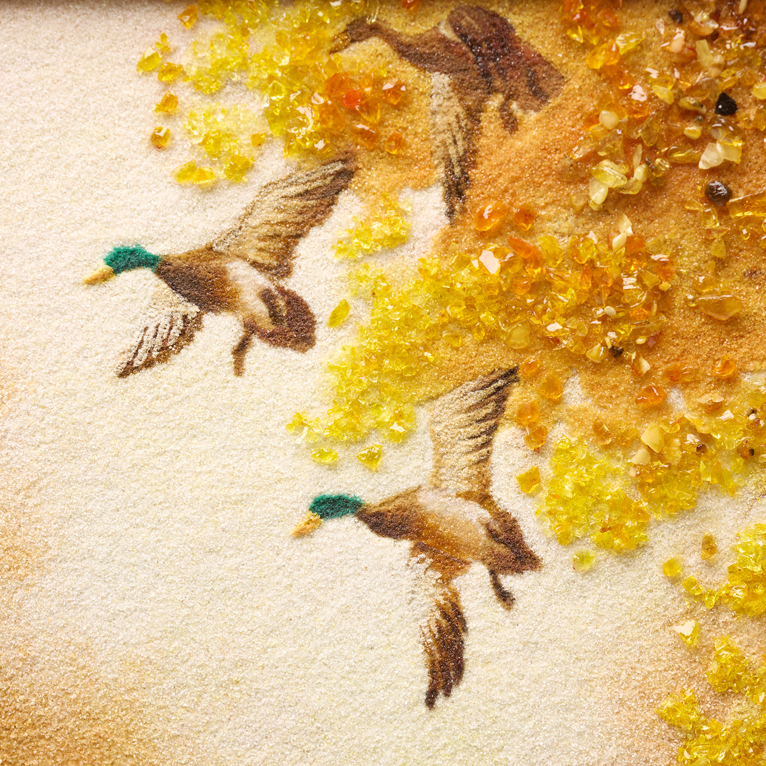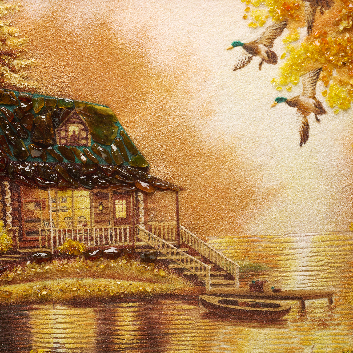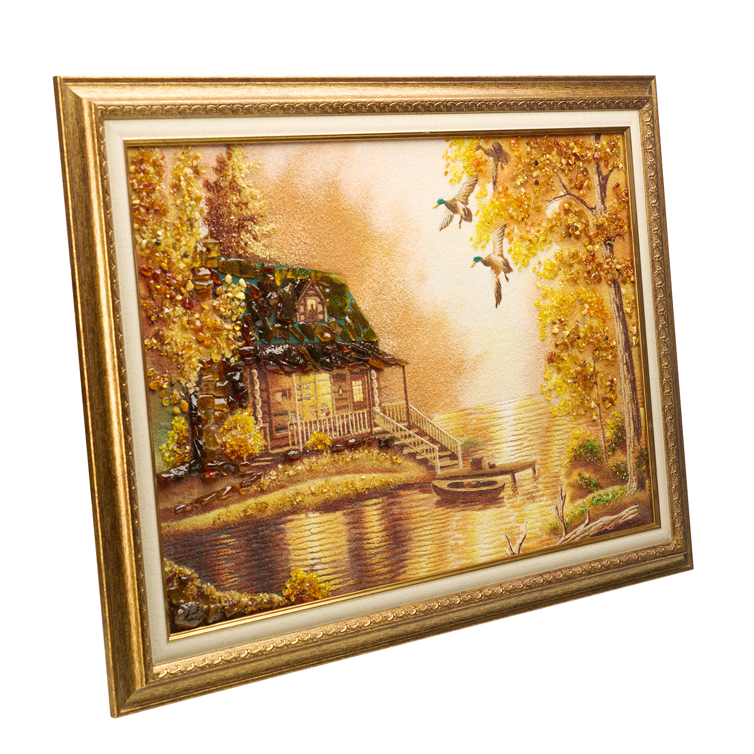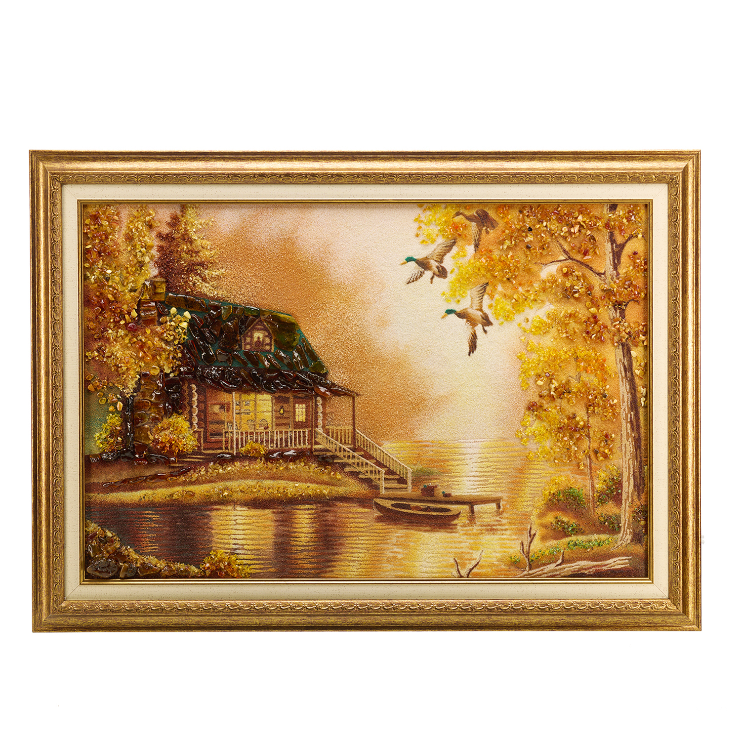 Русские подарки и сувениры → Интерьерные изделия → Картины → Картина янтарная "Домик лесника" 60х40 см