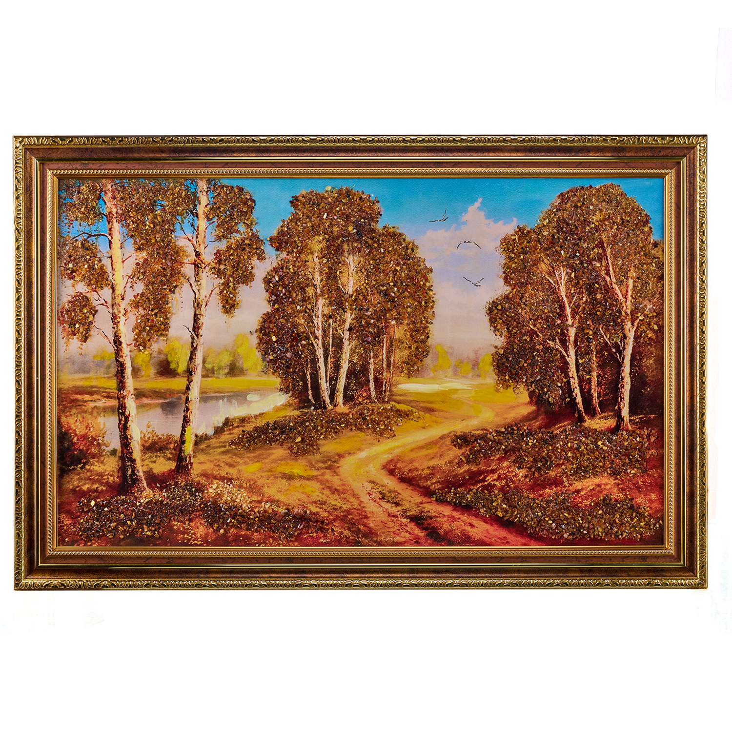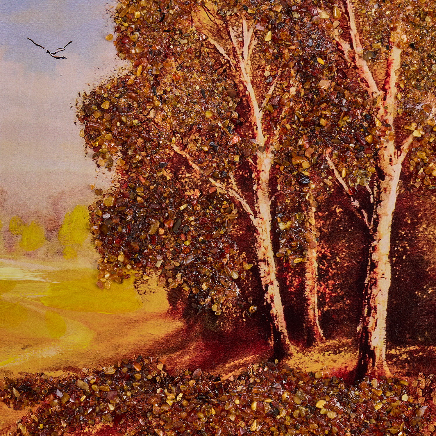 Картина янтарная "Березка".Размер холста: 54х90 см