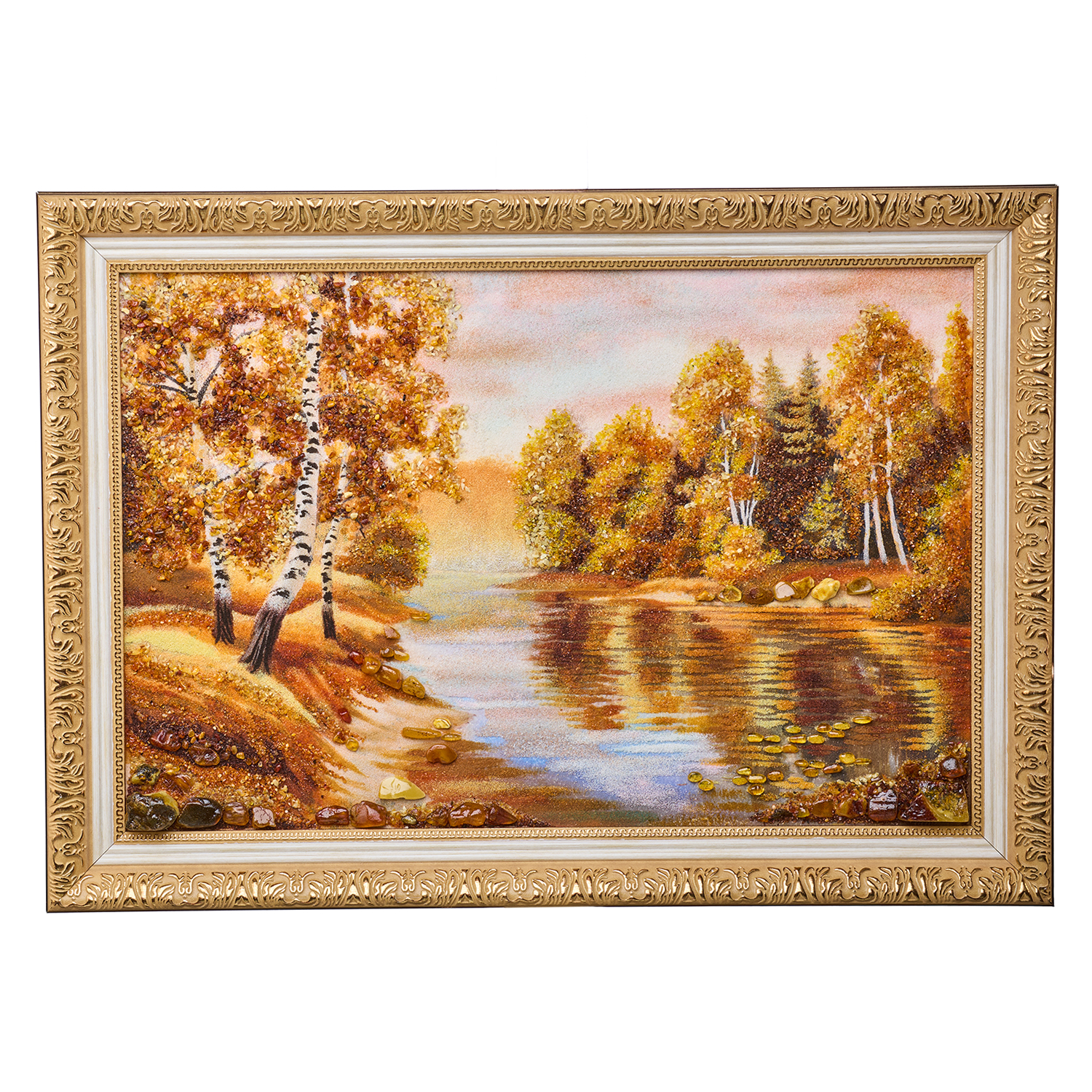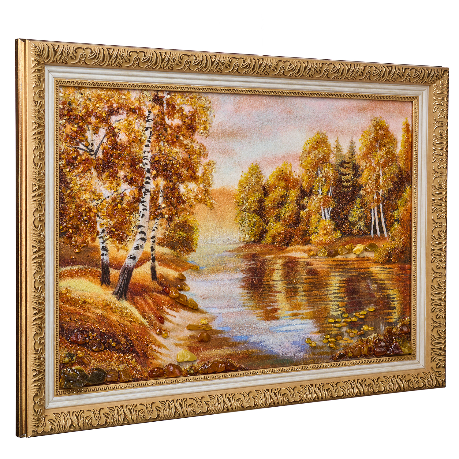 Русские подарки и сувениры → Интерьерные изделия → Картины → Картина янтарная "Березка у реки" 60х40 см