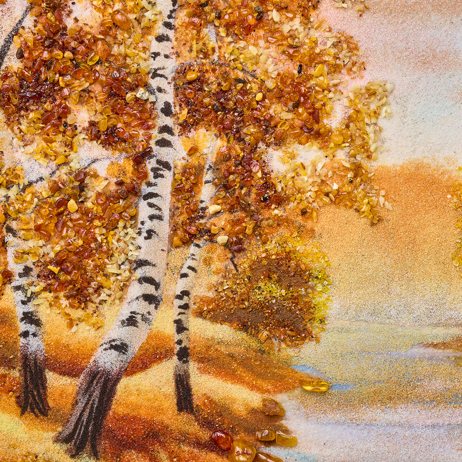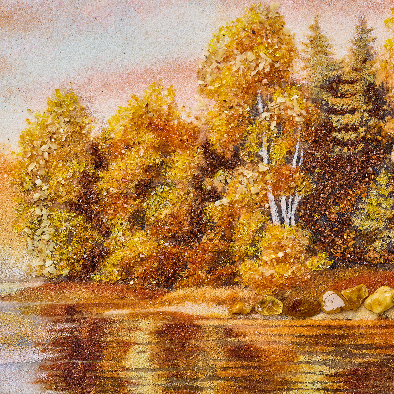 Картина янтарная "Березка у реки" 60х40 см