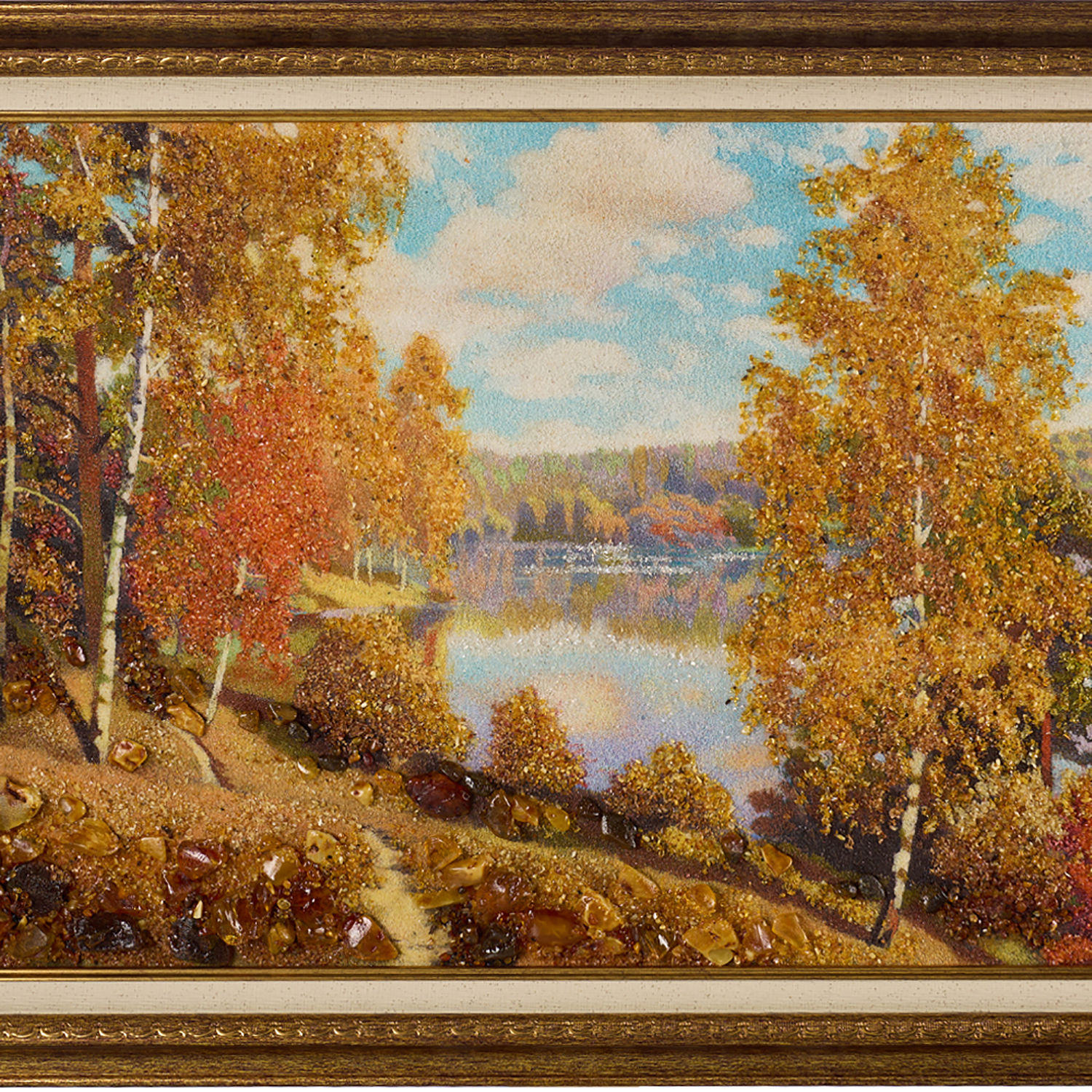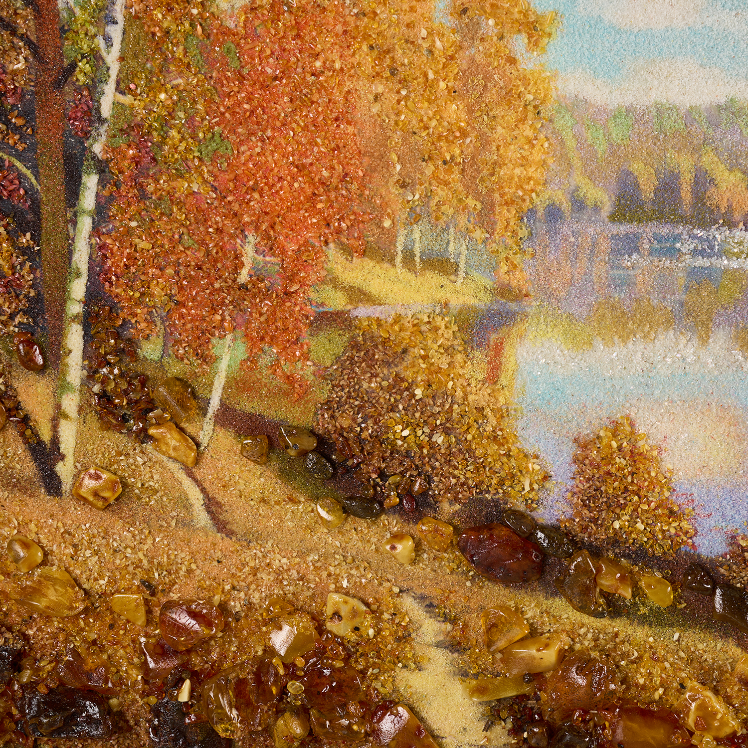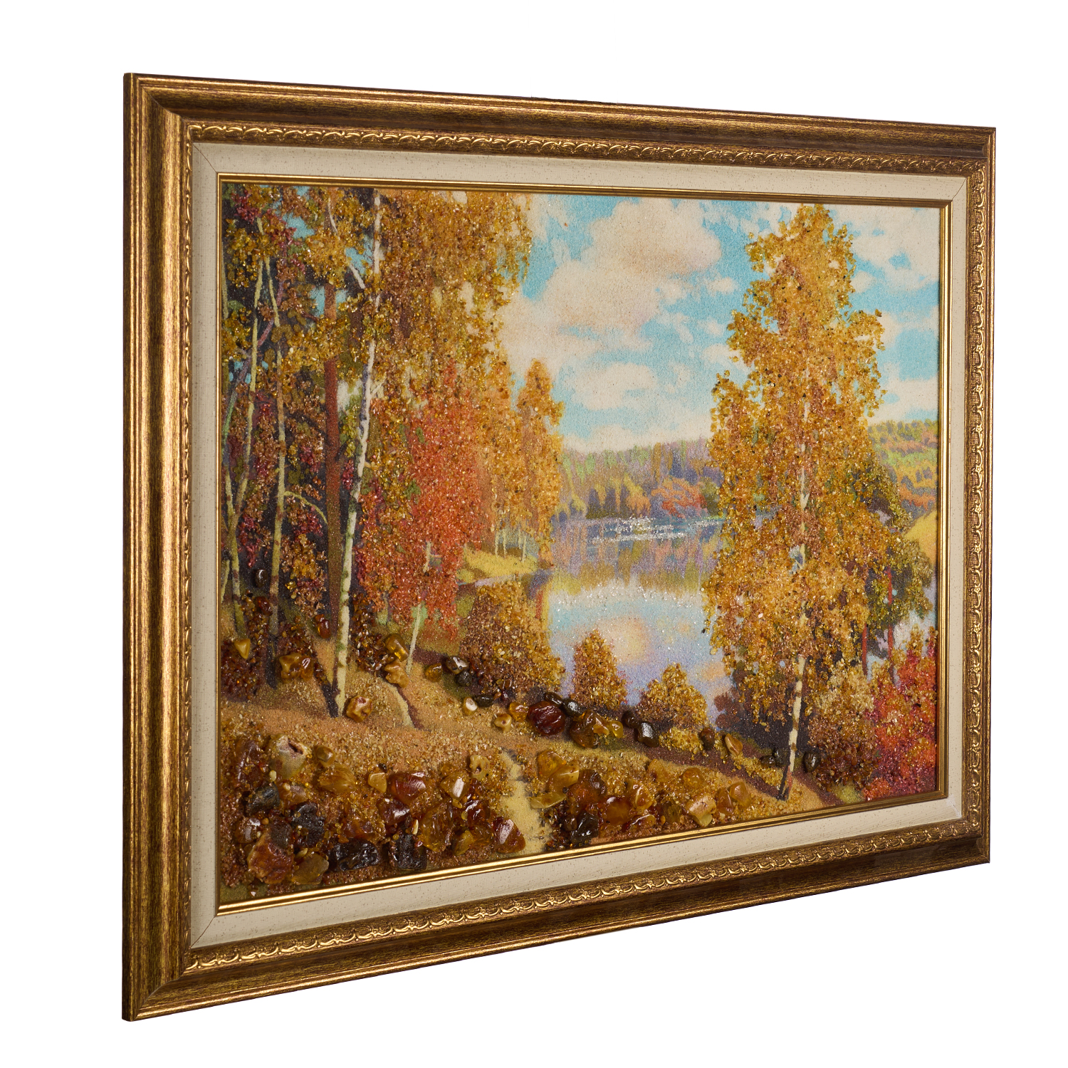 Русские подарки и сувениры → Интерьерные изделия → Картины → Картина янтарная "Озеро в лесу" 60х40 см