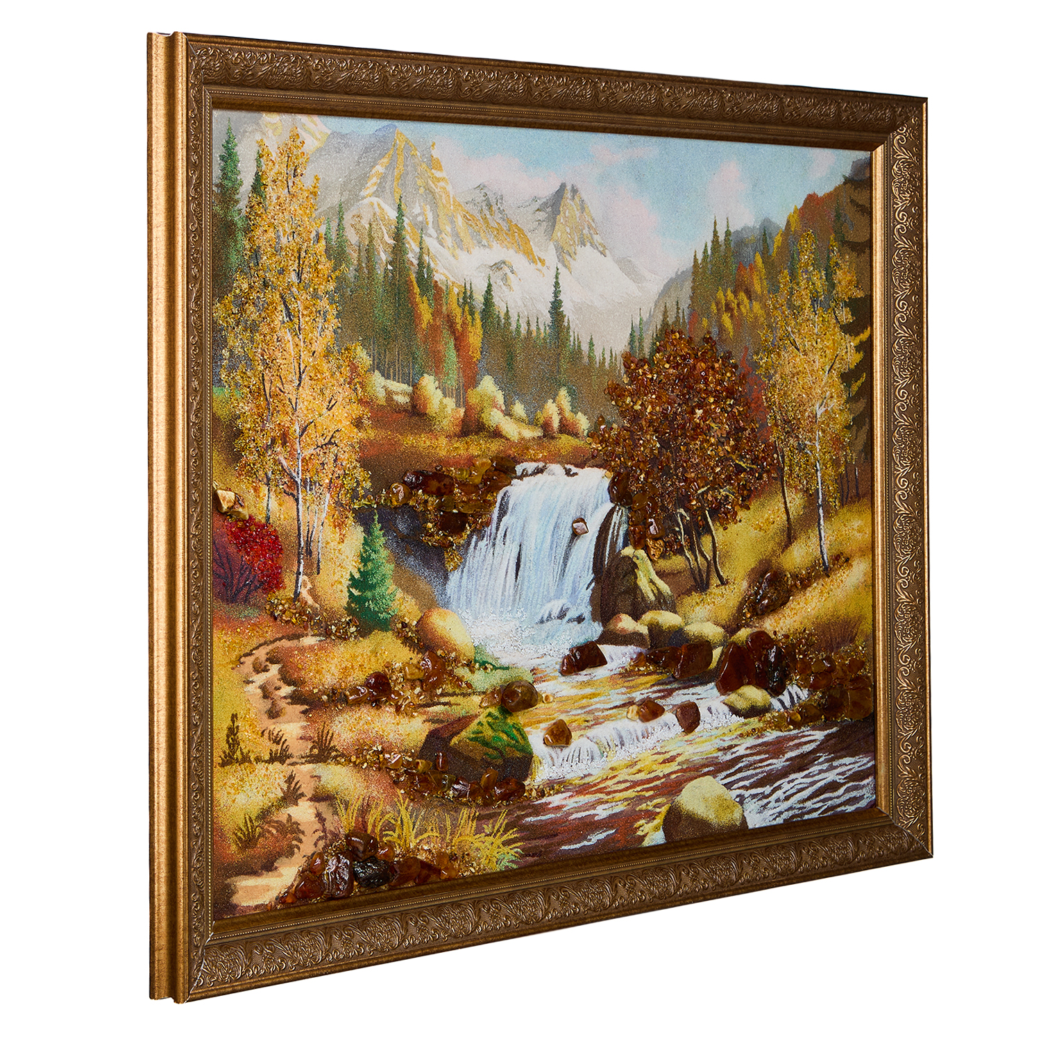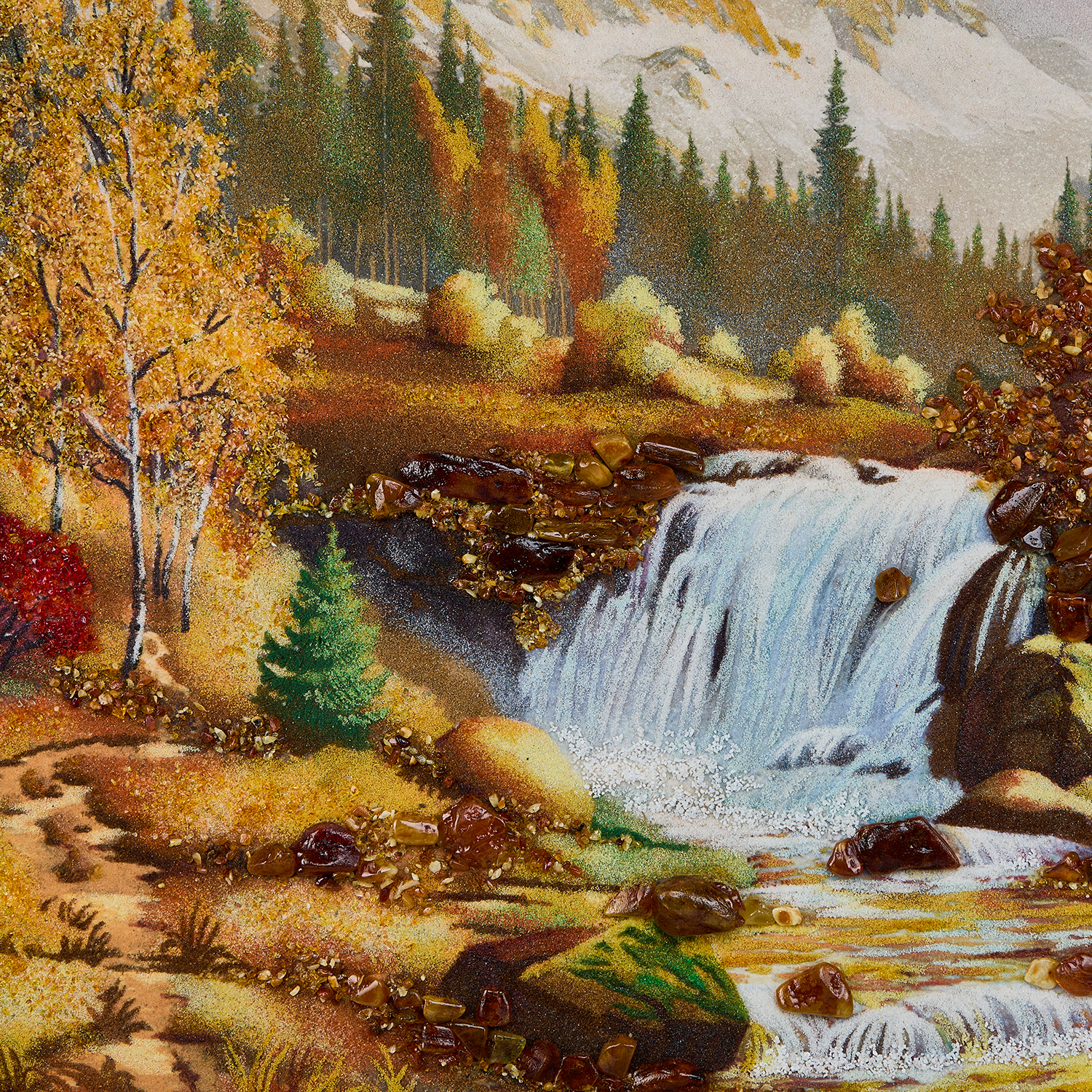 Картина янтарь "Водопад".Размер холста: 600х800 мм