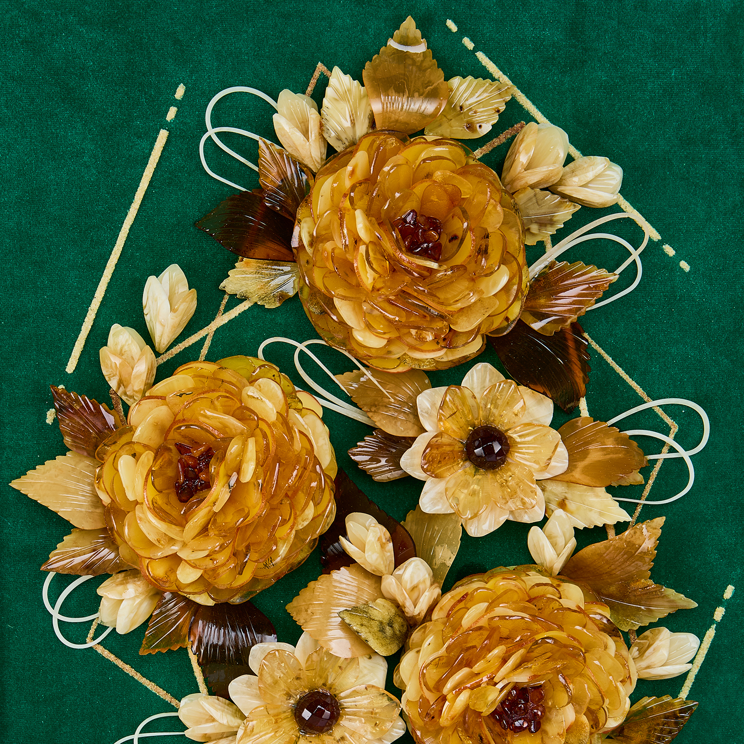 Картина янтарная "Цветы".Материалы: янтарь, барат, багетная рама.