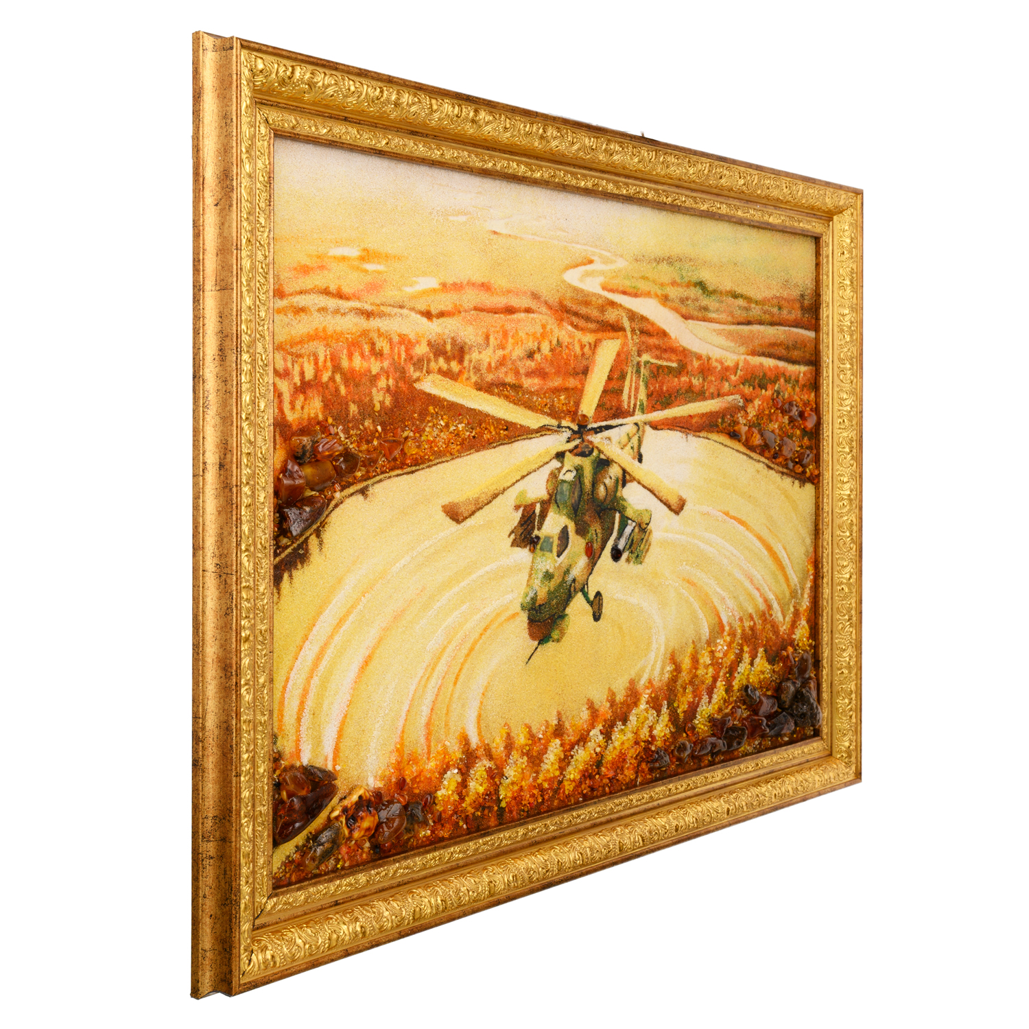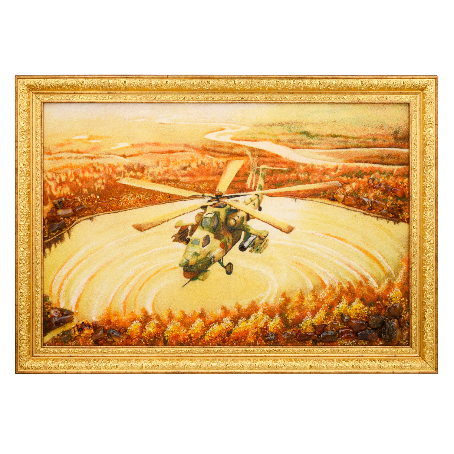 Русские подарки и сувениры → Интерьерные изделия → Картины → Картина янтарная "Панорама с вертолетом" 40х60 см
