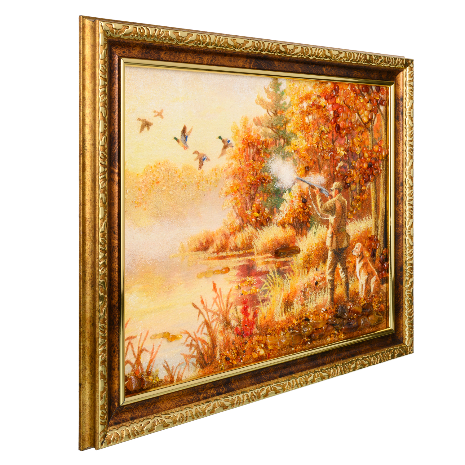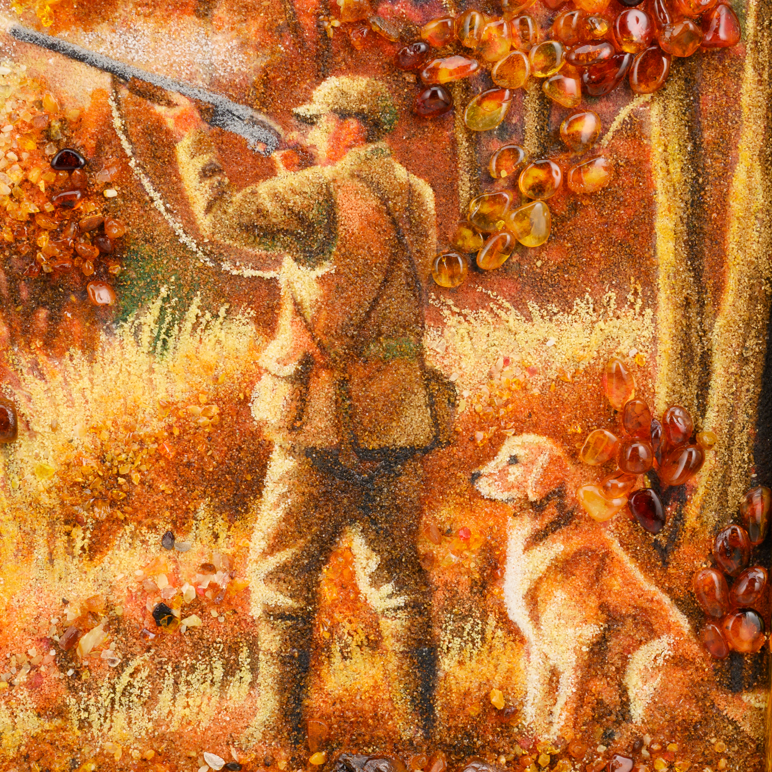 Картина янтарная "Охотник".Размер холста: 30х40 см