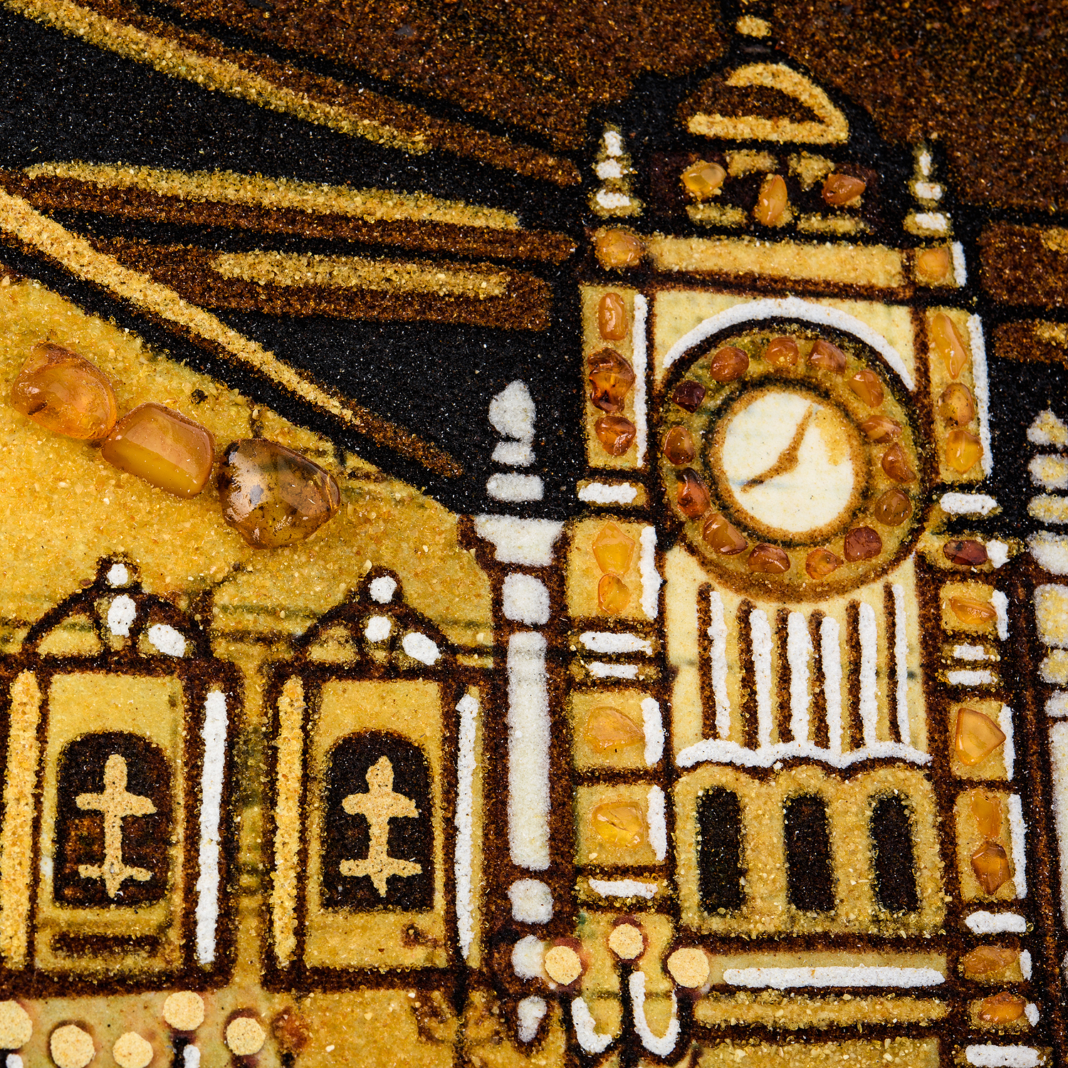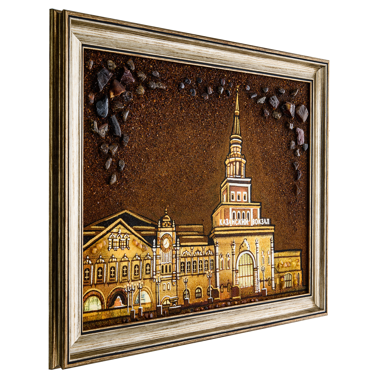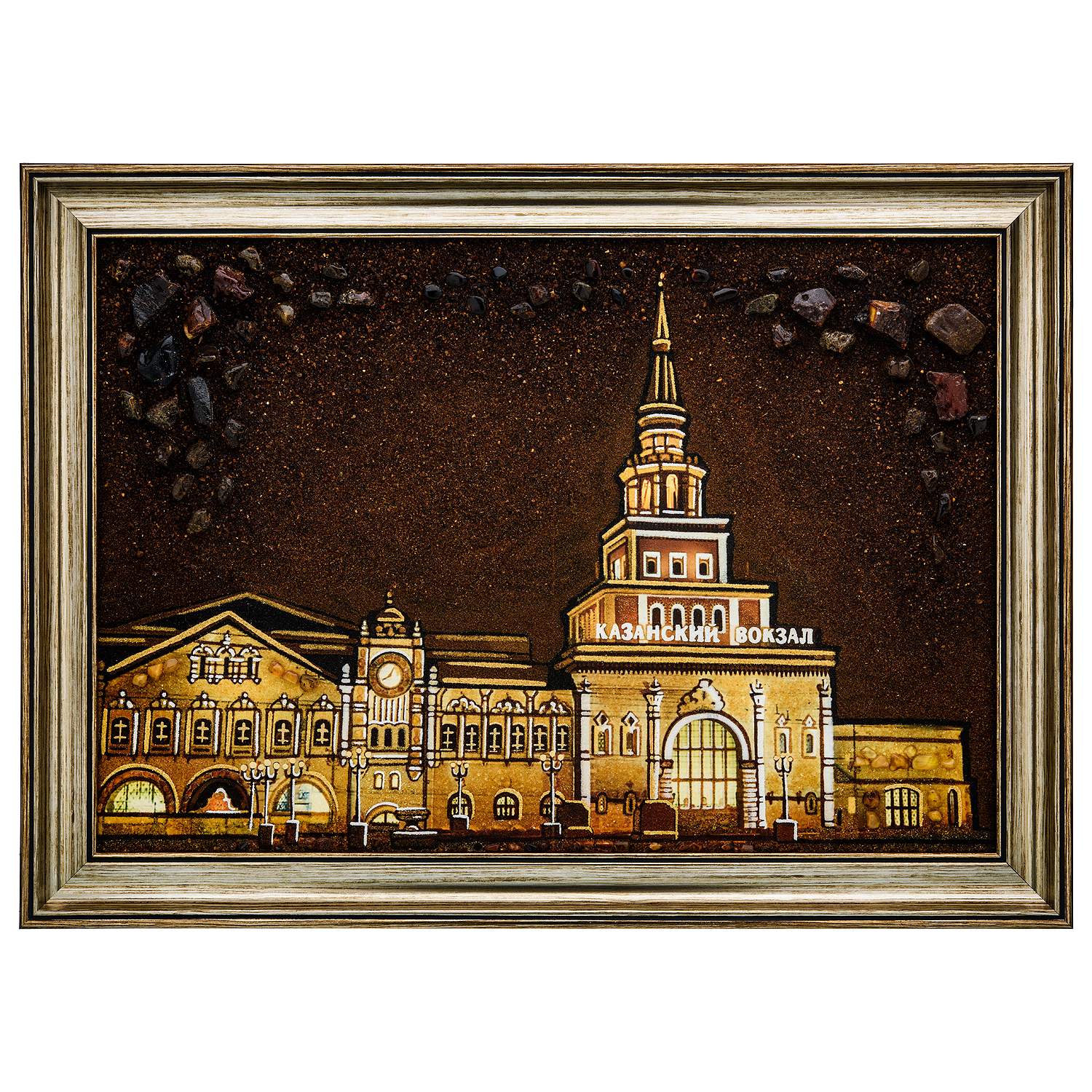 Картина крупного формата, на которой представлен ночной московский пейзаж с изображением памятника архитектуры и инженерного искусства - здания одного из девяти столичных железнодорожных вокзалов. Вашему вниманию - янтарная картина, это оригинальная художественная интерпретации классического аксессуара. Мы рады предложить ее в рамках уникального собрания классических элементов декора - картин малого, среднего и крупного форматов, созданных с использованием солнечного камня, балтийского янтаря.Столько янтаря, сколько есть в России, нет ни на одной другой части суши! 90% мировых запасов этого природного минерала находится на территории нашей страны. Картины с янтарем создают в интерьерах места силы и притяжения.
