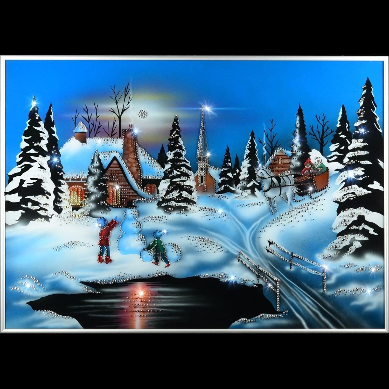 Картина "Зимний вечер". Сваровски Swarovski 70 х 50 см