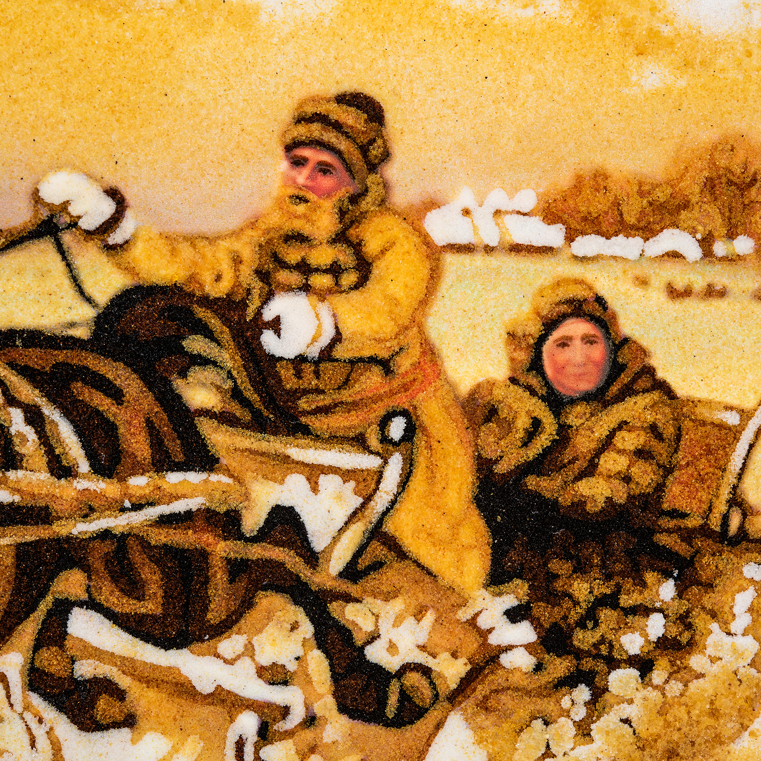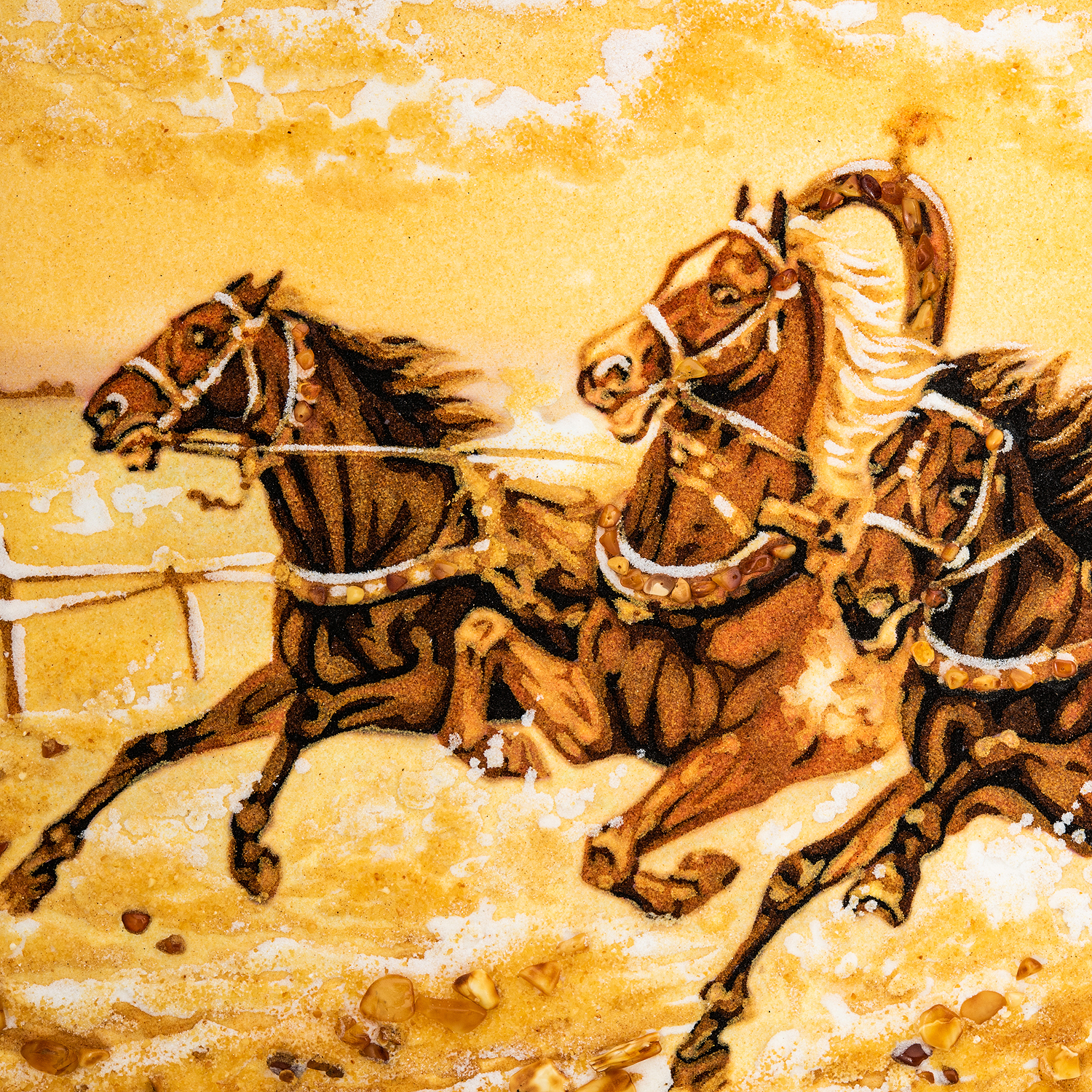 Русские подарки и сувениры → Интерьерные изделия → Картины → Картина янтарная "Зимняя тройка" 60x80 см