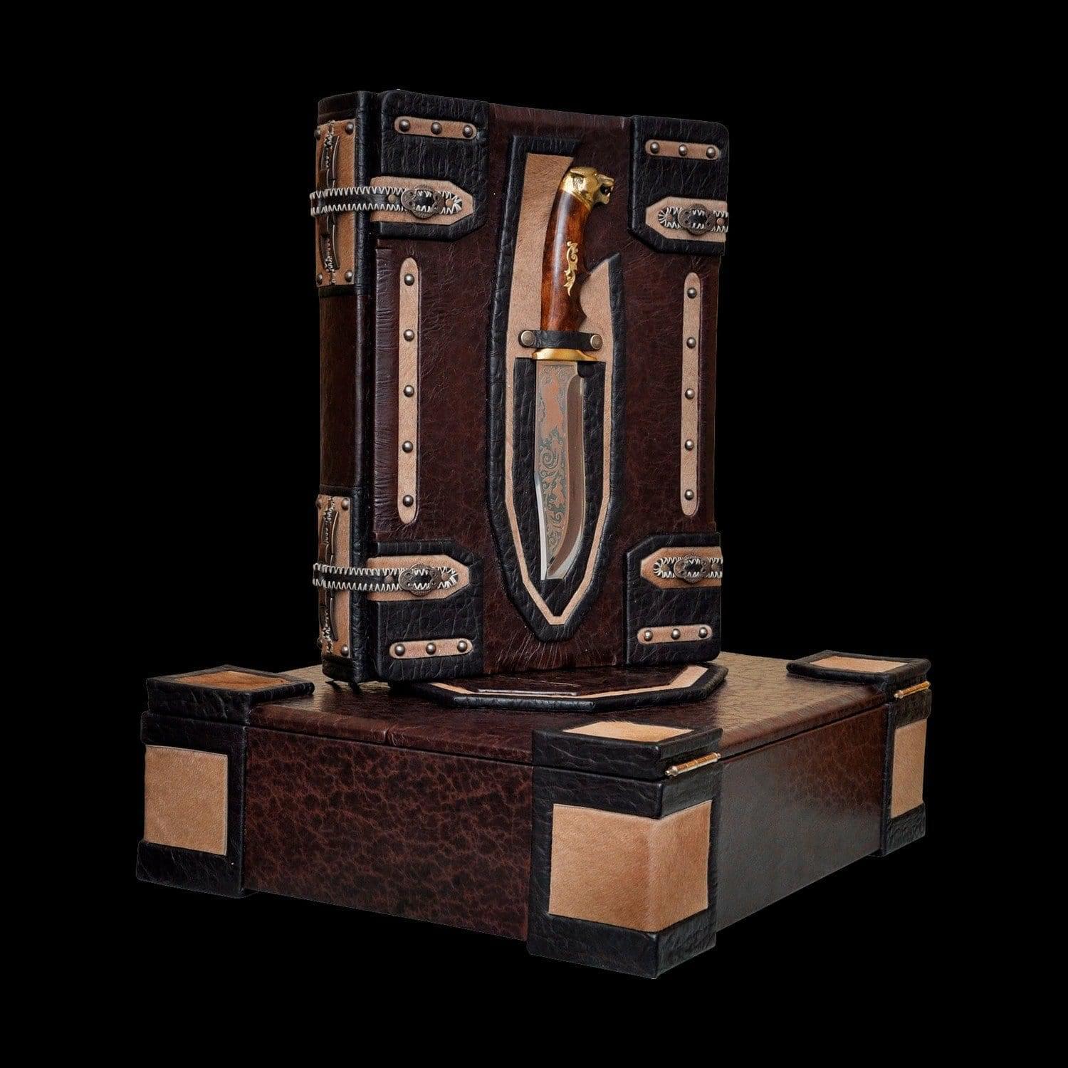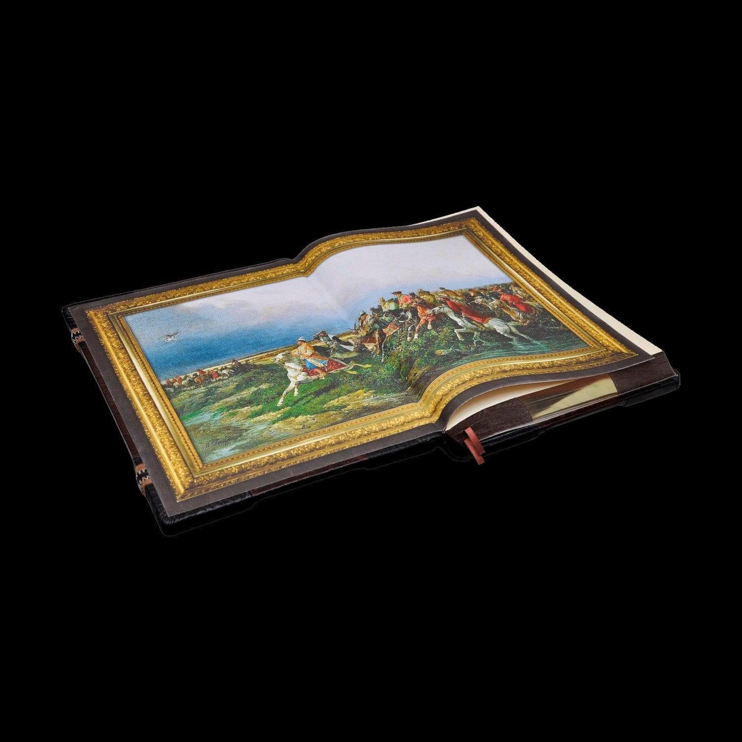 Эксклюзивное издание в уникальном оформлении. В одной книге представлен весь легендарный четырехтомник «Великокняжеская, царская и императорская охота на Руси» (1895-1911) замечательного русского историка Николая Ивановича Кутепова. Каждая страница обрамлена декоративным орнаментом, сотни репродукций русской живописи. Оформление: Составной переплет «Брадель», ручной работы, изготовлен из комбинации натуральных кож (кожа «Terra di cracking», кожа «Terra nera», шерсть пони «Pezzato» производства итальянской кожевенной фабрики «Carisma»). Обложка книги двухуровневая, оформлена латунными холитенами (цвет «Антик»), фурнитурой «Ferre», декоративным ножом «Волк». Обрез книги комбинированный, тонирован краской и позолочен. Подарочный футляр-пюпитр изготовлен в стиле книги и устлан итальянским коттон-бархатом, декорирован художественными панелями масляной живописи. Характеристики: Сертификат. Бархатный чехол. Количество иллюстраций – 500. Количество страниц - 456 (мелованная бумага, высшее качество печати). Формат книги – 360х540х90 мм. Формат футляра – 380х460х135 мм. Вес книги – 5,6 кг. Вес комплекта – 11,7 кг. .