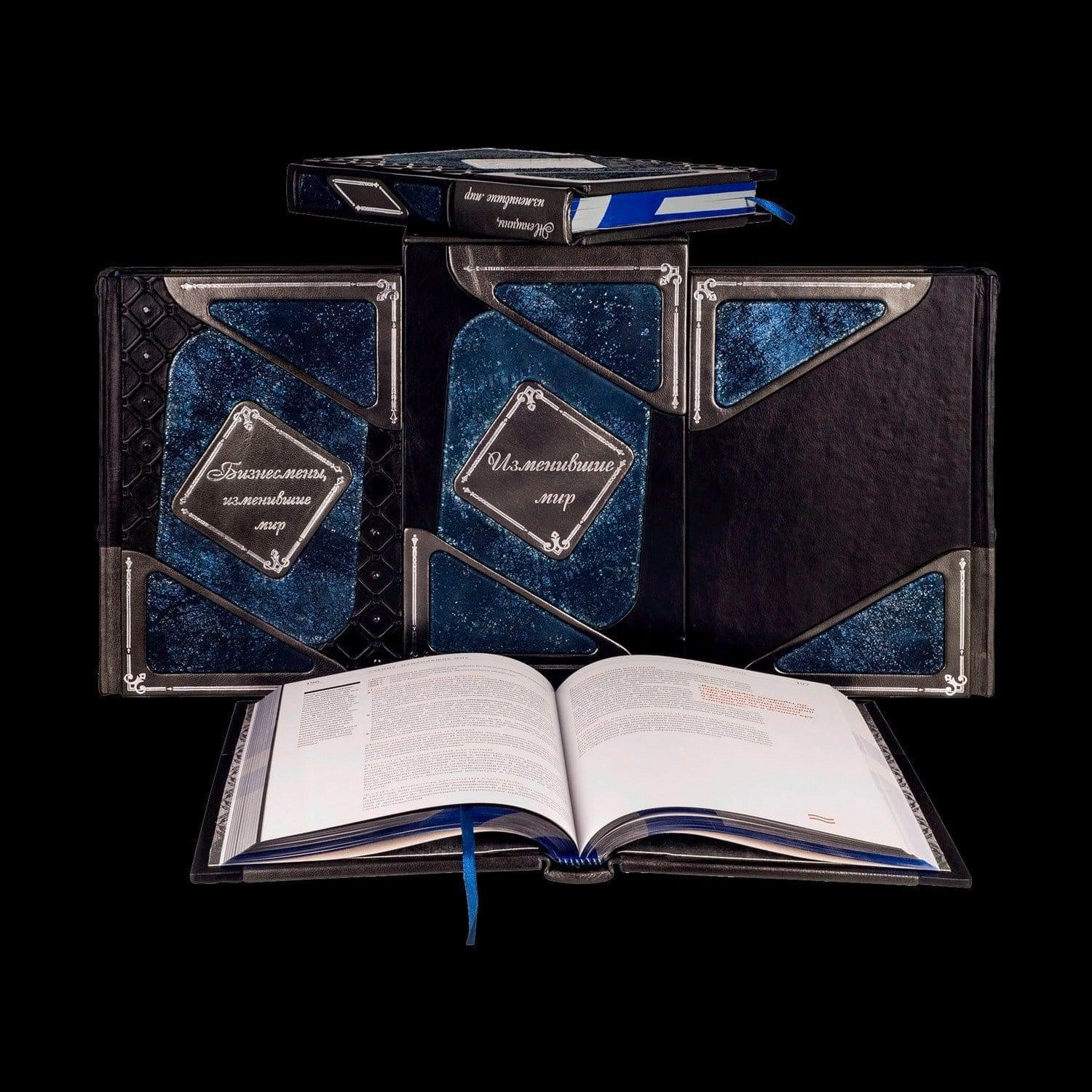 В сборник входят: Бизнесмены, изменившие мир . Мечтают все, бизнесмены делают мечты реальными. Энергия и видение этих людей навсегда изменили нашу жизнь. Они нашли идеи, опередившие время, и сделали их доступными к повседневному применению для миллионов людей. Многие из их имен дали названия корпорациям, без продукции которых невозможно представить себе нашу жизнь. Бенц, Боинг, Шанель, Форд, Пфайзер, Колгейт, Проктер, Гудьир, Липтон, Отис, Нобель, а также Джобс, Брин, Цукерберг, Касперский, Бэзос и многие другие. В данном издании увлекательно изложены истории жизни и успеха этих знаменитых людей, которые могут служить вдохновляющим примером для всех, кто уже занимается бизнесом, и для тех, кто еще только готовится к великим свершениям. Ученые, изменившие мир. Оценить достижения человечества с древнейших времен до XX века, от Гиппократа до Эйнштейна, - идея смелая, немного безумная, однако коллектив авторов сумел ее реализовать. Издание представляет собой сборник биографий, выдающихся ученых, чьи открытия изменили ход истории. Книга позволит проследить развитие науки, в издании собраны интересные, а порой даже редкие факты из жизни ученых, а также из истории открытий и изобретений. Герои книги - гении науки - разгадали многие тайны природы, возможно, их опыт, о котором повествует эта книга, вдохновит и вас на великие открытия. Люди, изменившие мир. Эта книга о людях, которые изменили представления о мире. Благодаря их таланту, находчивости и решимости были попраны устаревшие стандарты и раскрыты новые горизонты. Своим примером они обещают успех всем мечтателям мира, награду славой за упорный труд и годы лишений. В издании представлены выдающиеся личности из разных сфер деятельности: мода, техника, живопись, музыка, кино, театр - от Коко Шанель до Стива Джобса. Каждая глава содержит основные факты биографии, историю успеха и важнейшие вехи творчества великих предпринимателей и деятелей искусства. Женщины, изменившие мир. Испокон веку считалось, что изменять и перестраивать мир - удел мужчин, что лишь "сильному полу" по плечу роль лидеров и преобразователей. И все-таки женщины никогда не оставались вне Истории. Своим, особым образом они влияли на судьбы мира. А уж XX столетие стало поистине "веком женщин"! Коко Шанель и Жаклин Кеннеди, принцесса Диана и Эвита Перрон, Мэрилин Монро и Одри Хепберн, Марлей Дитрих и Грета Гарбо, Эдит Пиаф и Мария Каллас, Гала Дали и Фрида Кало, Айседора Дункан и Анна Павлова - все они не просто изменили мир, но сделали его стильным, эффектным, харизматичным, наконец, просто интересным! Чем ответил мир этим блестящим женщинам, чем отблагодарили их современники? О судьбах великих женщин, об их страстях, трагедиях и триумфах рассказывает новая книга знаменитого телеведущего. Оформление: Составной переплет «Брадель» ручной работы. Комбинация натуральных кож «Nero Zegna», «Granito Blu» и «Acciaio». Обложки книг инкрустированы камнями циркон бриллиантовой огранки, декорированы объемными узорами ручной продавки и рельефным серебряным тиснением. Обрезы книг выполнены в авторской технике комбинированного серебрения с использованием цветной фольги. Футляр устлан французским коттон- бархатом. Характеристики: Сертификат. Бархатный чехол. Общее количество страниц – 1 548 (мелованная бумага, высшее качество печати) . Формат книги – 255х280