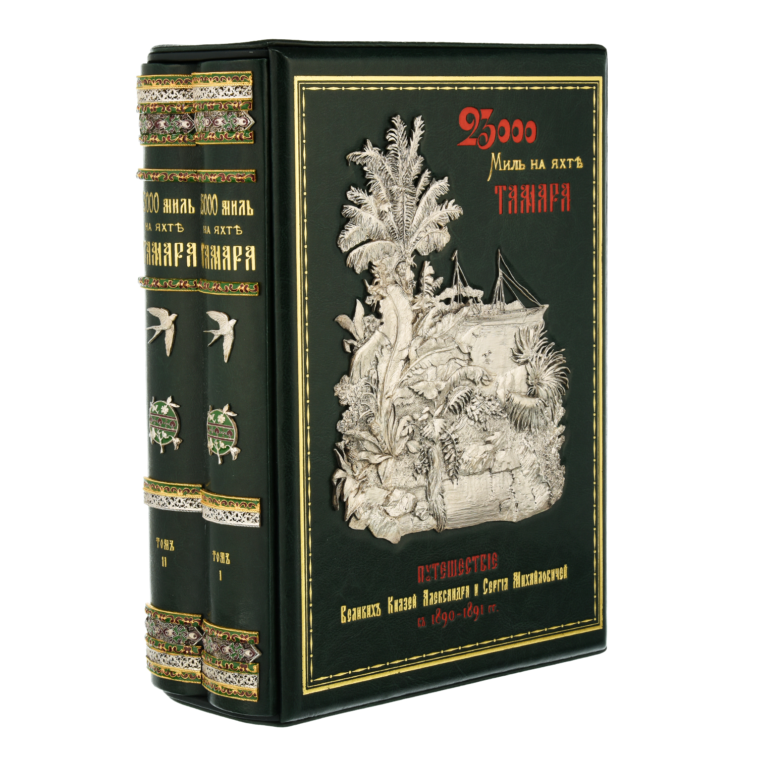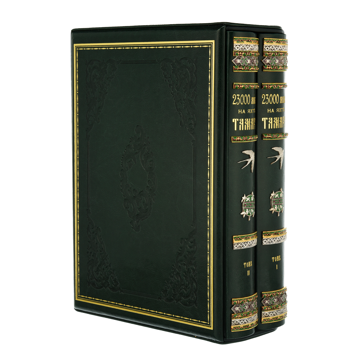 Подарочная книга в 2 томах "23000 миль на яхте Тамара" Радде Г.И. в кожаном переплете.