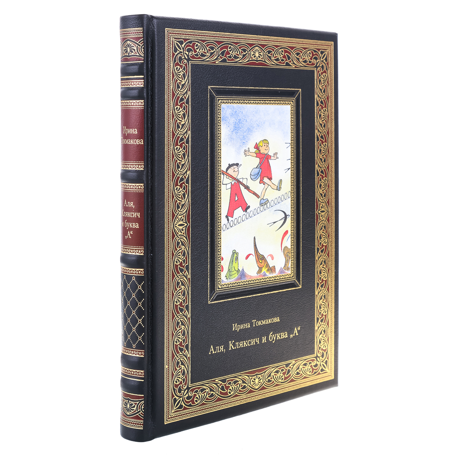 Подарочная книга "Ирина Токмакова. Аля, Кляксич и буква А" в кожаном переплете ручной работы.