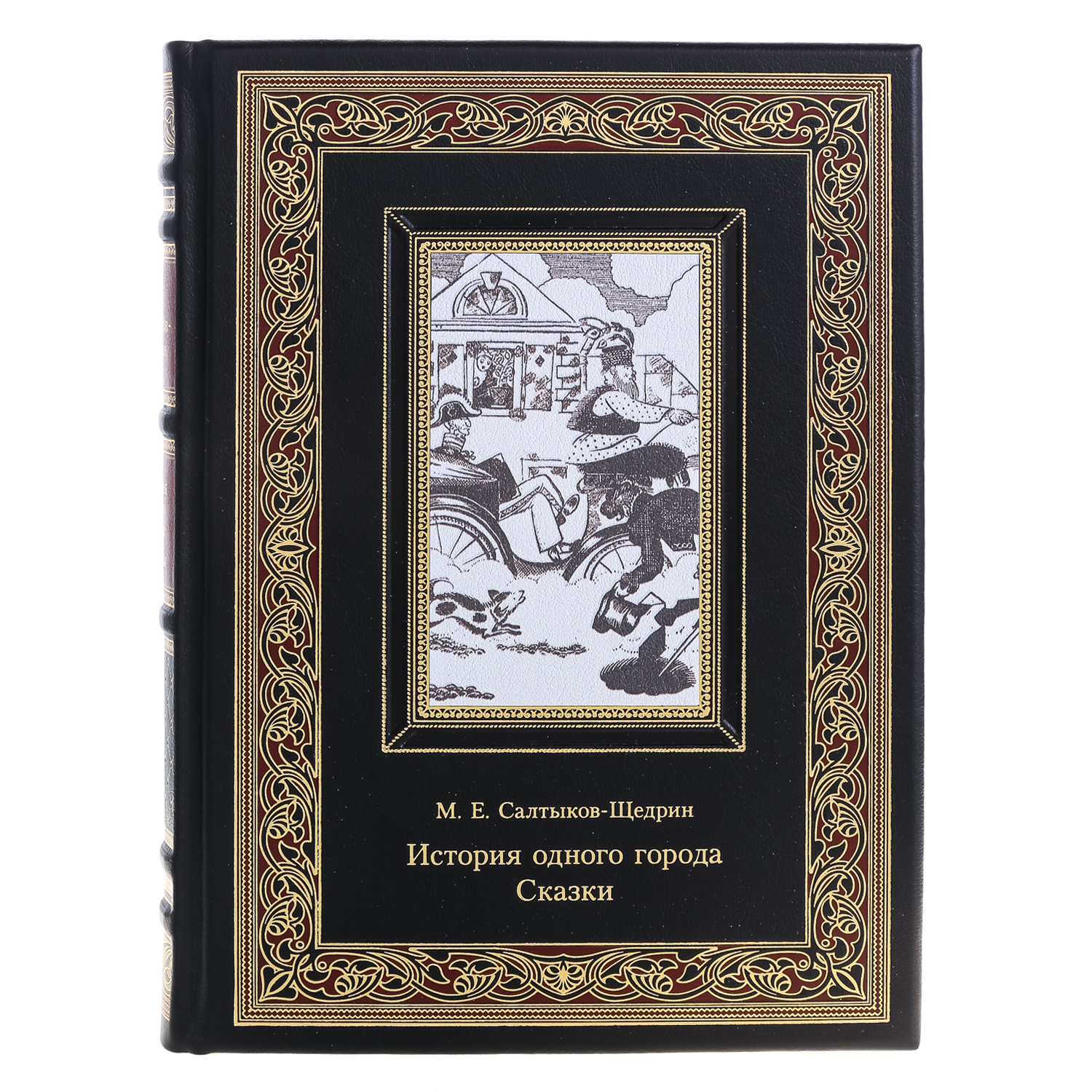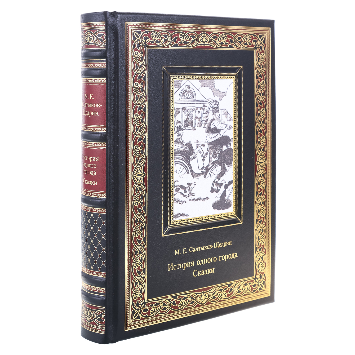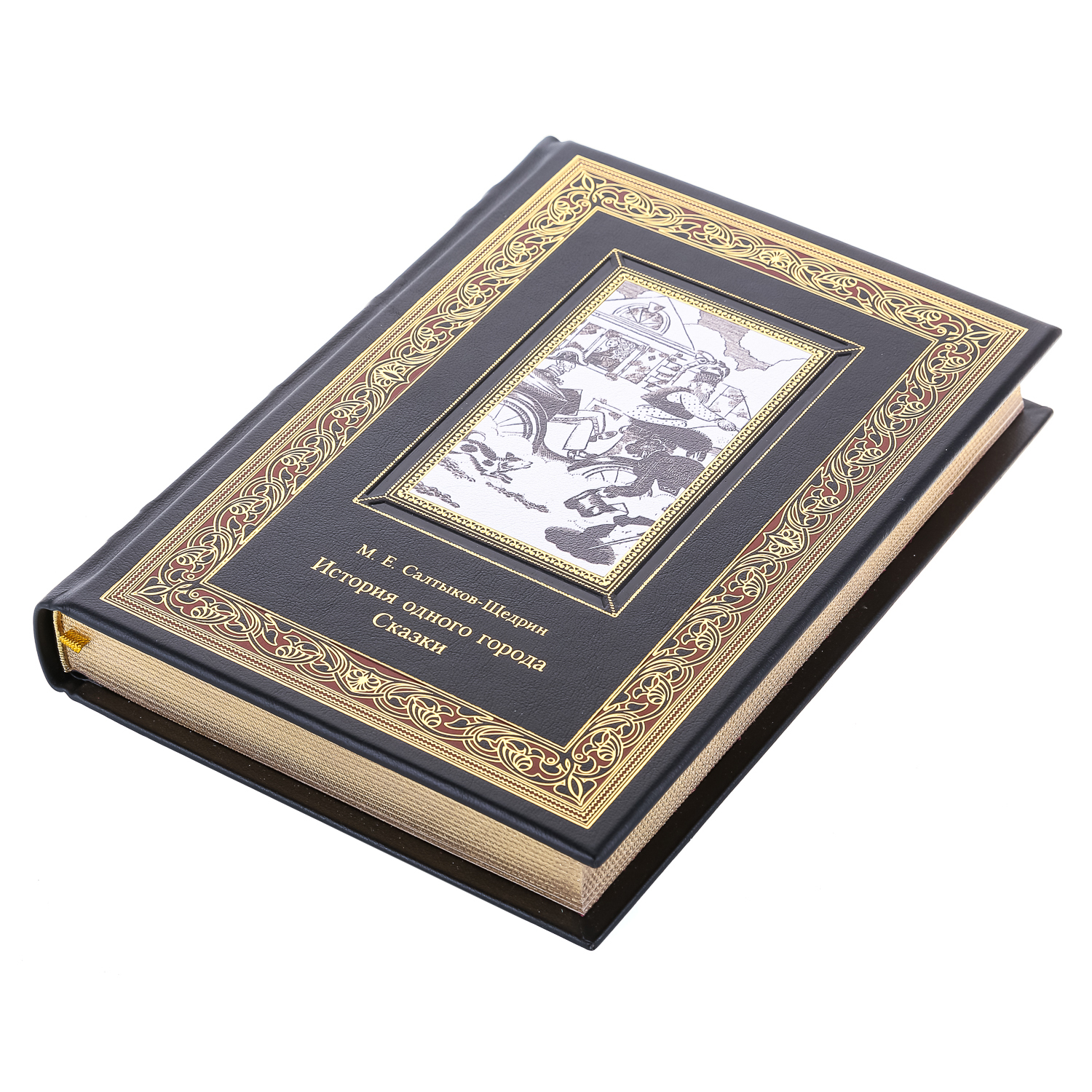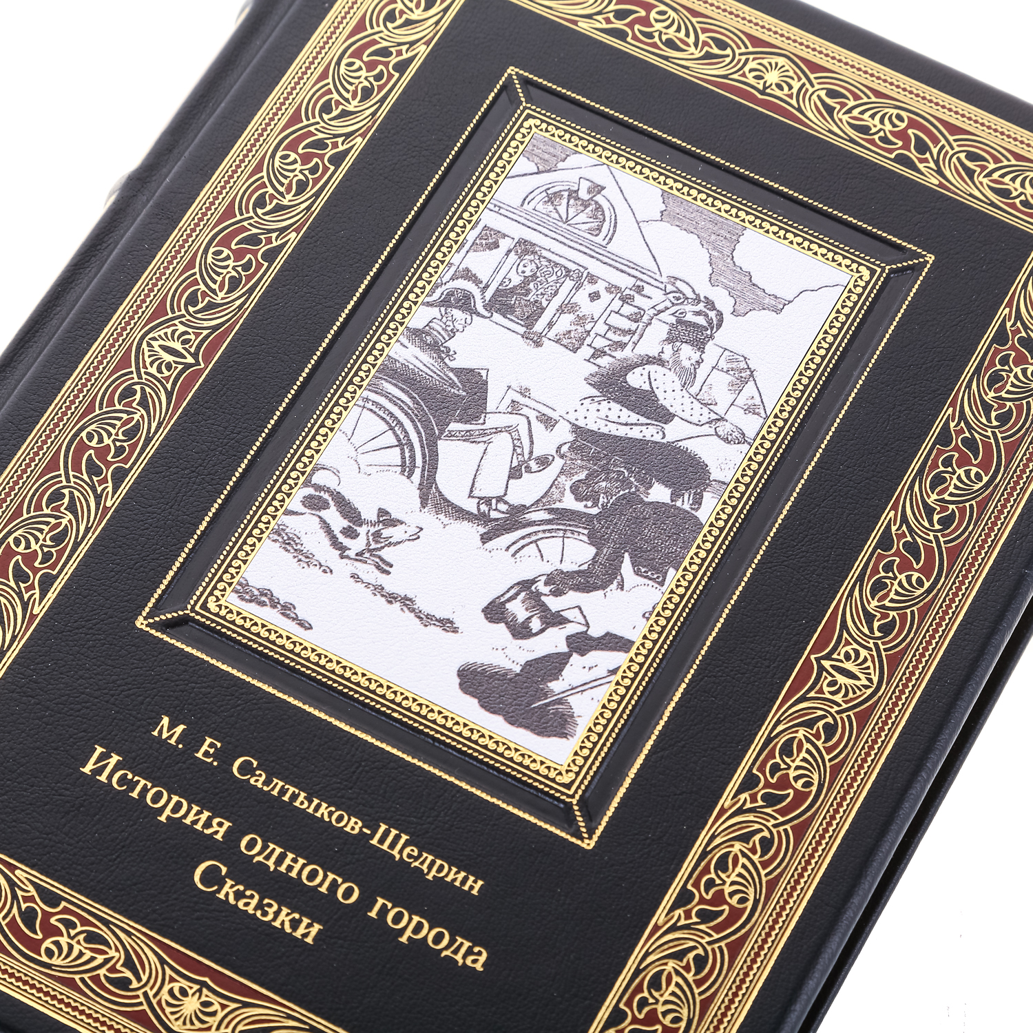 Подарочная книга "М.Е. Салтыков-Щедрин. История одного города. Сказки" в кожаном переплете ручной работы.