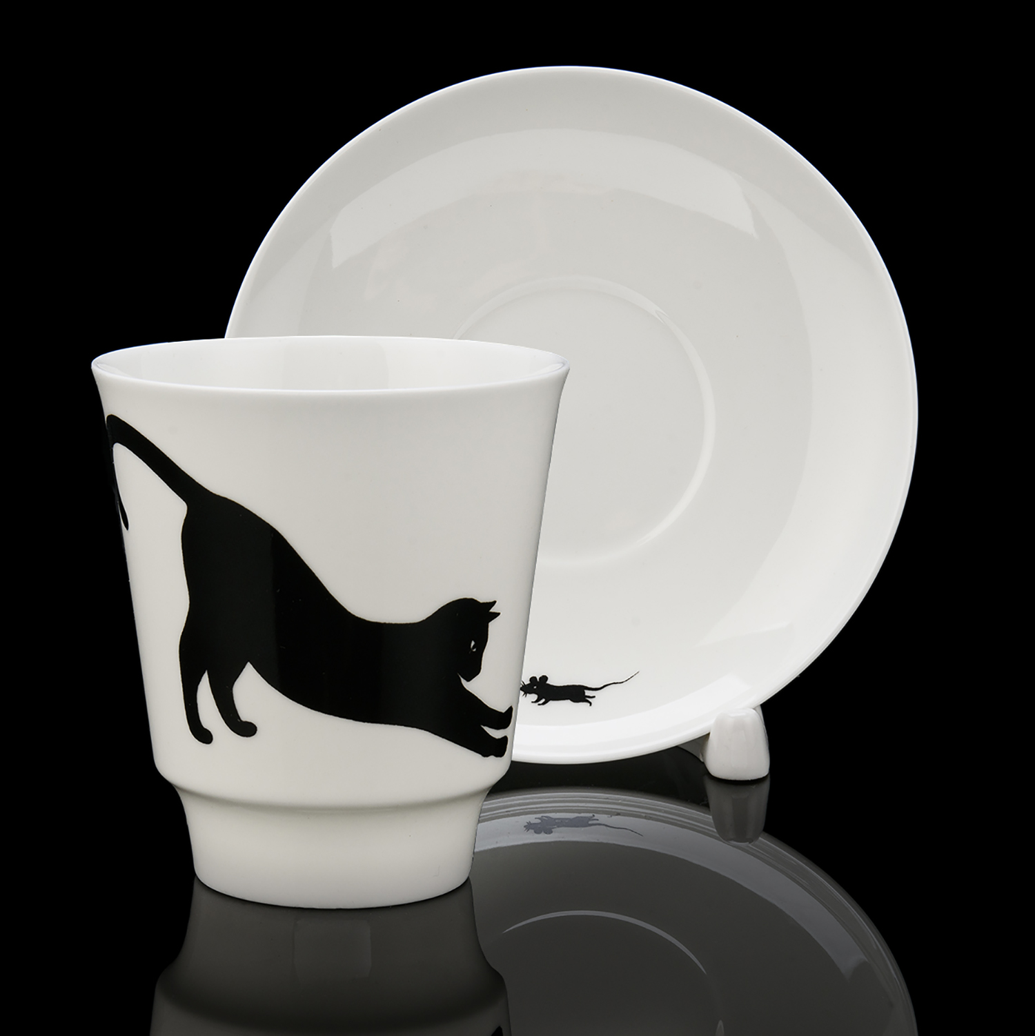 Русские подарки и сувениры → Посуда → Кофейные пары → Кофейная пара 165 мл "Кошки-мышки". Форма Майская. ИФЗ