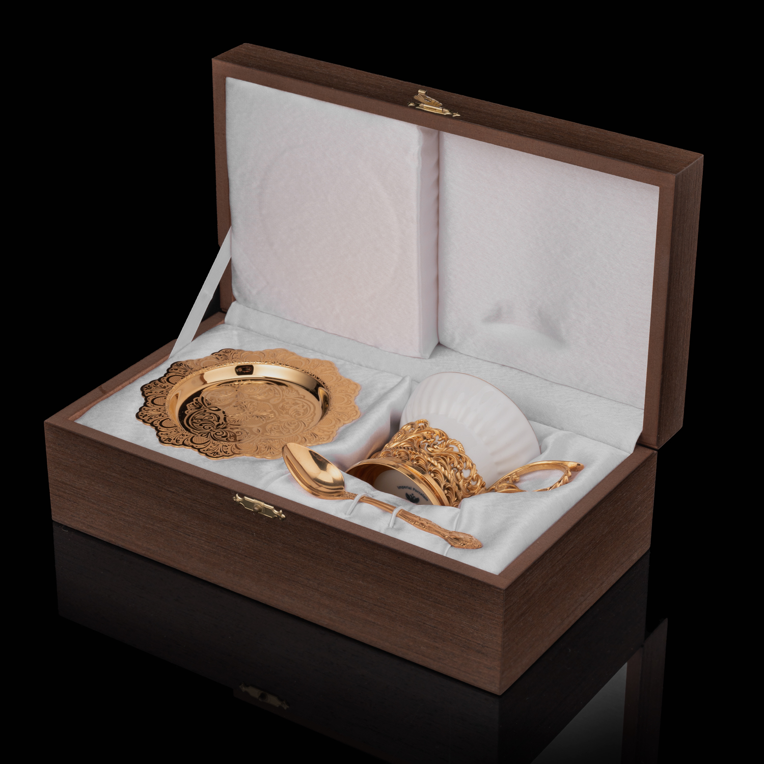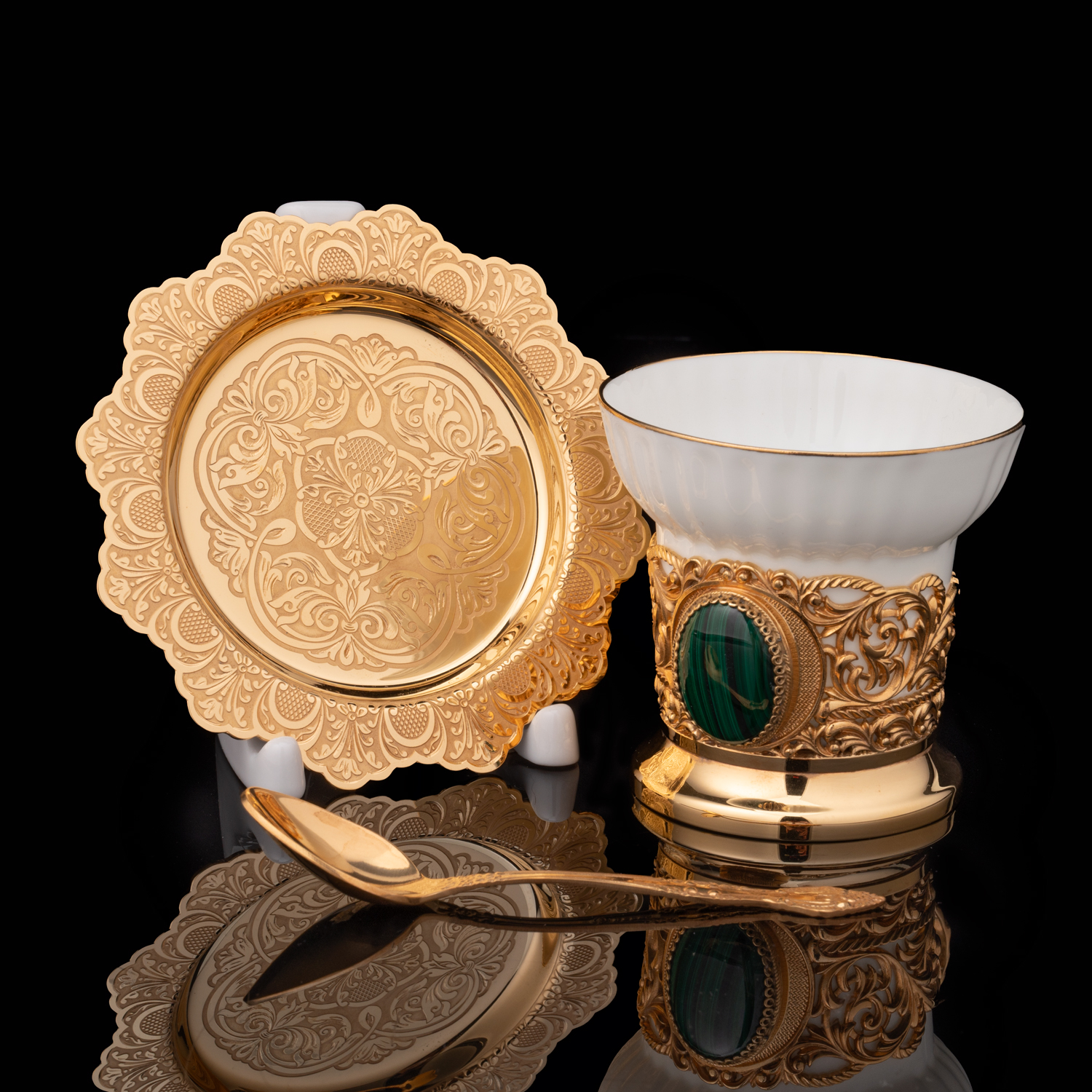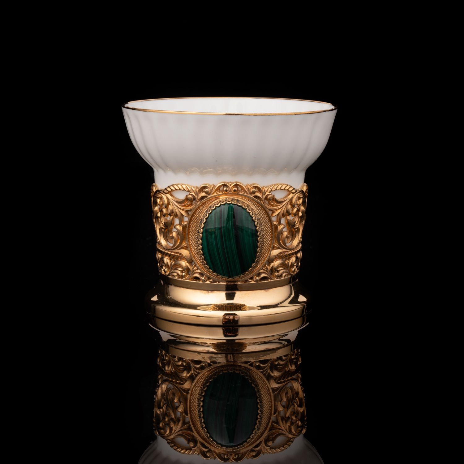 Материалы: латунь, золото 999,9*, малахит, фарфор.