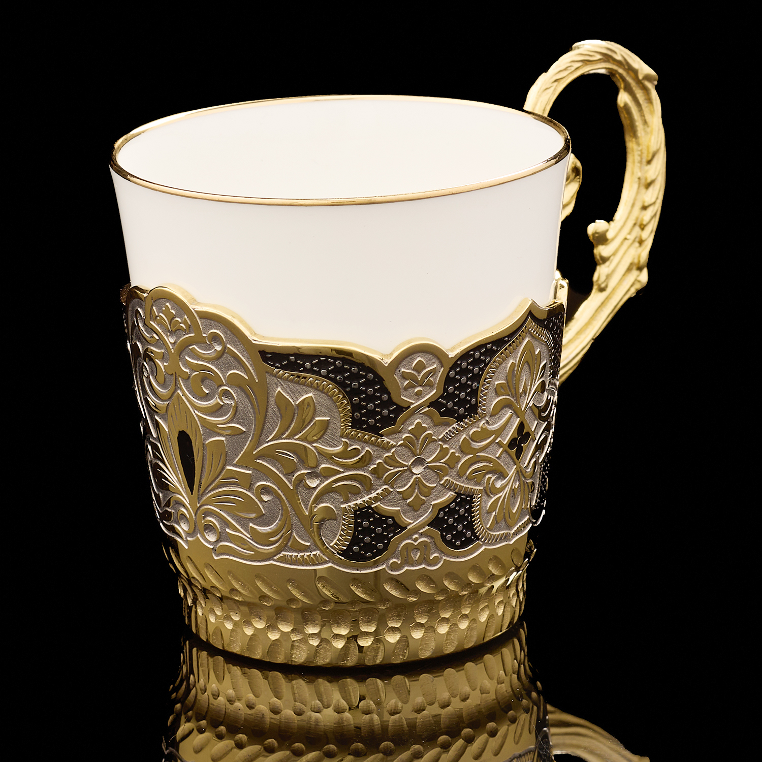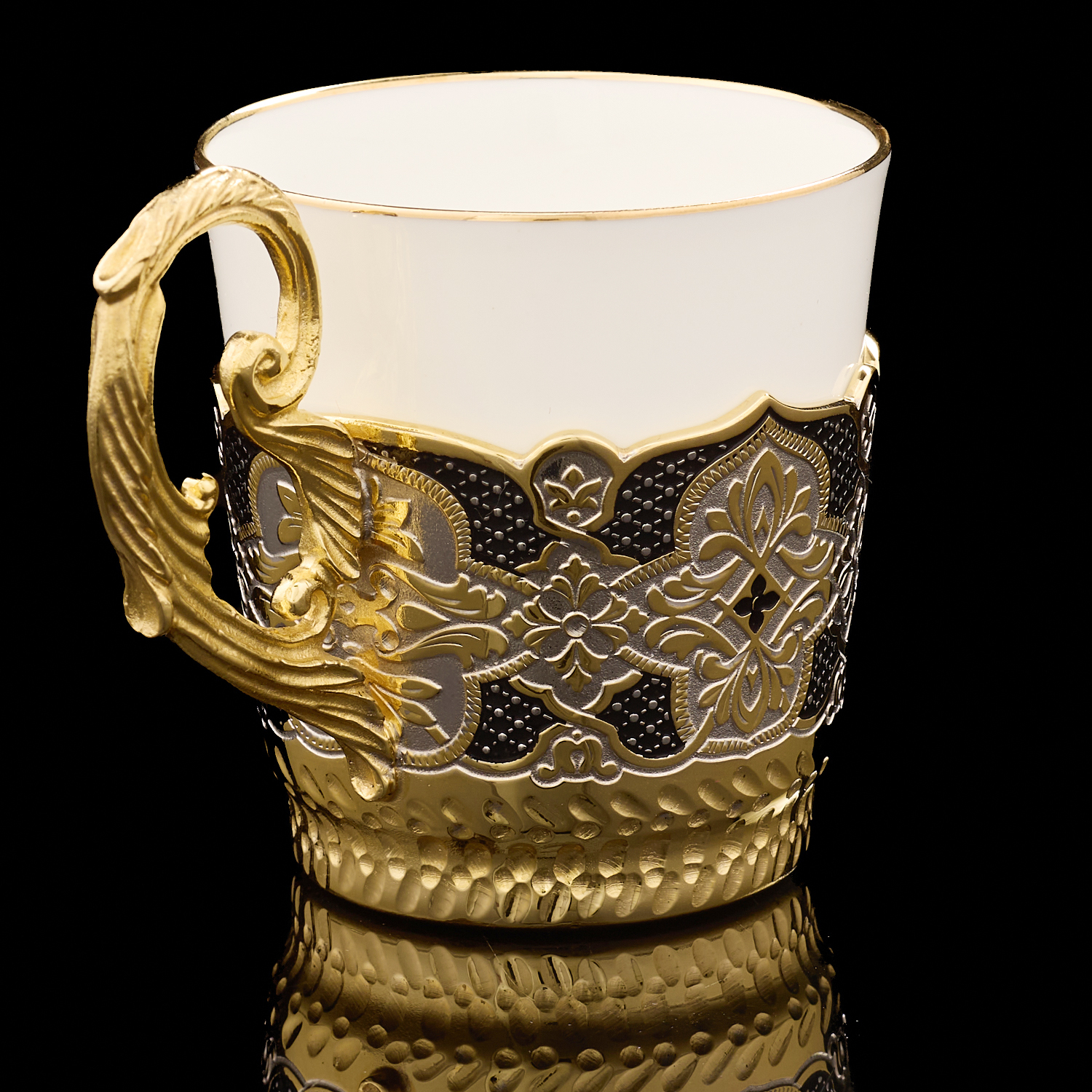 Кофейная пара с позолотой и эмалью "Орнамент". Златоуст
