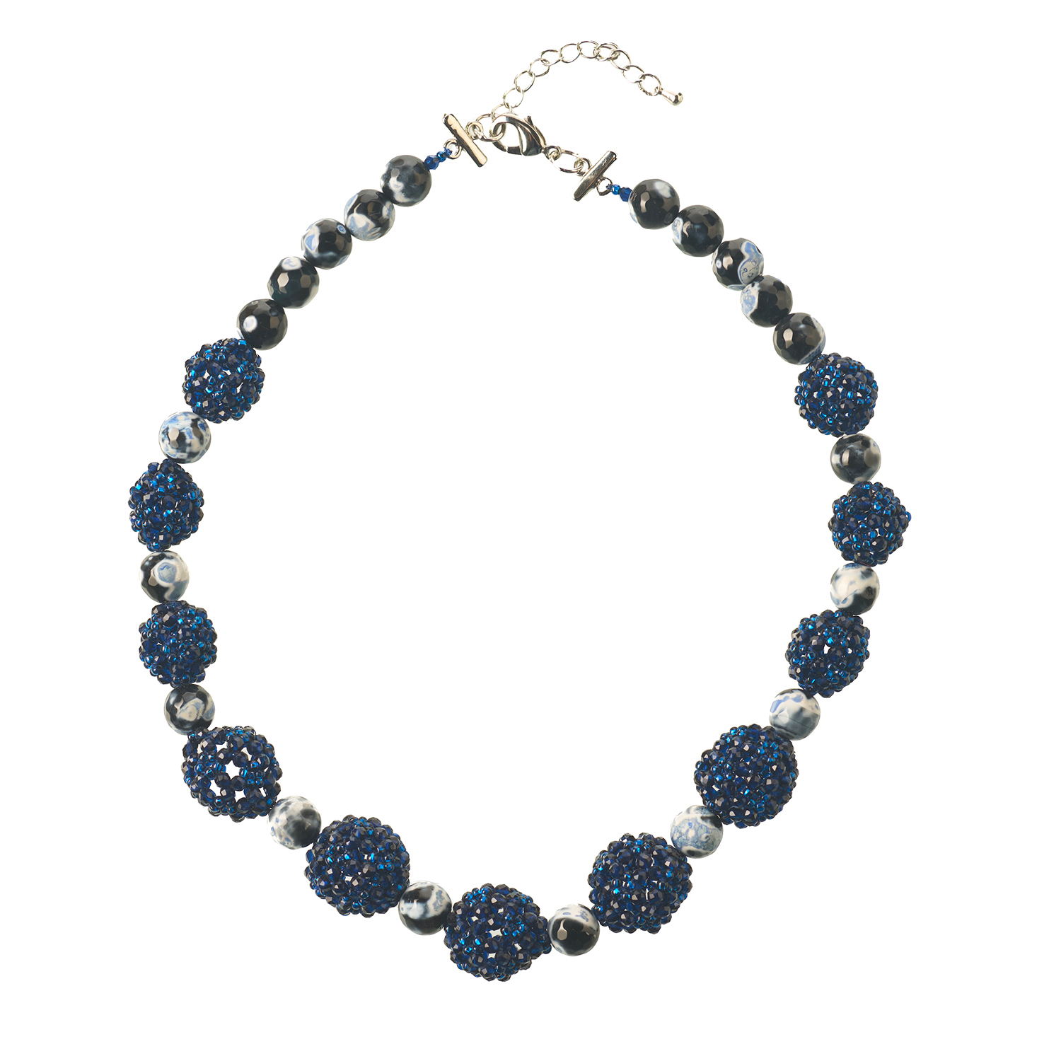 Колье из бисера и натурального камня "Шарм".Материалы: голубой агат, шпинель.