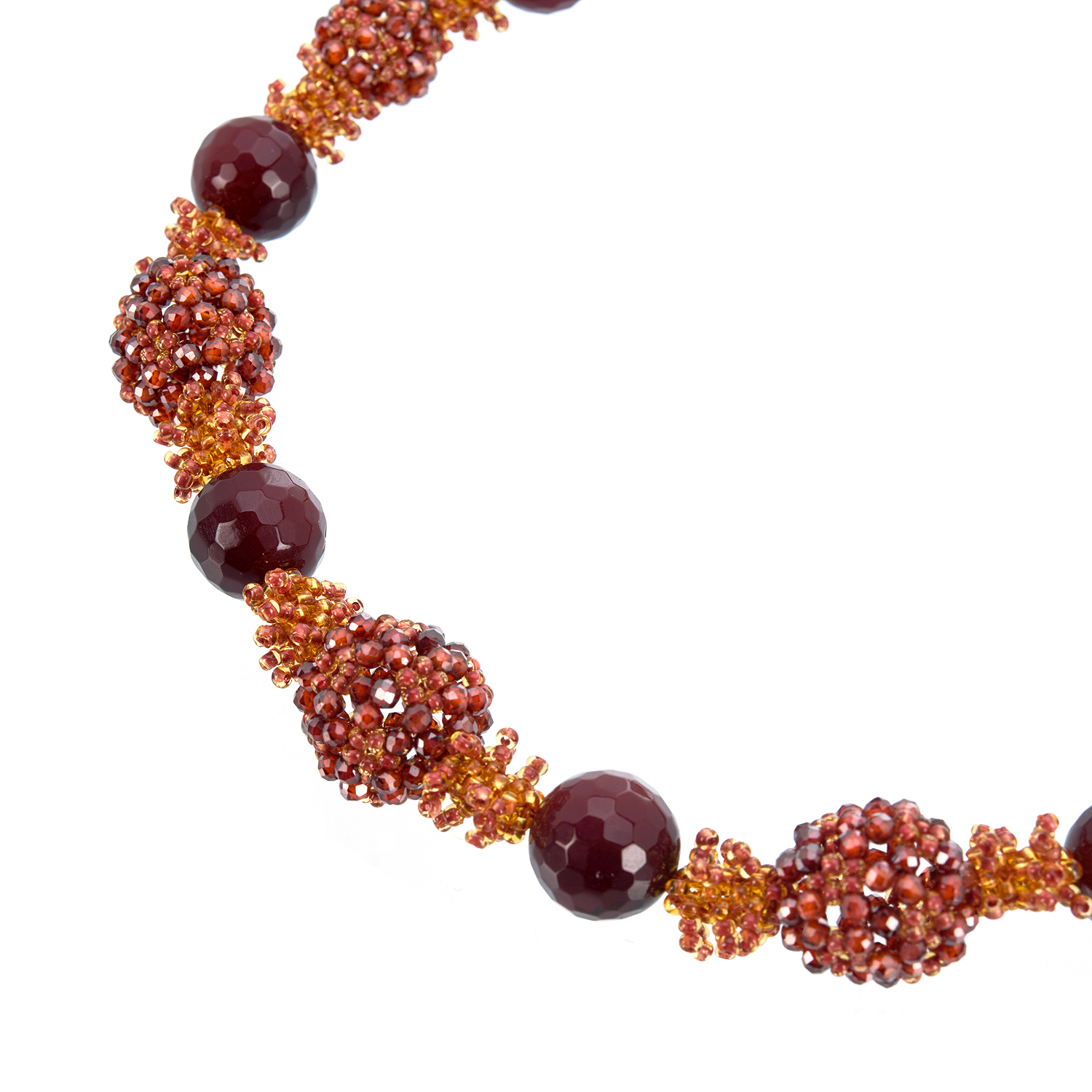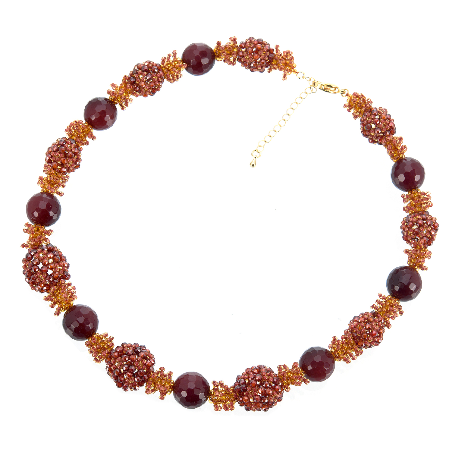 Колье из бисера и камней "Шарики".Материалы: бисер, сердолик, цирконы.