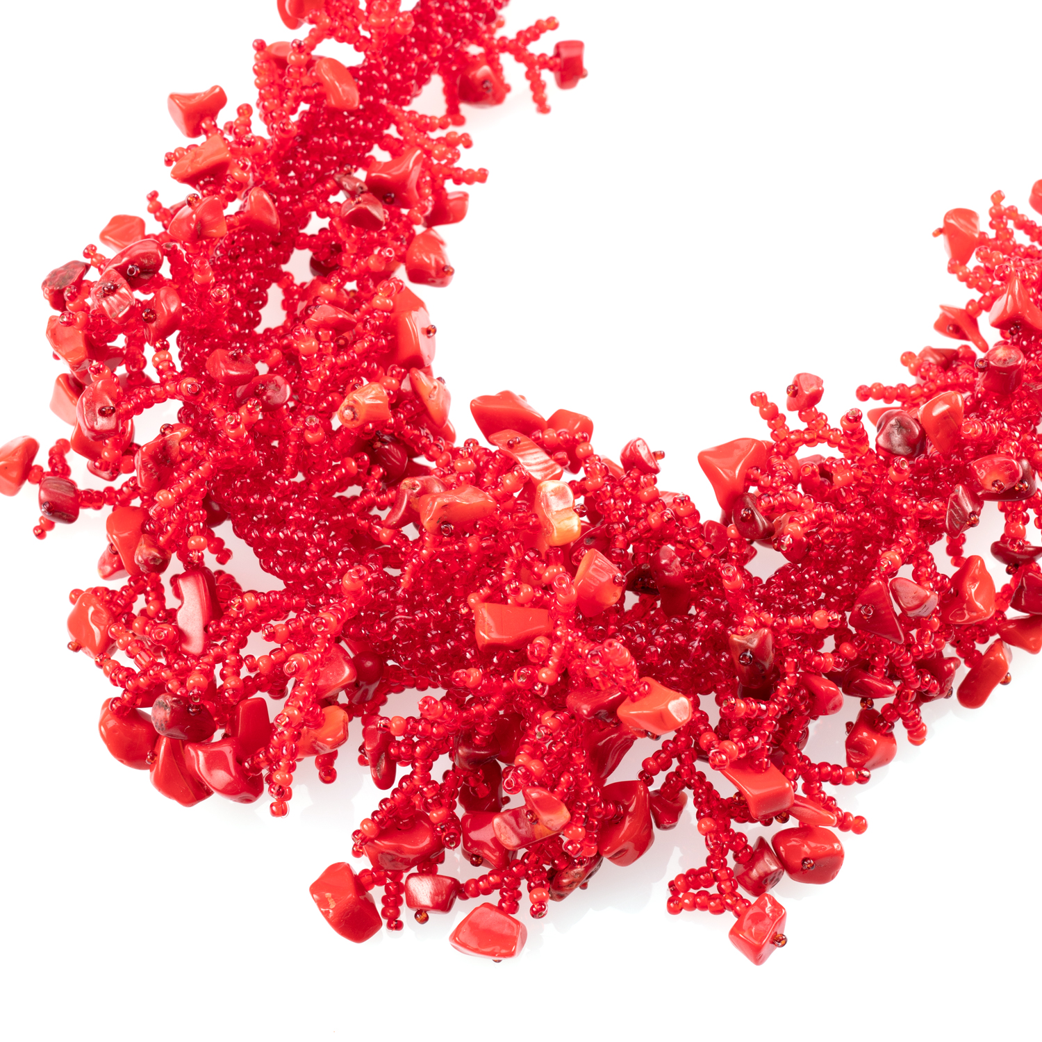 Колье-жгут из бисера и натурального камня "Ветвь".Материалы: бисер, коралл.