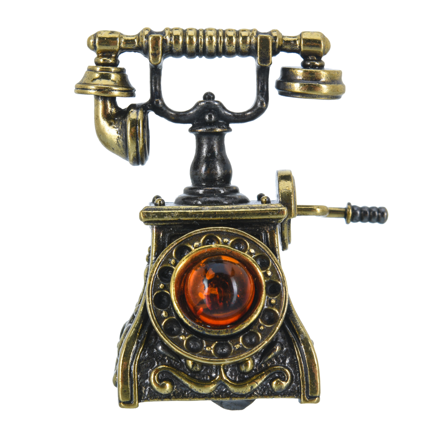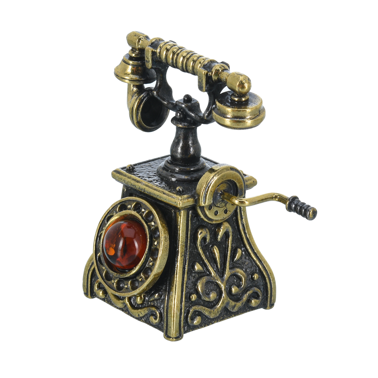 Русские подарки и сувениры → Коллекционирование → Колокольчики → Колокольчик с янтарем "Ретро телефон"