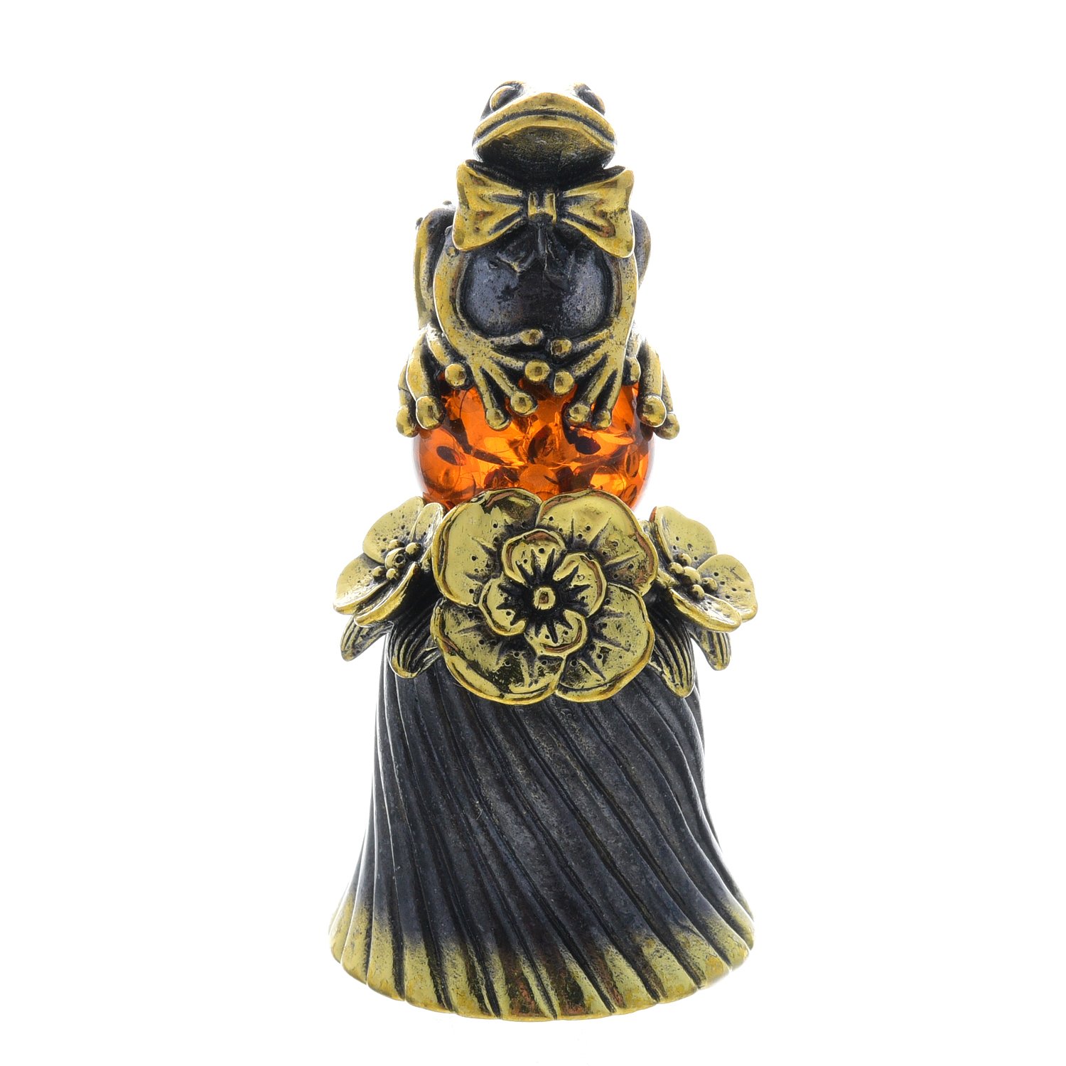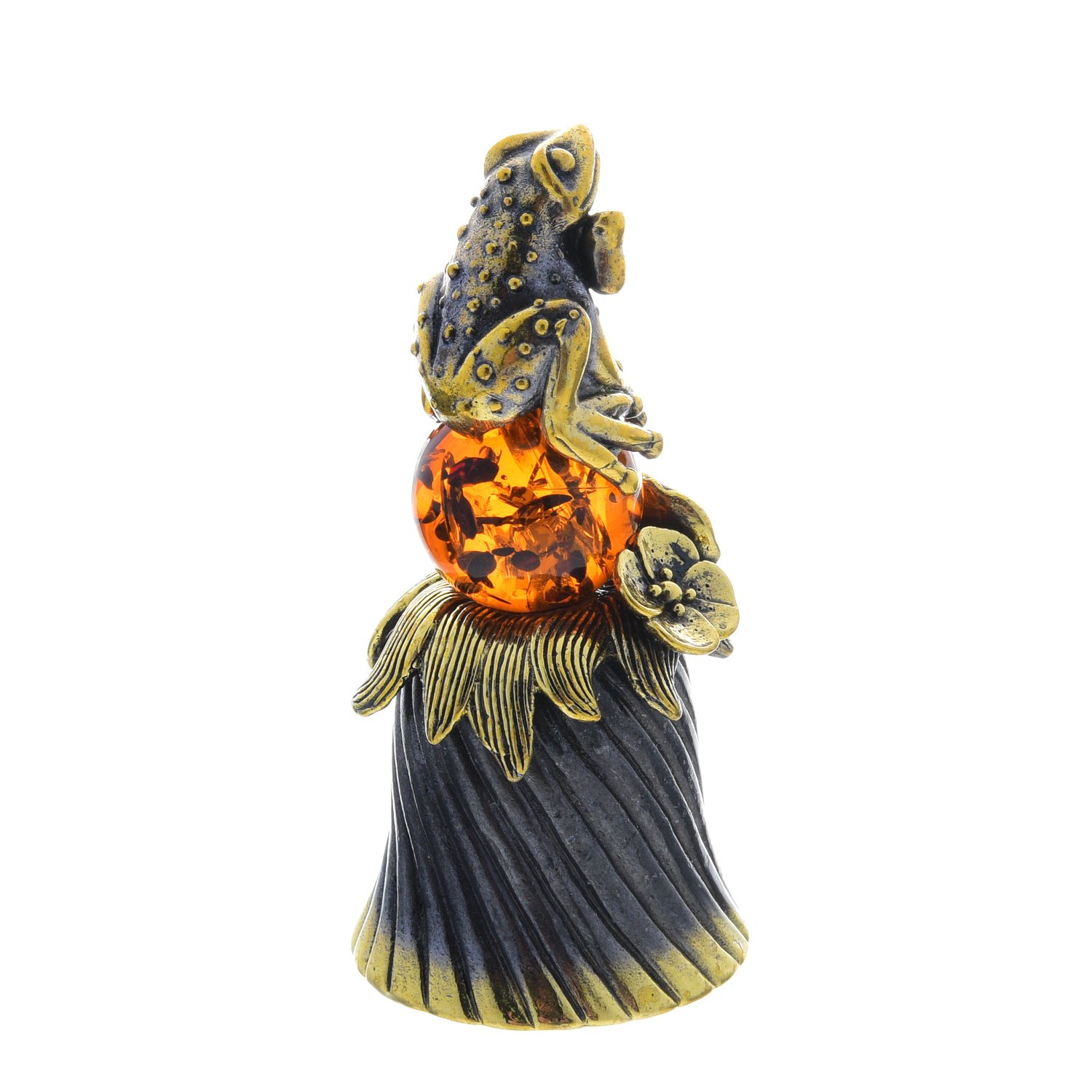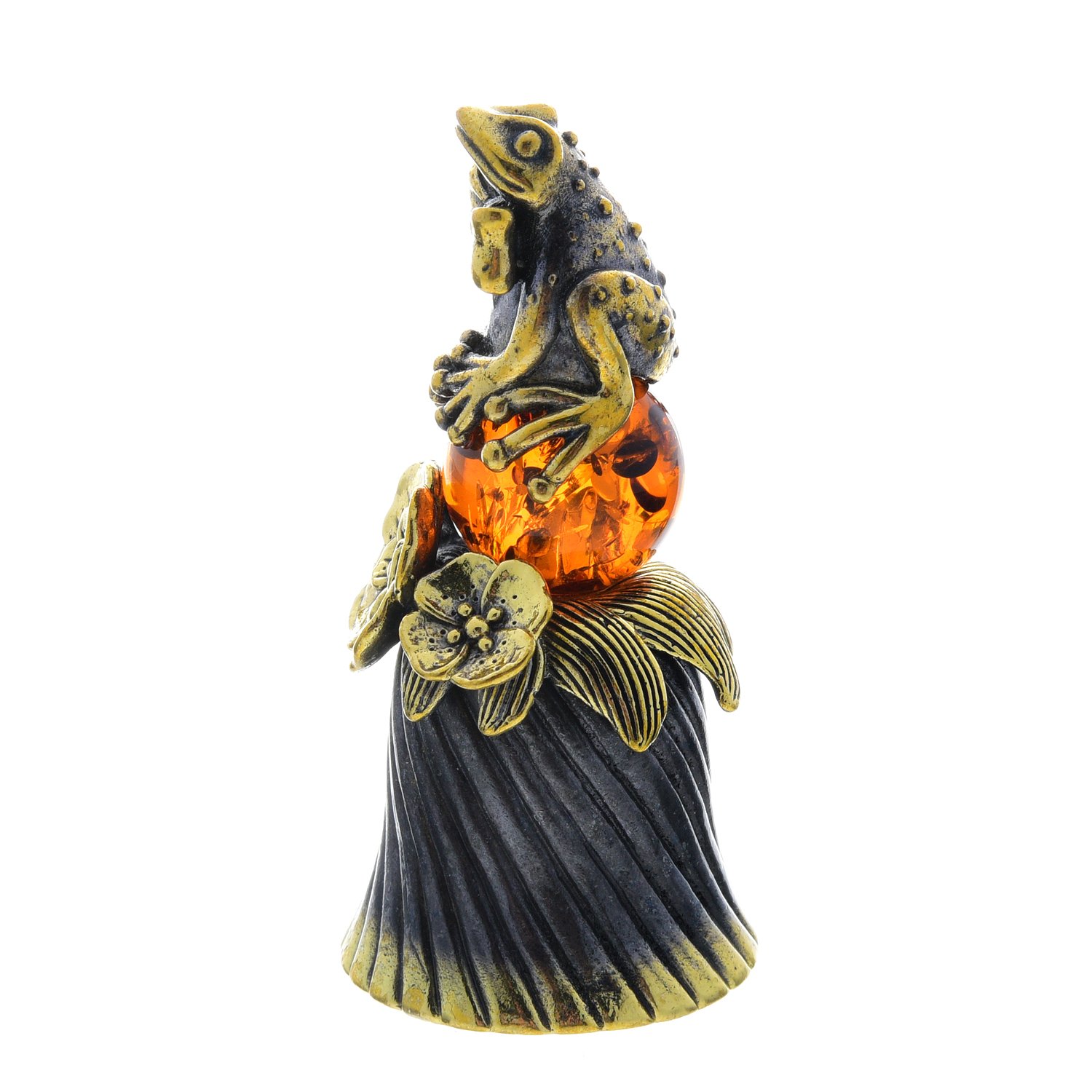 Сувенирный колокольчик "Лягушка на шаре" с янтарем